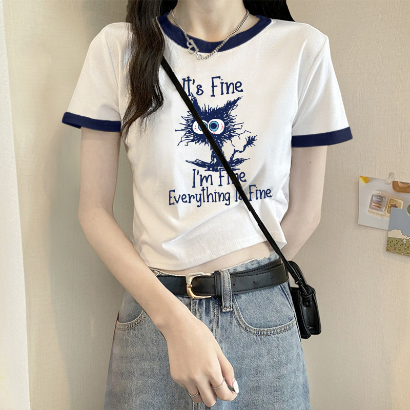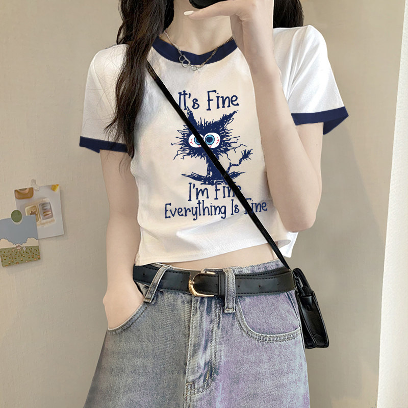 圓領法式ins短袖t恤女搭配拼接chic夏季歐美高腰潮牌短款復古上衣