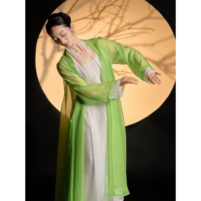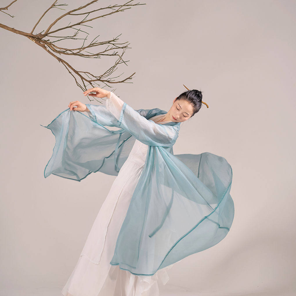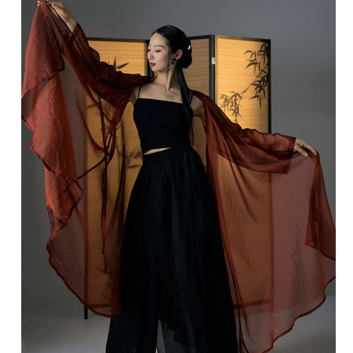 雪紡長袖大擺風古典舞輕薄飄逸開衫現代舞練功服長款紗衣外套