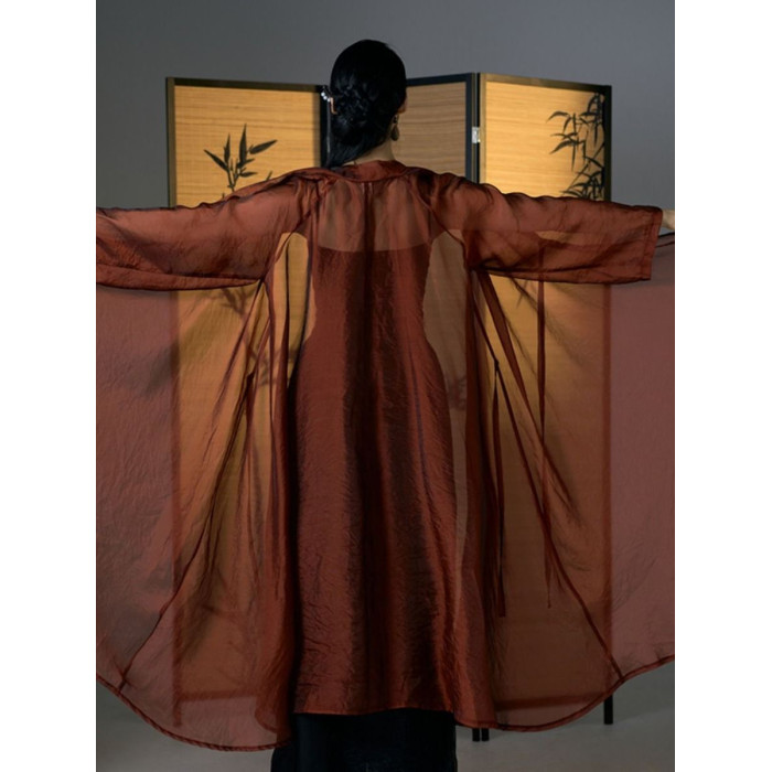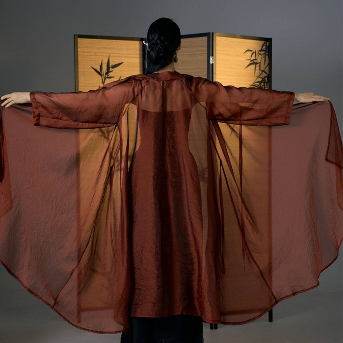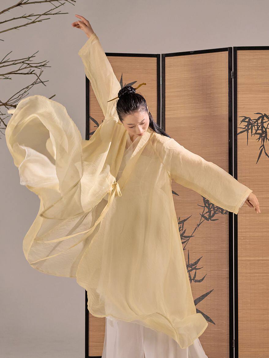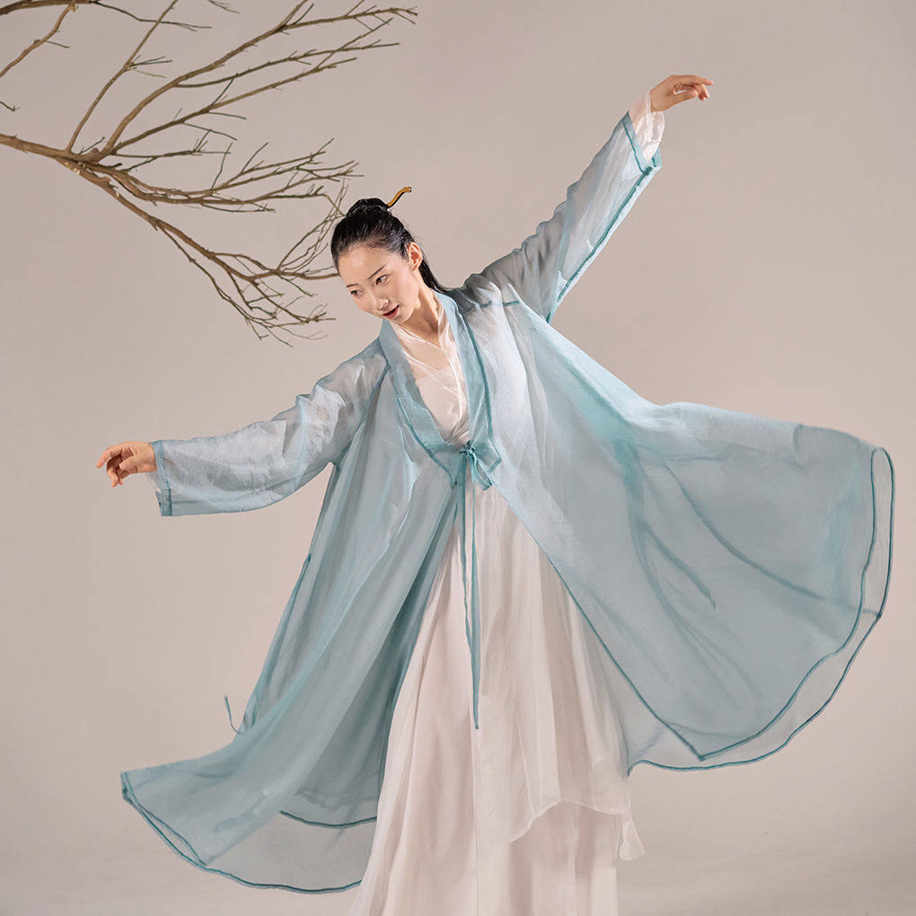 雪紡長袖大擺風古典舞輕薄飄逸開衫現代舞練功服長款紗衣外套