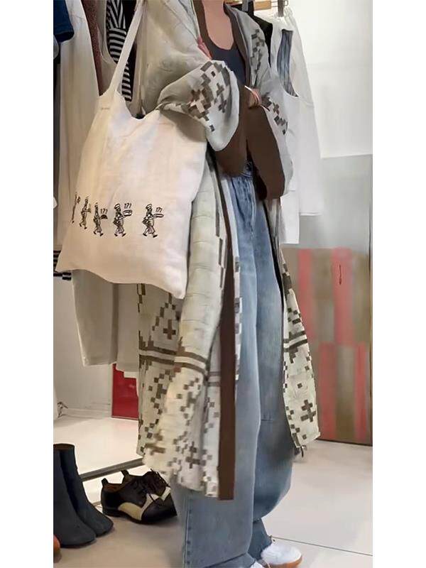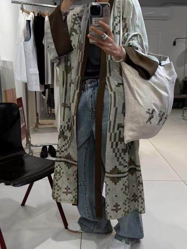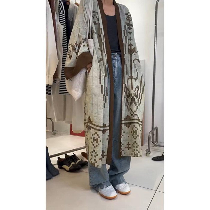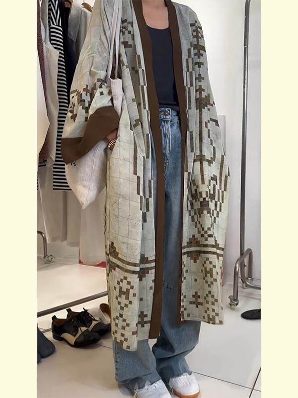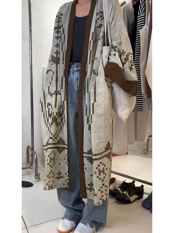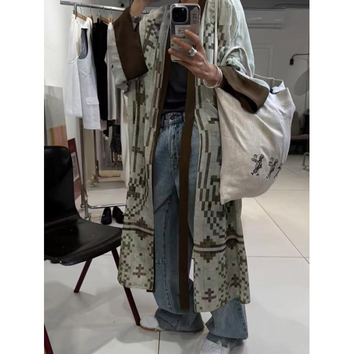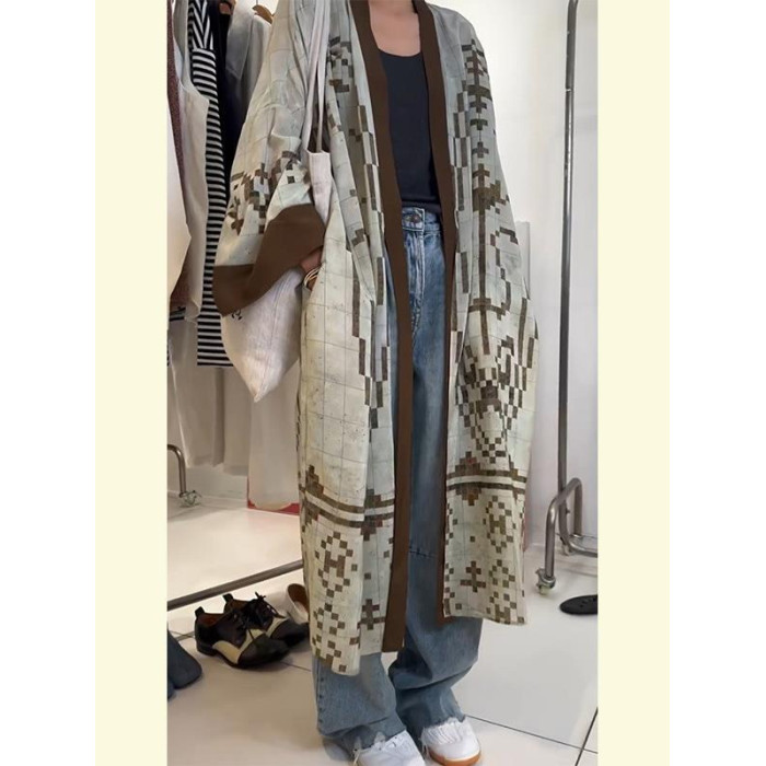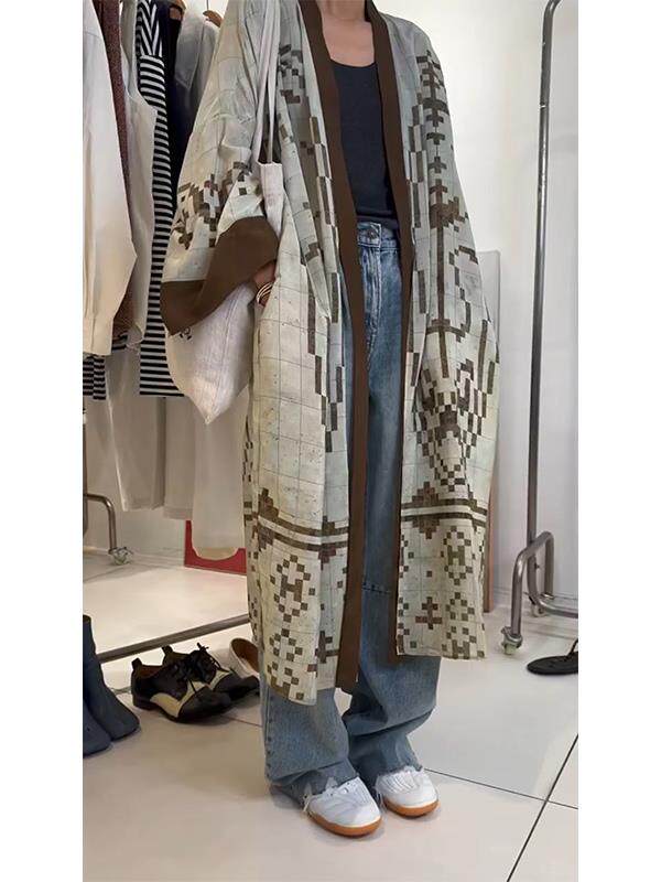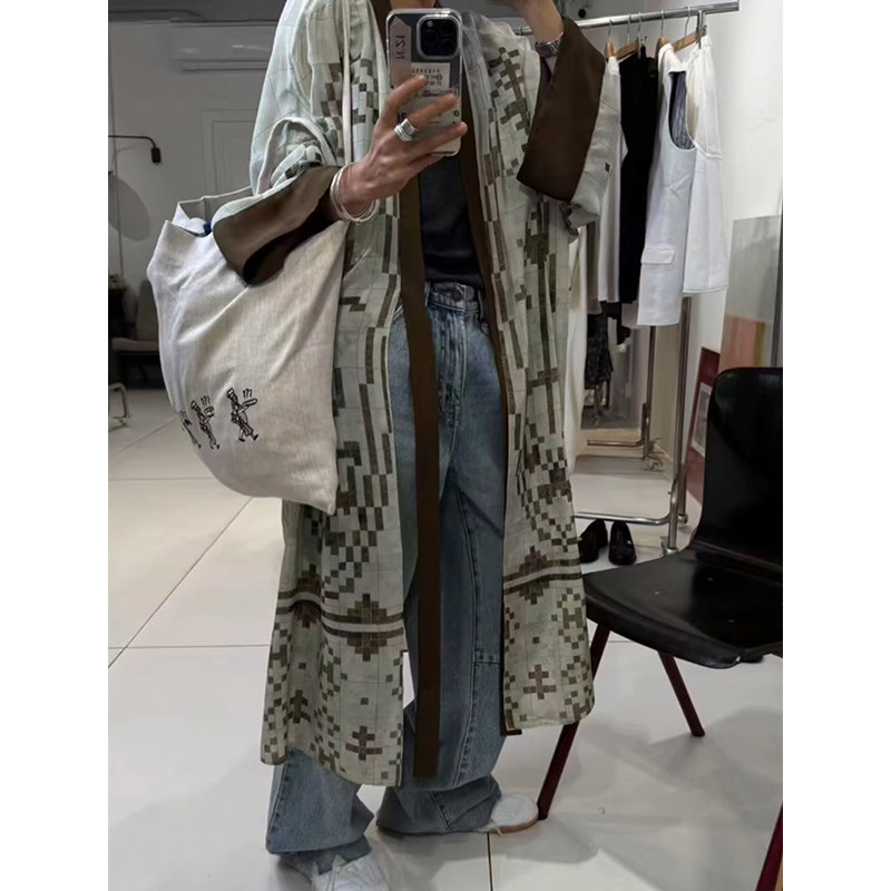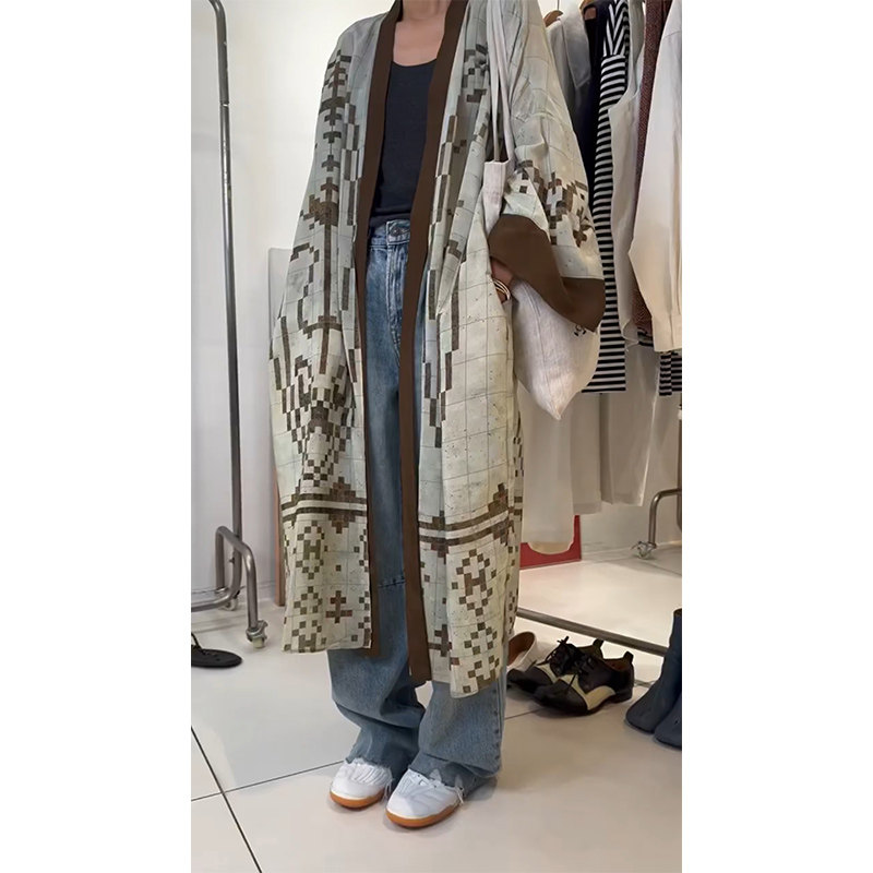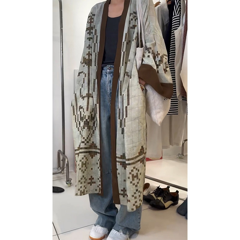 清冷貴氣感穿搭慵懶風休閒復古中長款外搭薄款印花開衫外套女秋季