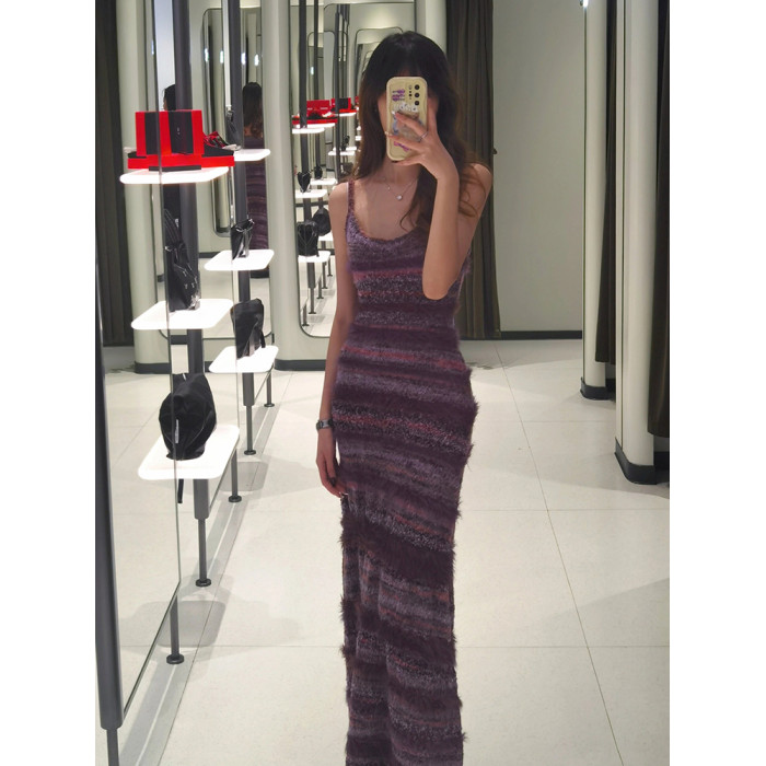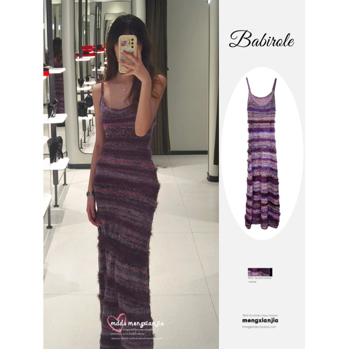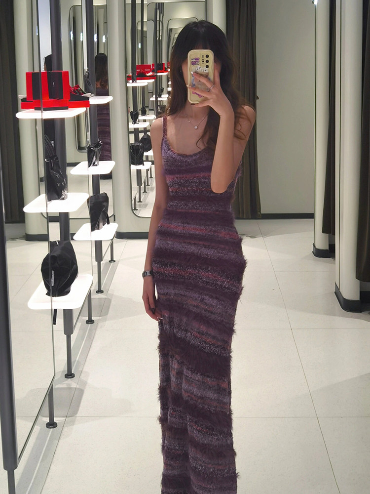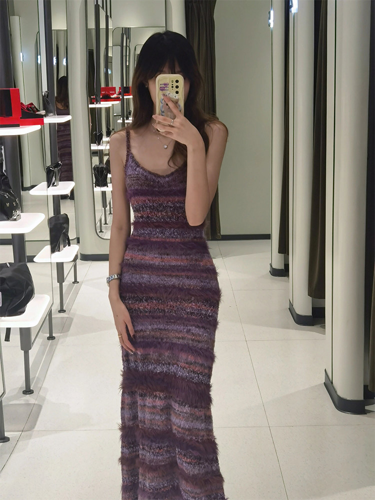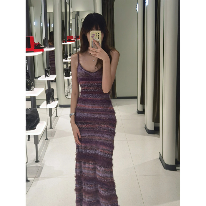 多巴胺春夏季穿搭包臀長裙子撞色條紋背心裙收腰修身吊帶連衣裙女