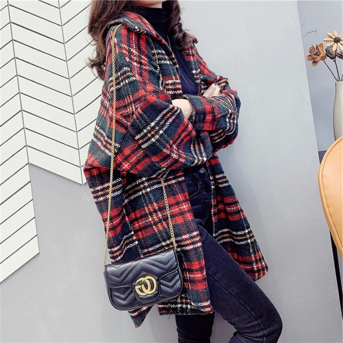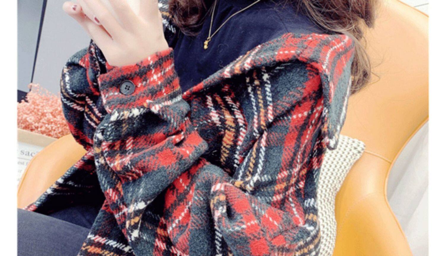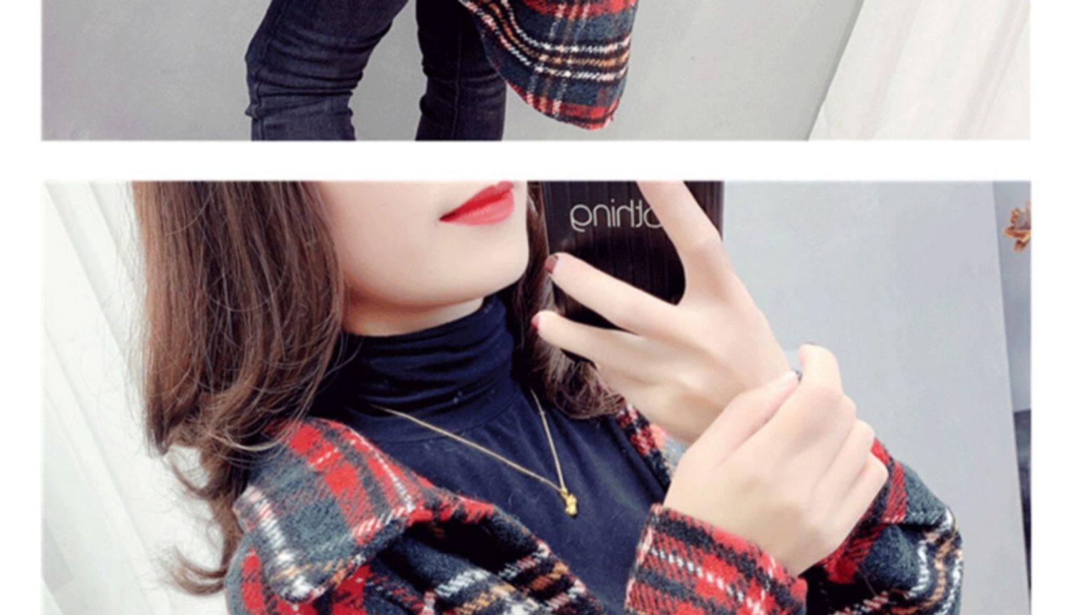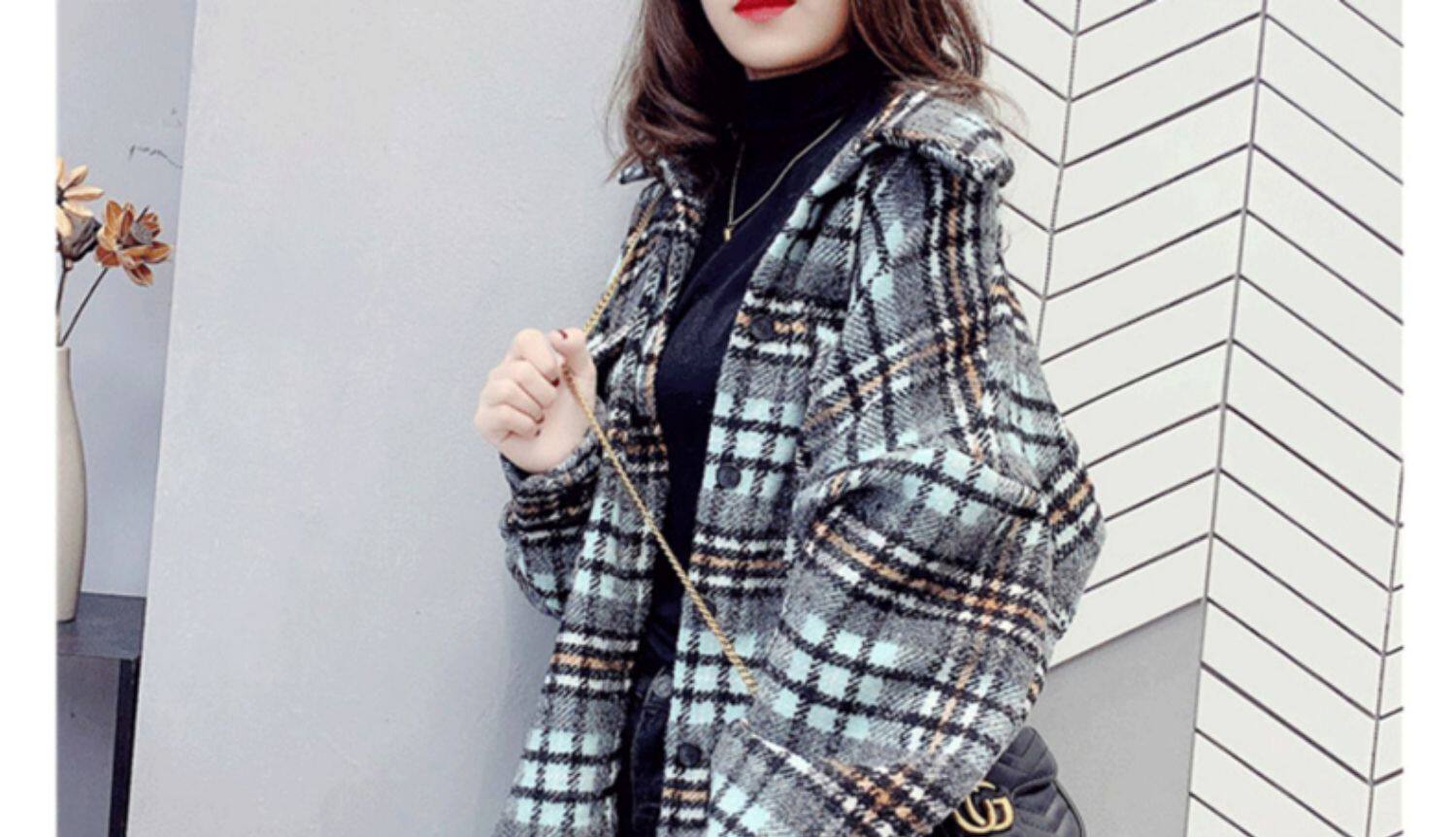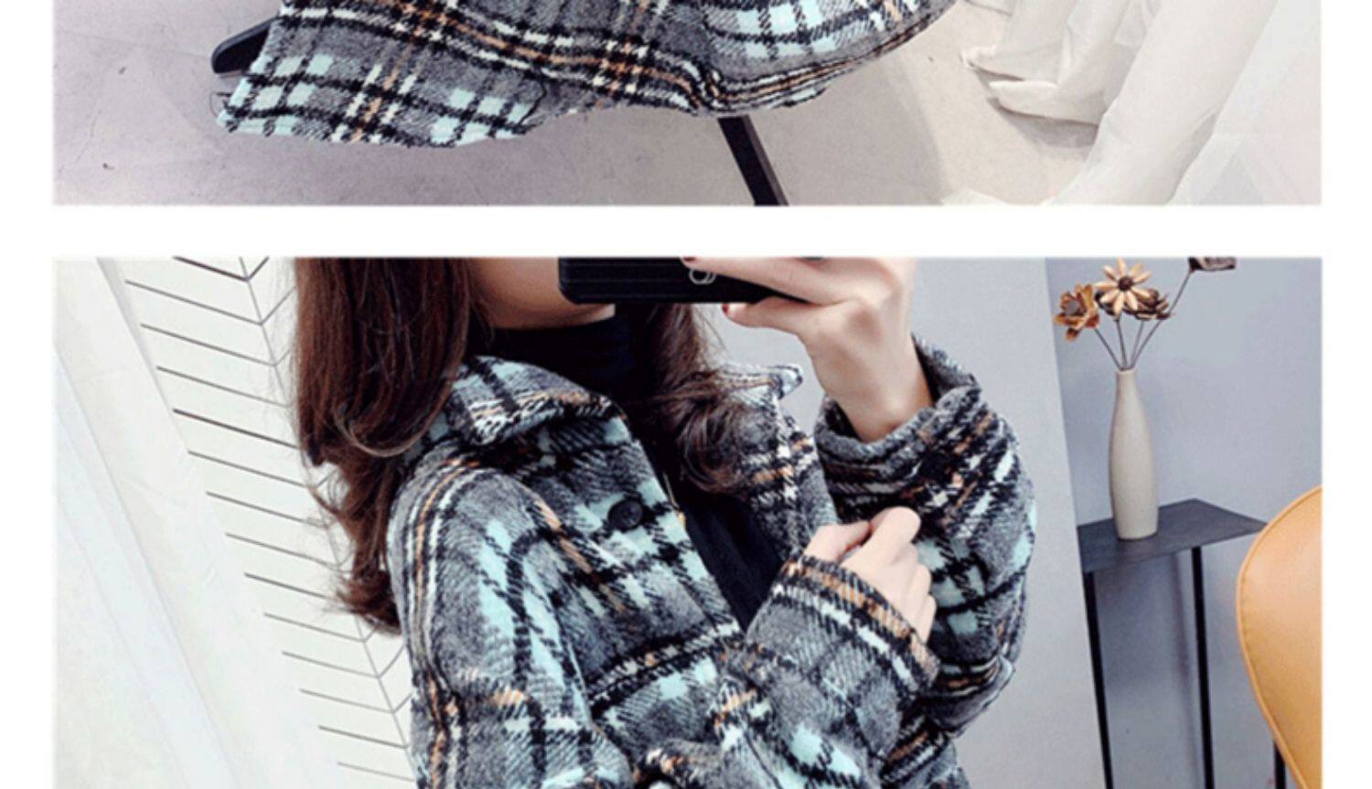 高級感毛呢格子襯衫女秋冬設計感小衆中長款上衣加厚磨毛襯衣外套