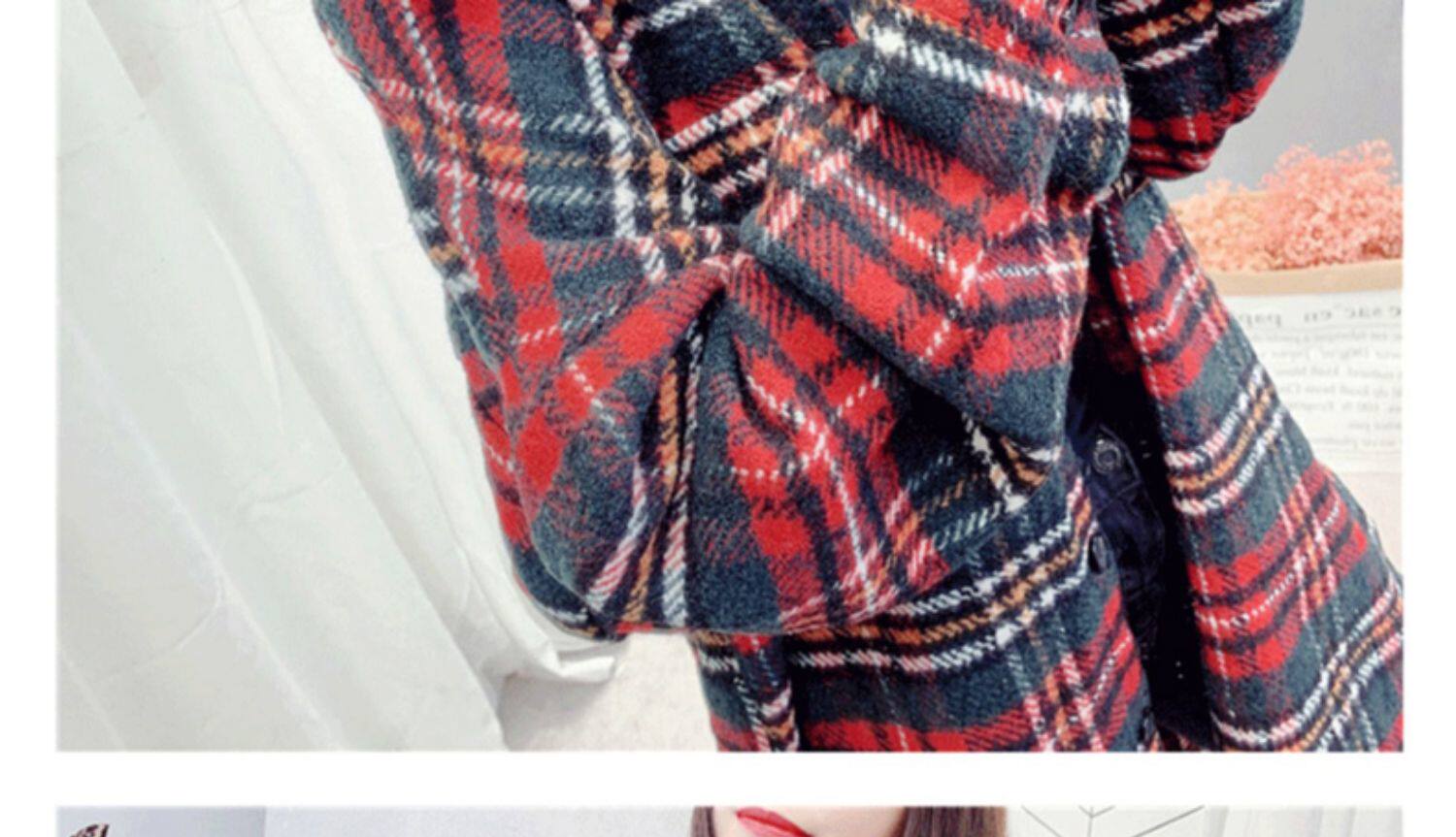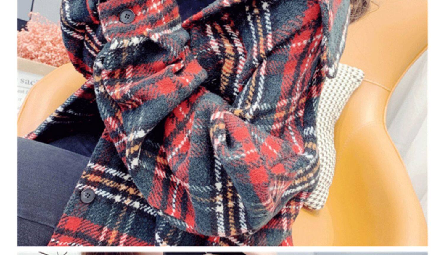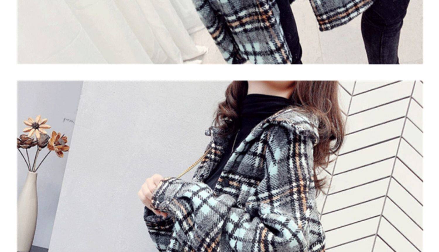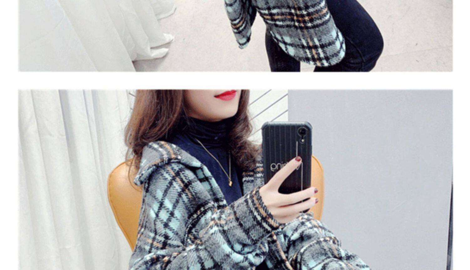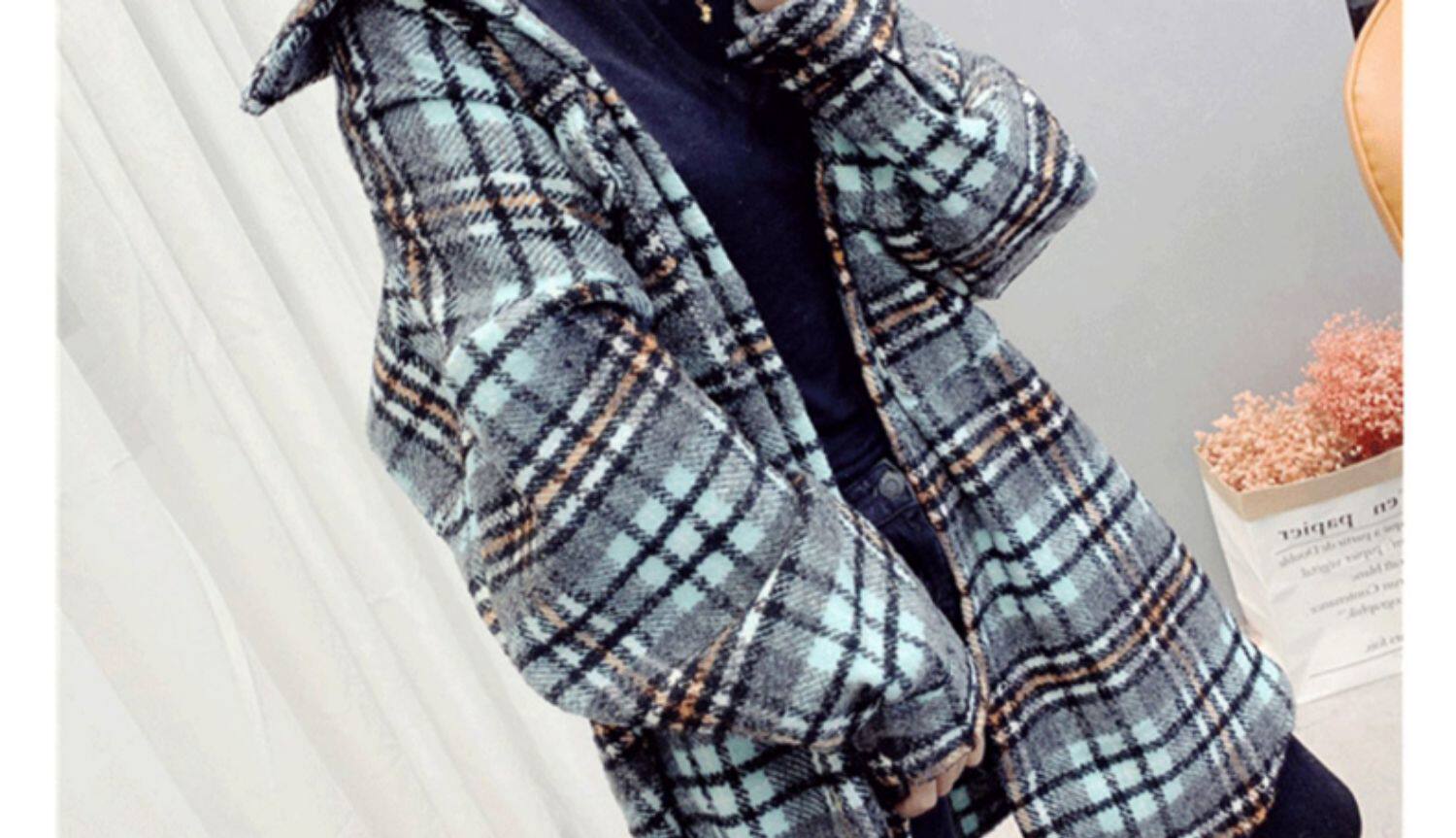 高級感毛呢格子襯衫女秋冬設計感小衆中長款上衣加厚磨毛襯衣外套