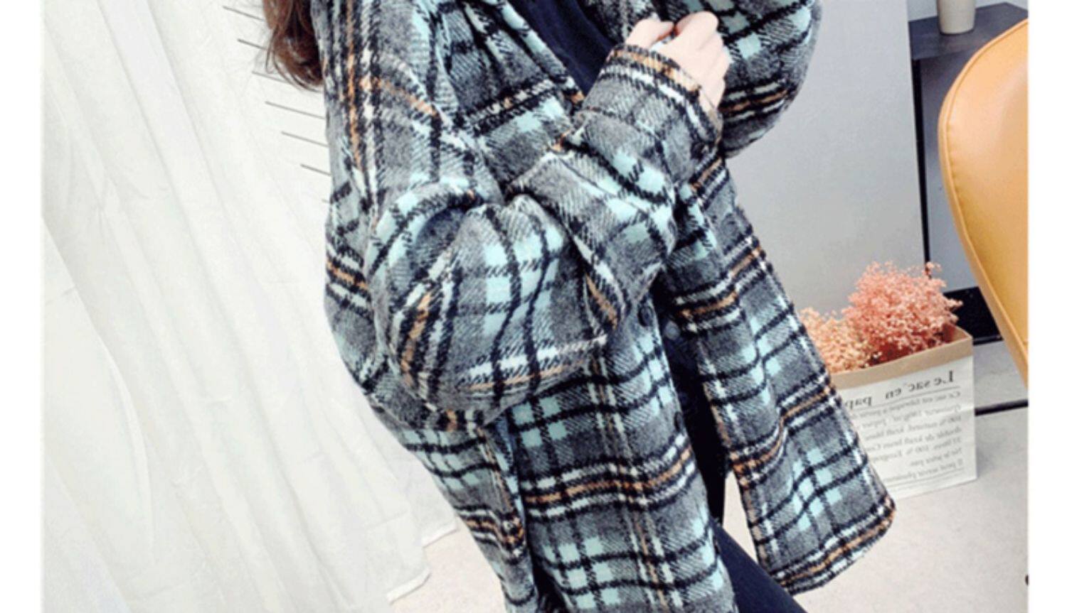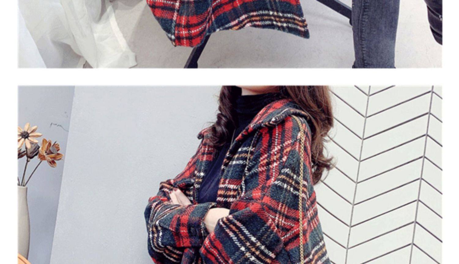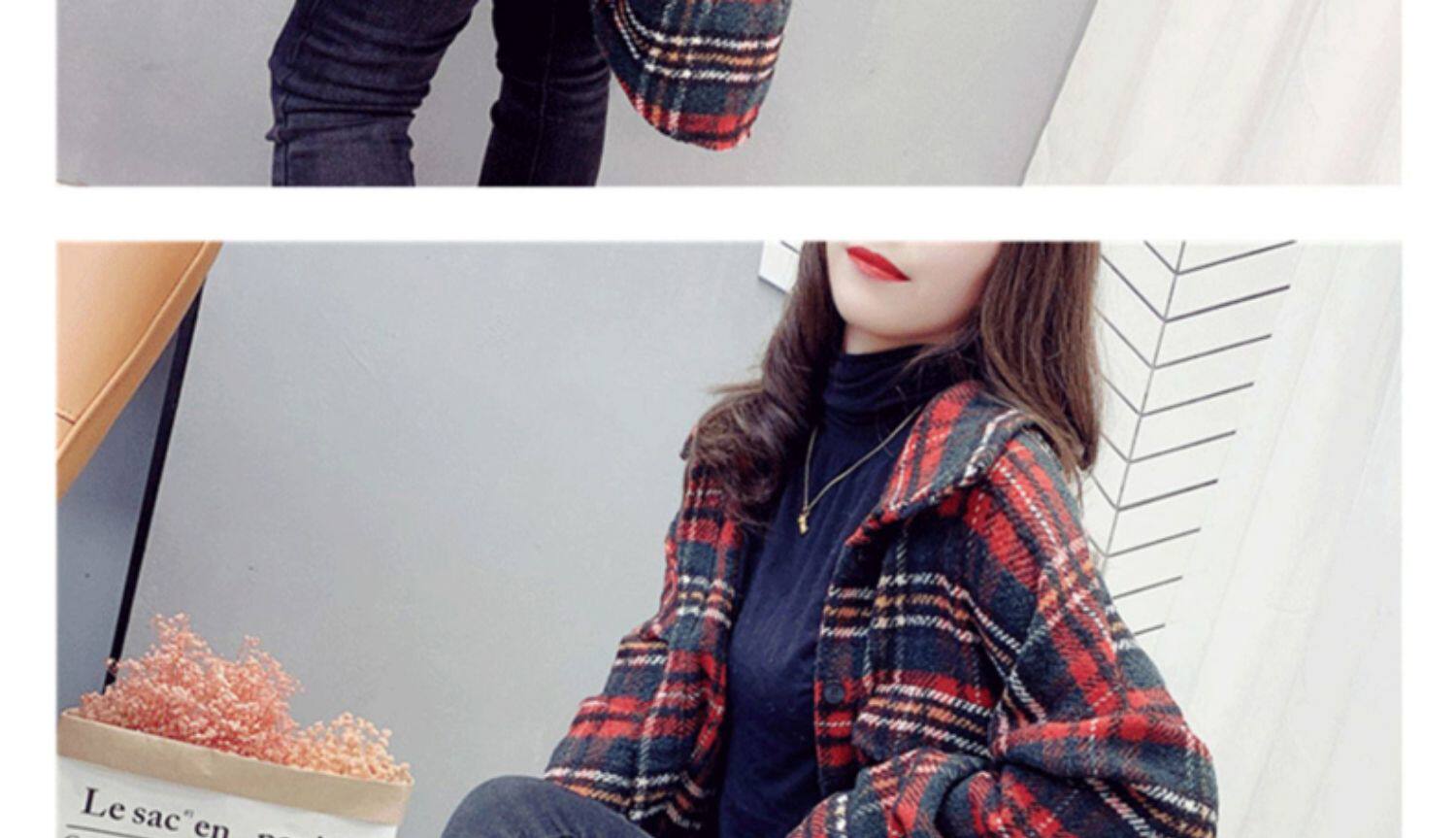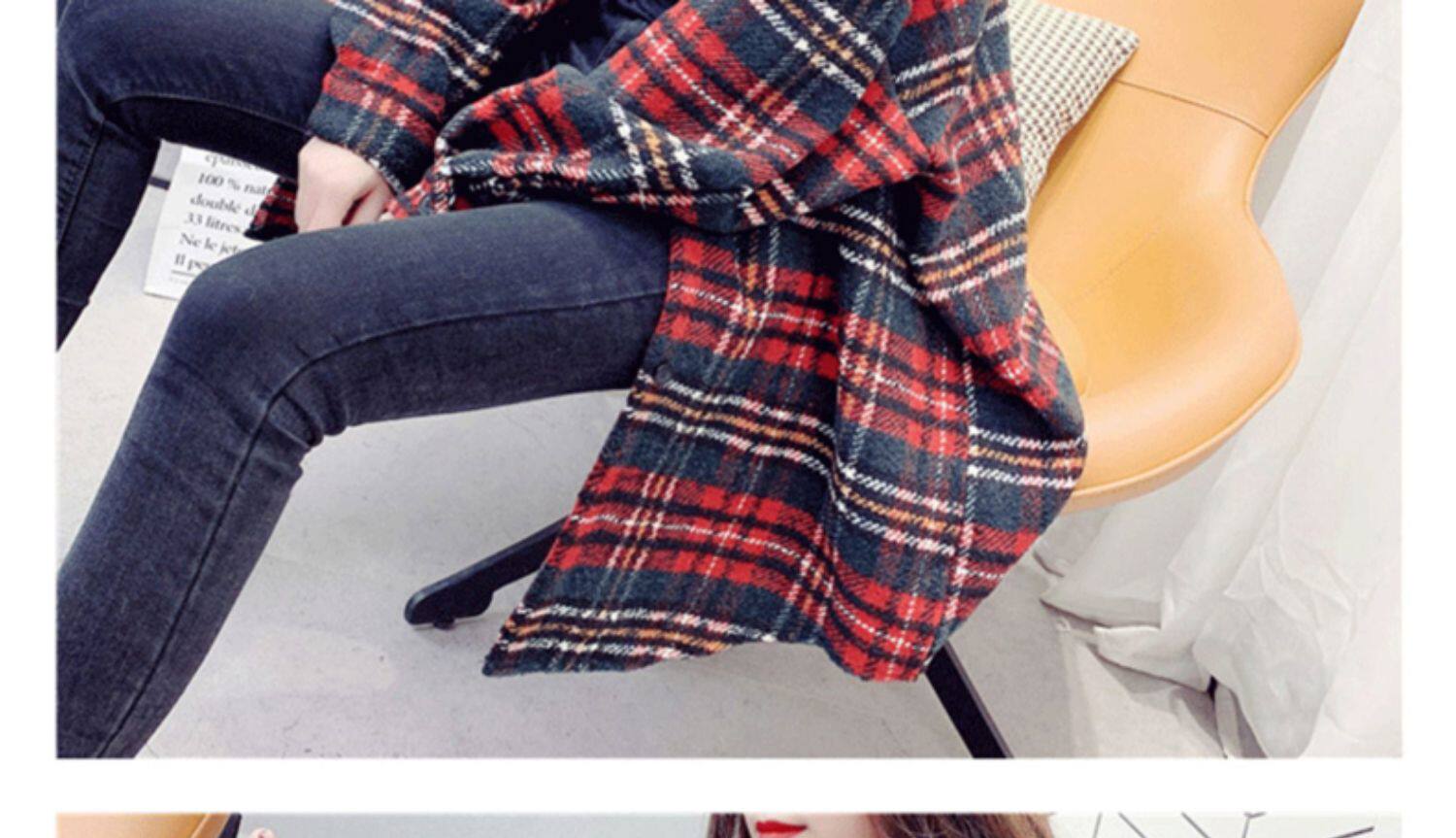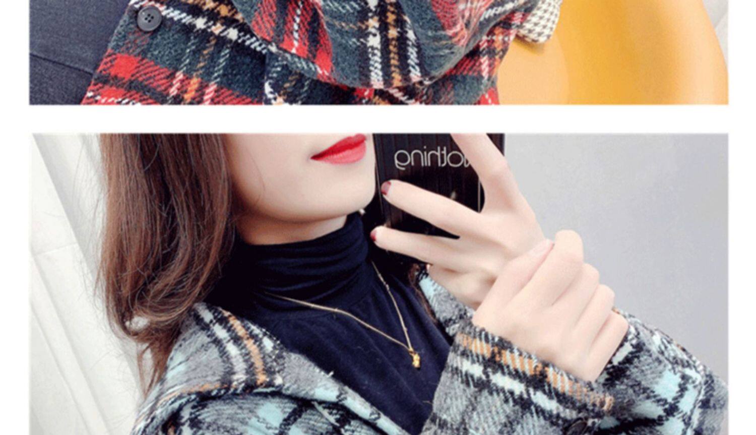高級感毛呢格子襯衫女秋冬設計感小衆中長款上衣加厚磨毛襯衣外套