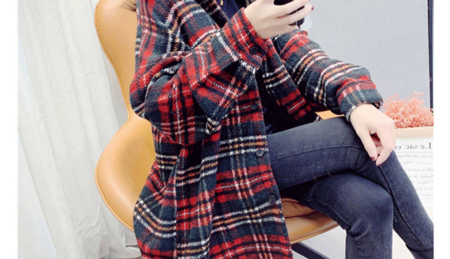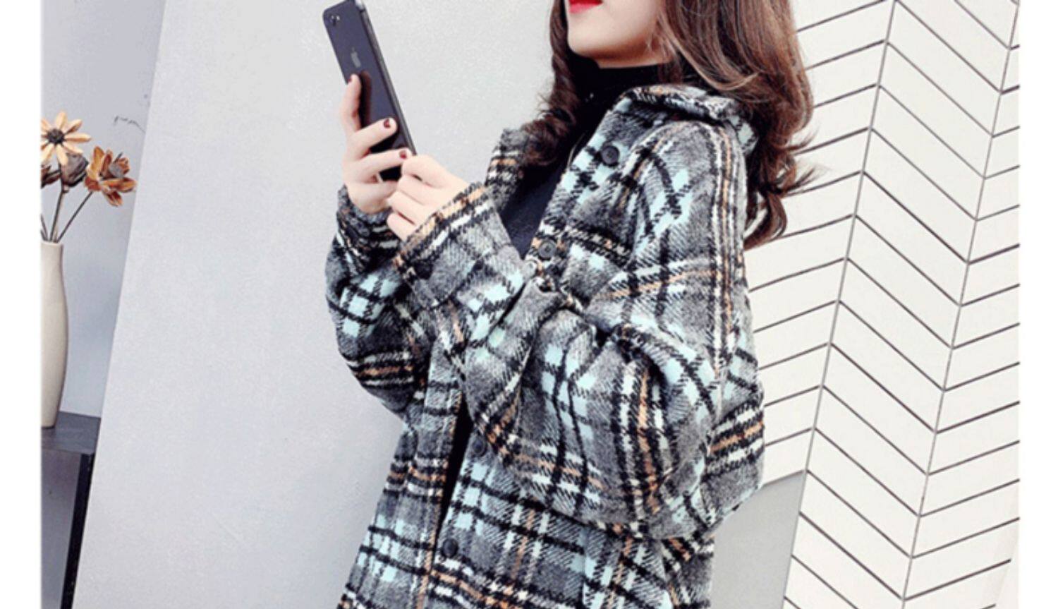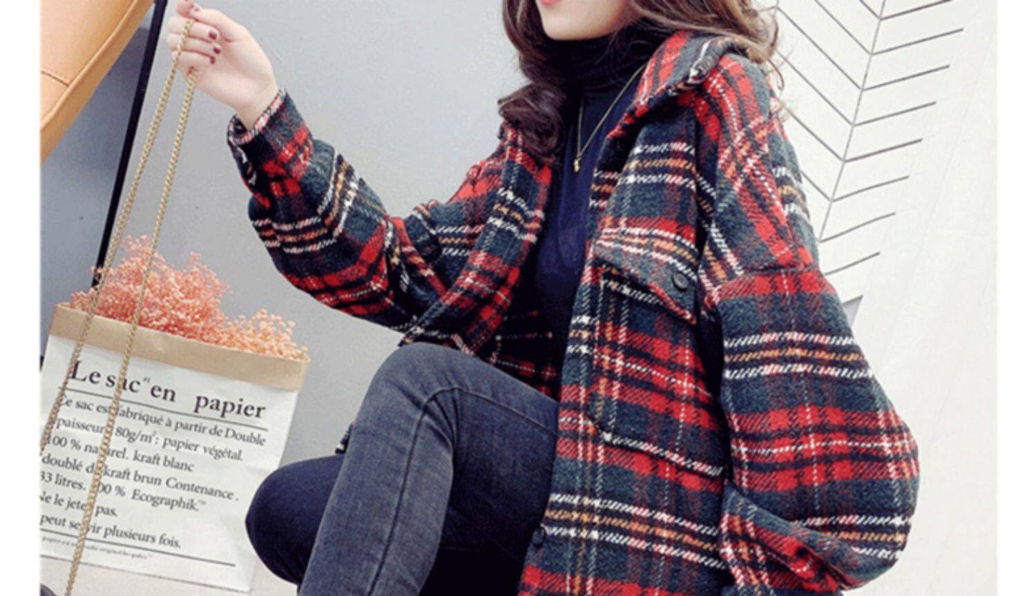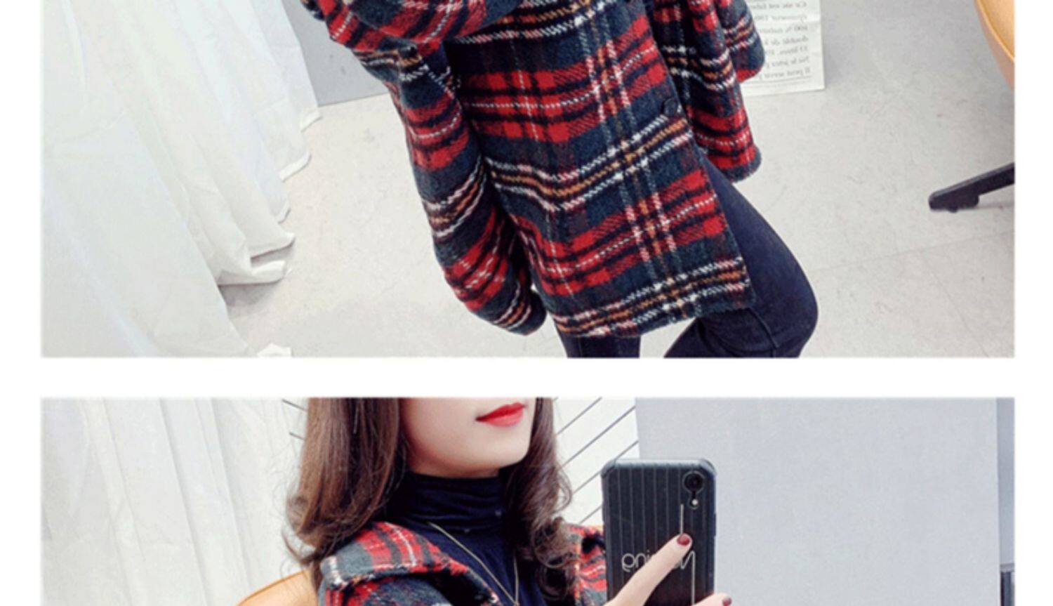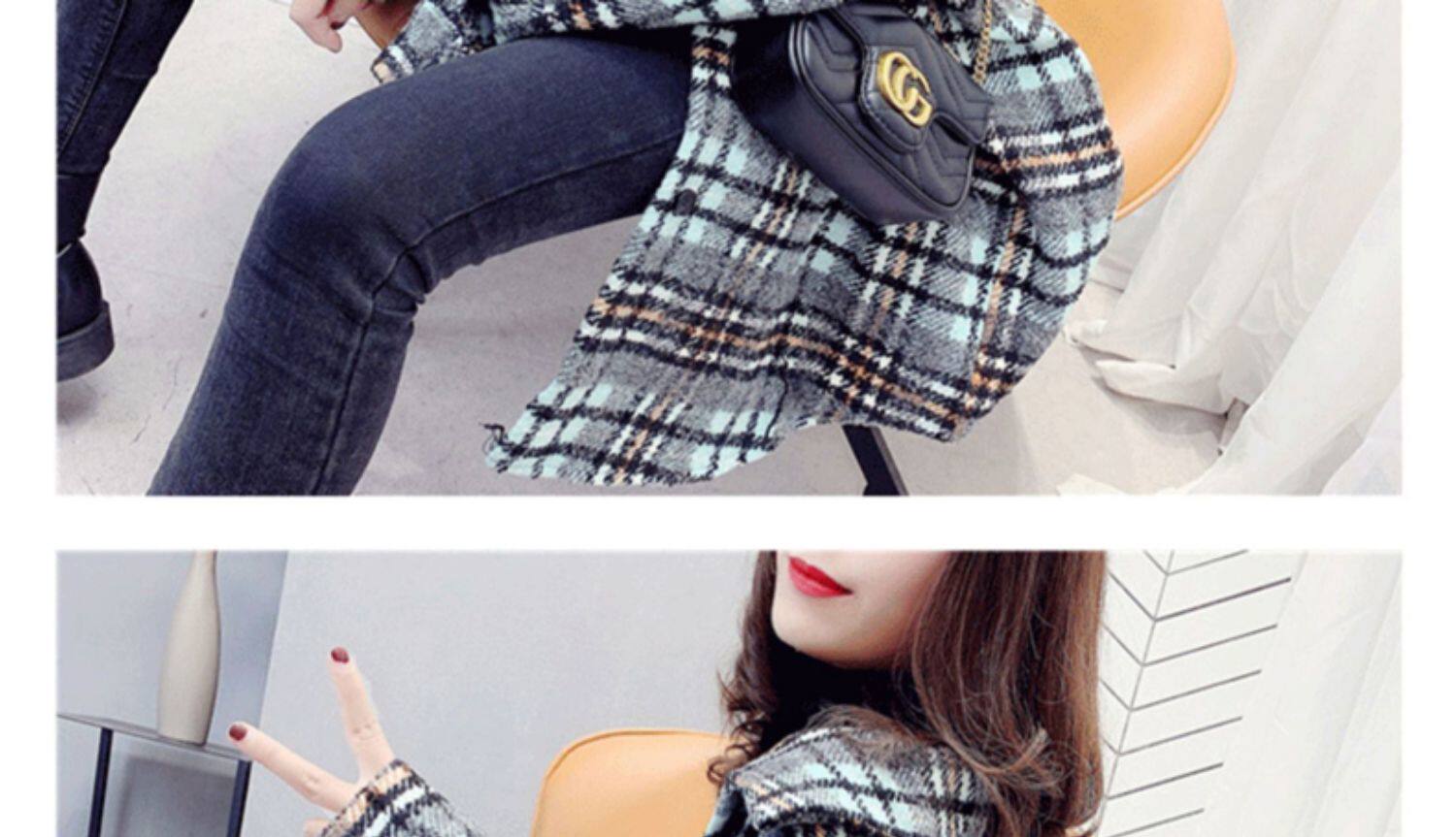 高級感毛呢格子襯衫女秋冬設計感小衆中長款上衣加厚磨毛襯衣外套