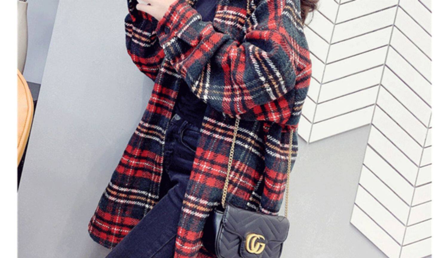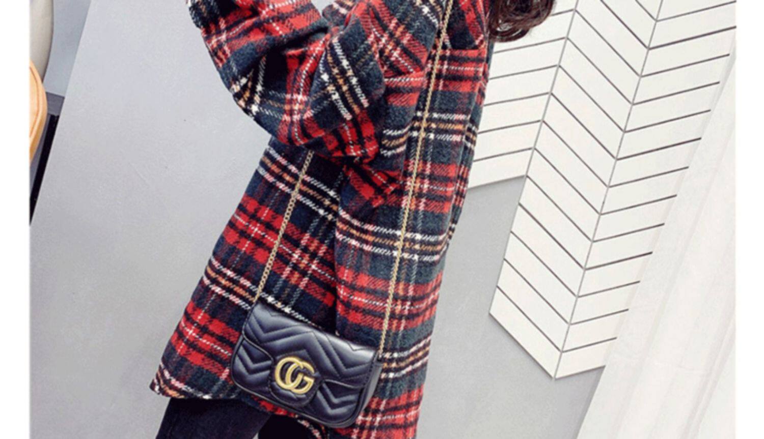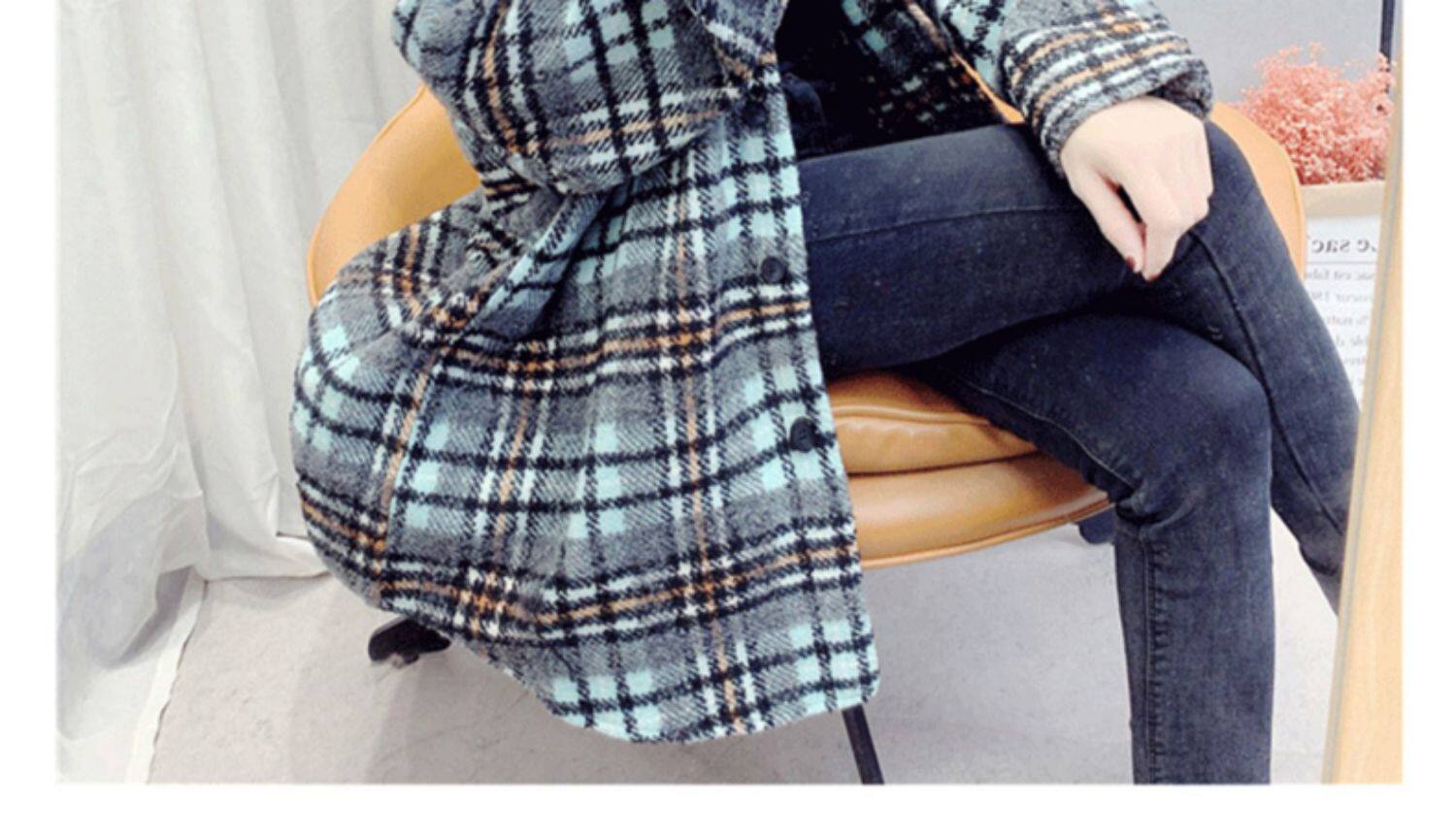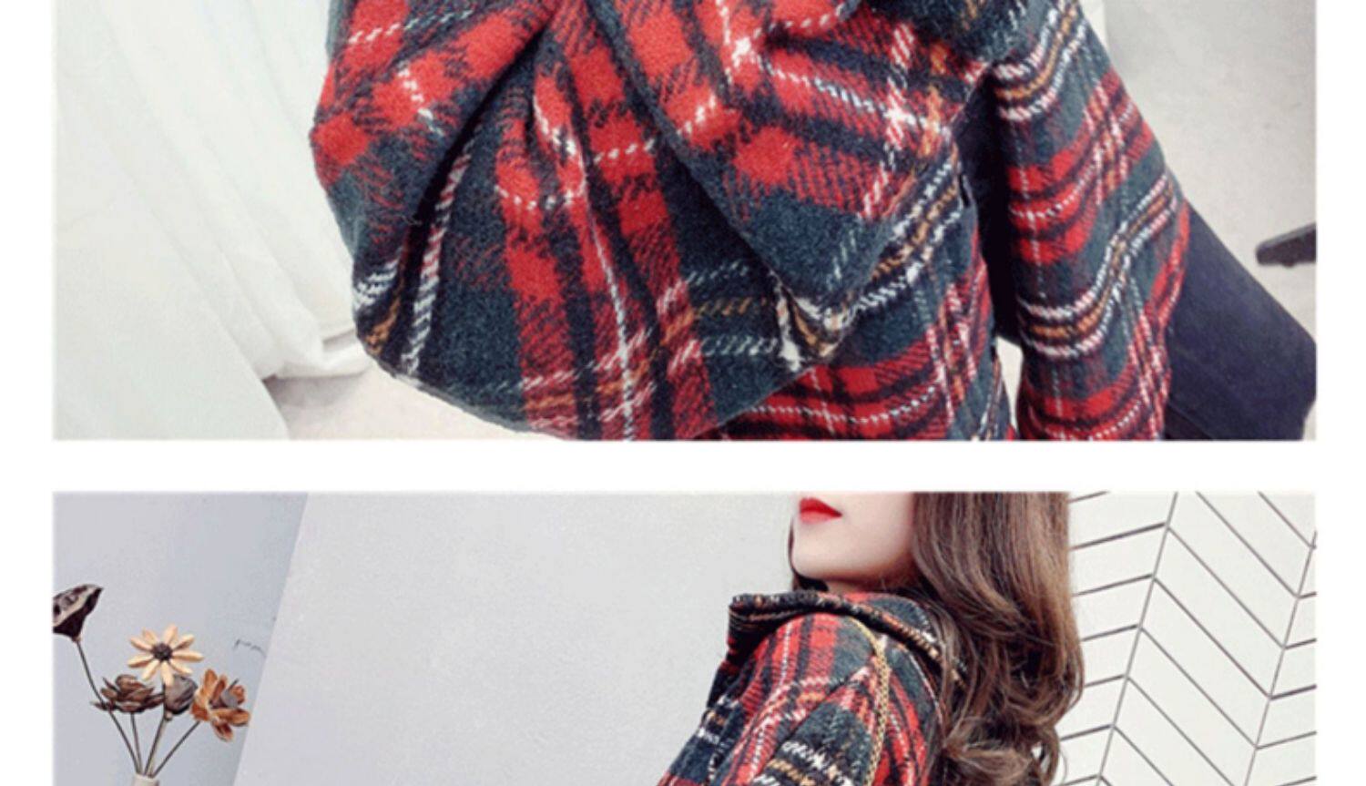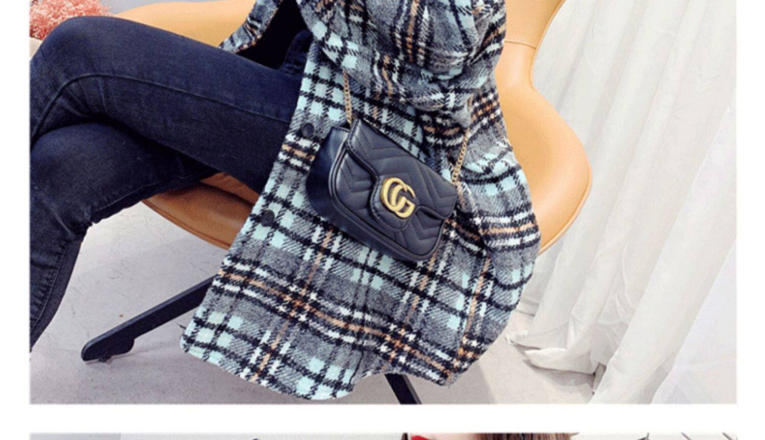高級感毛呢格子襯衫女秋冬設計感小衆中長款上衣加厚磨毛襯衣外套