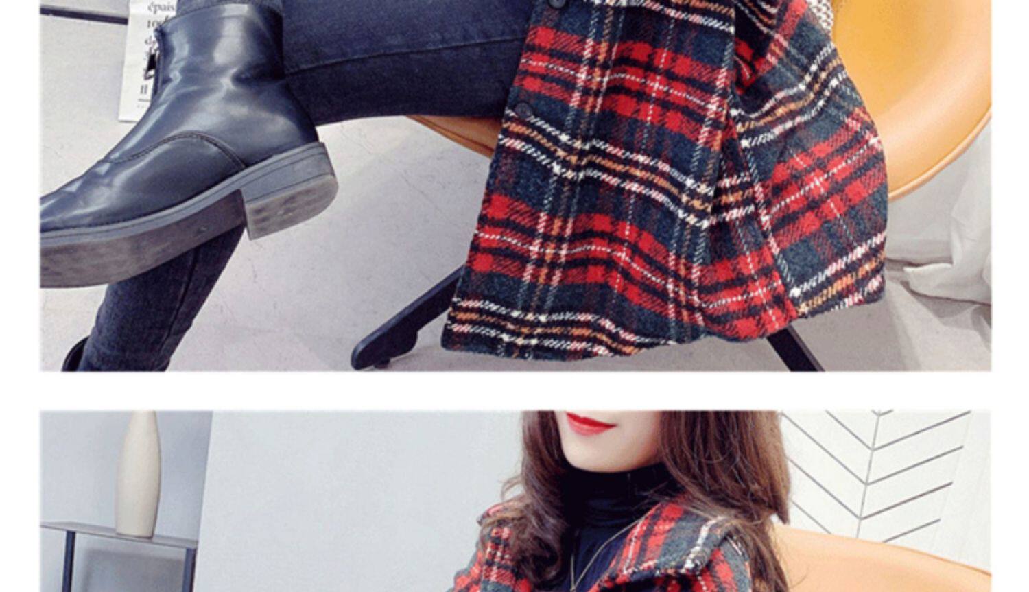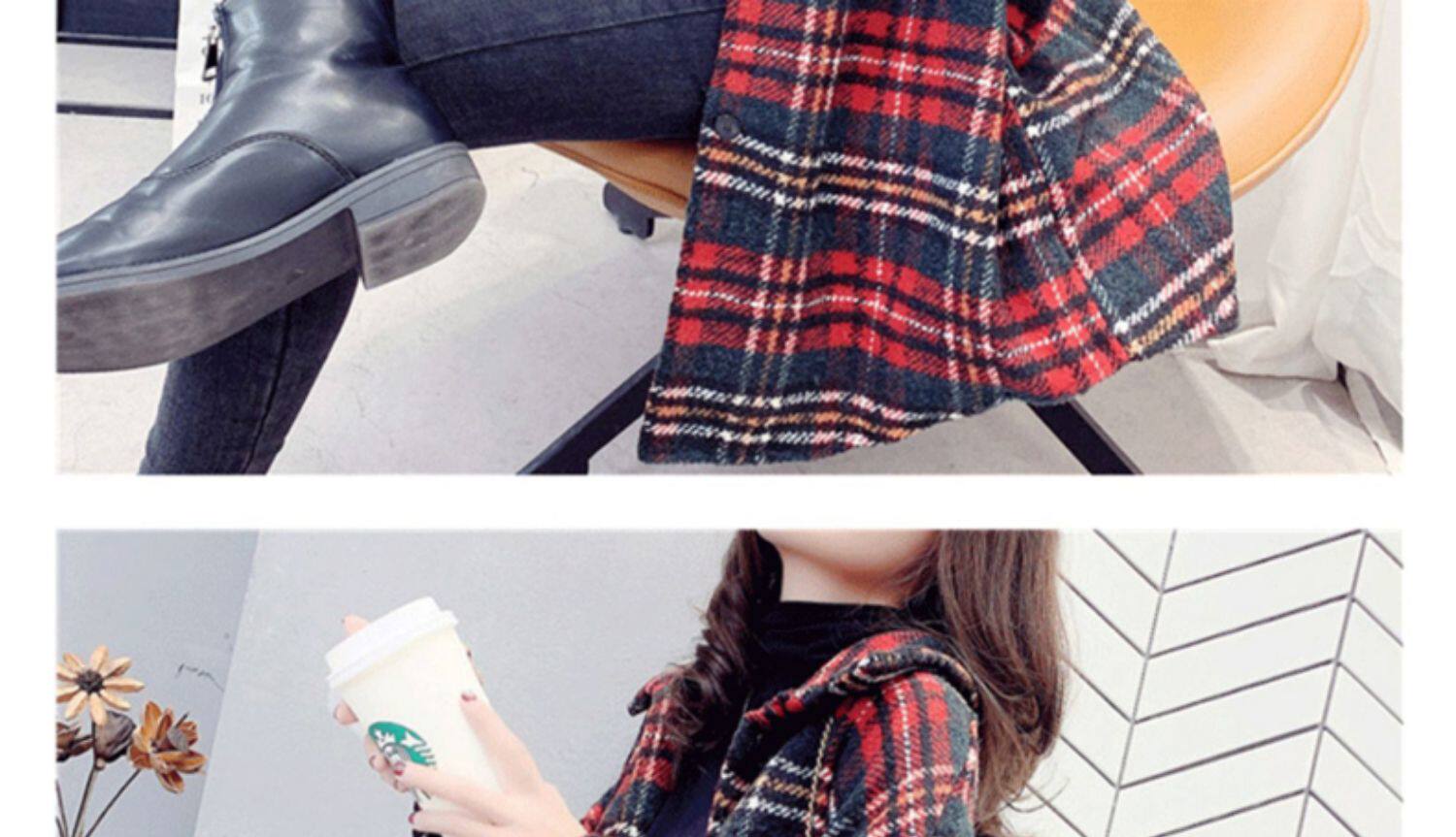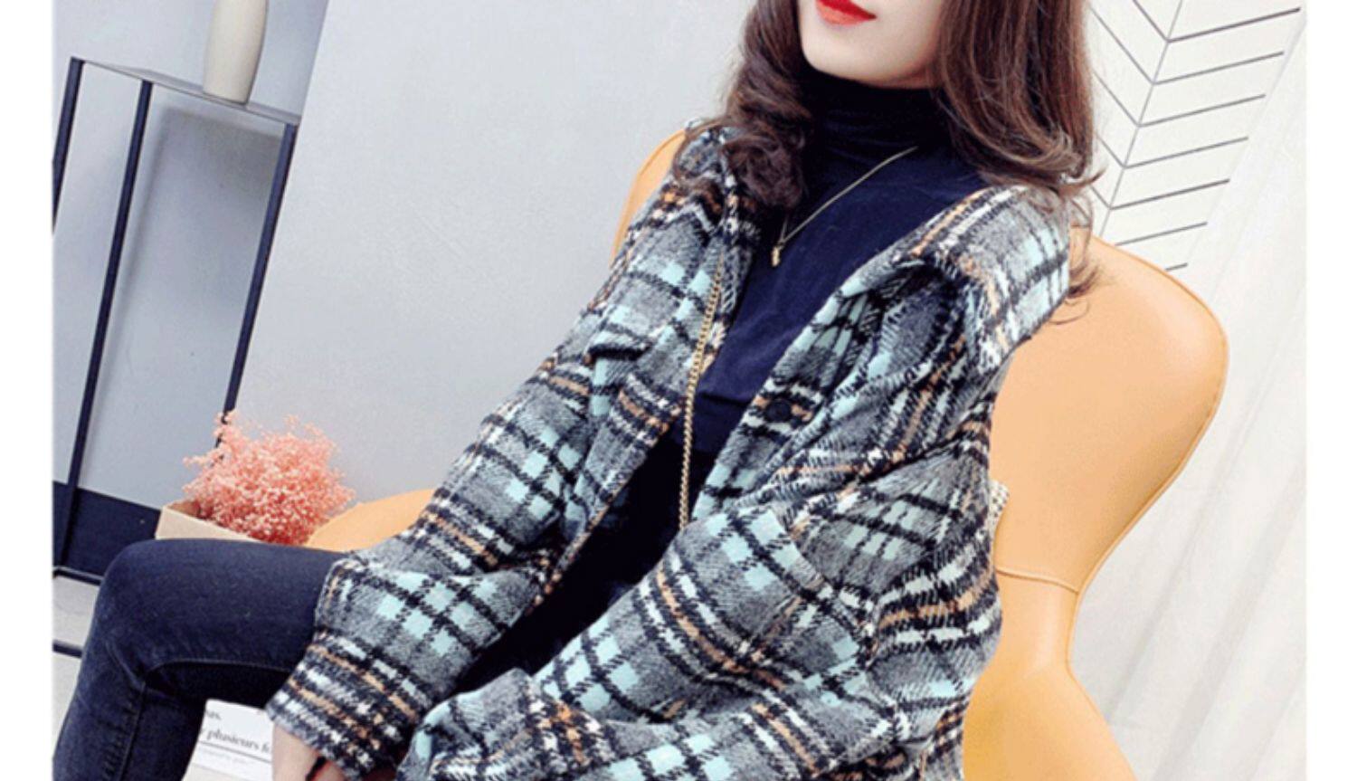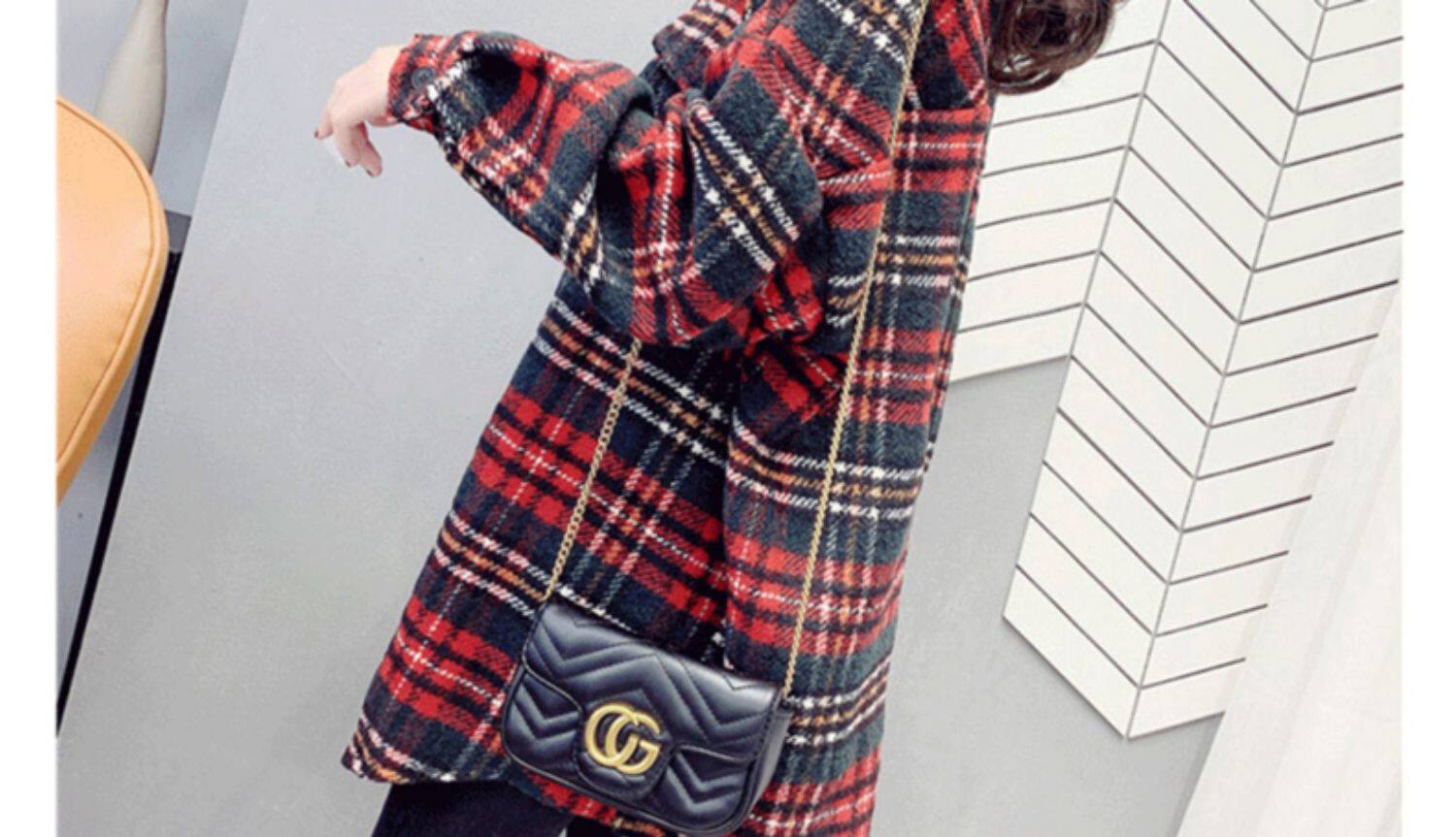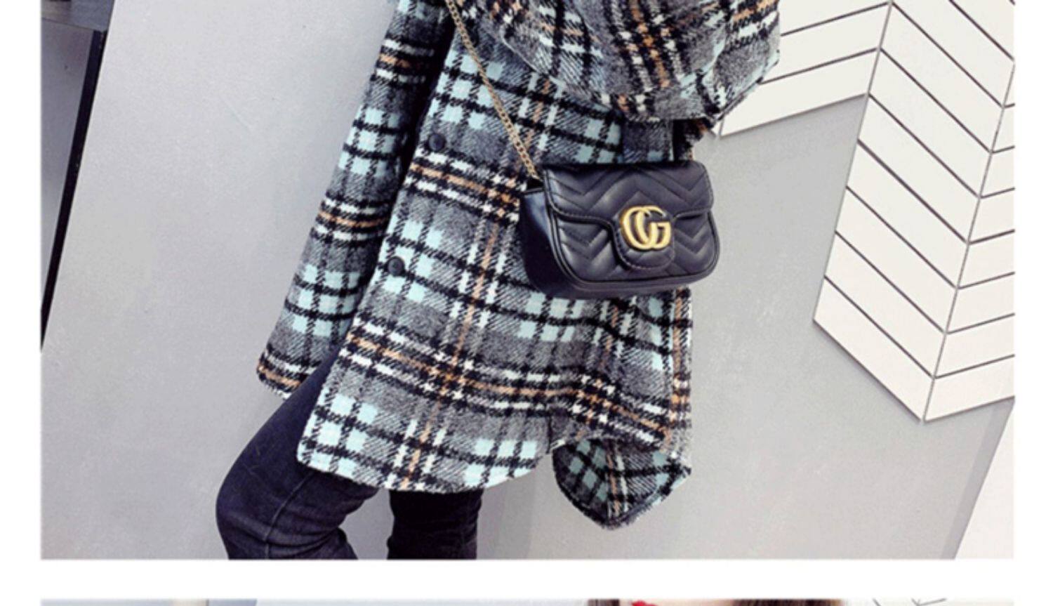 高級感毛呢格子襯衫女秋冬設計感小衆中長款上衣加厚磨毛襯衣外套