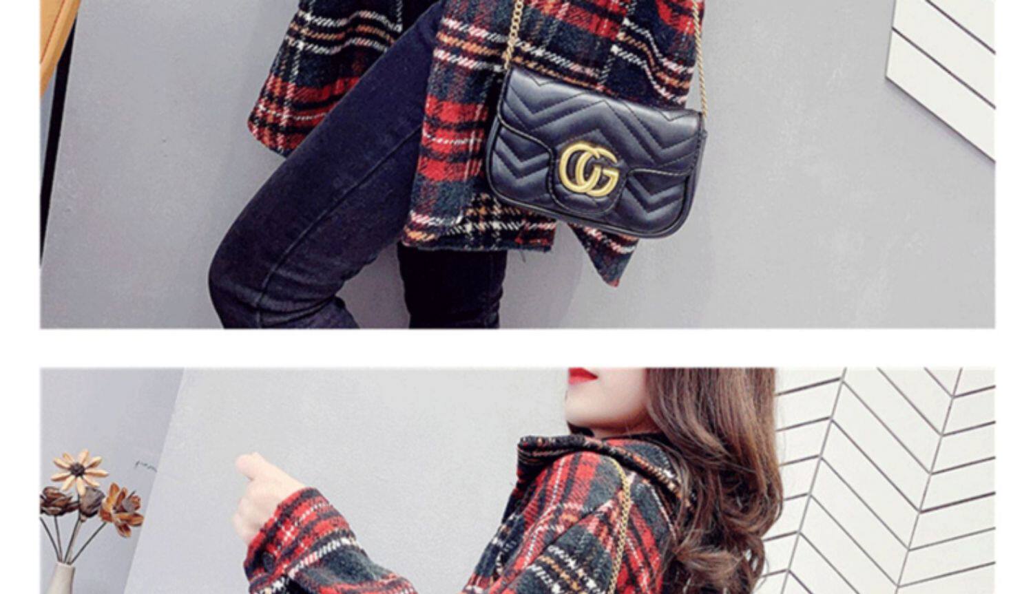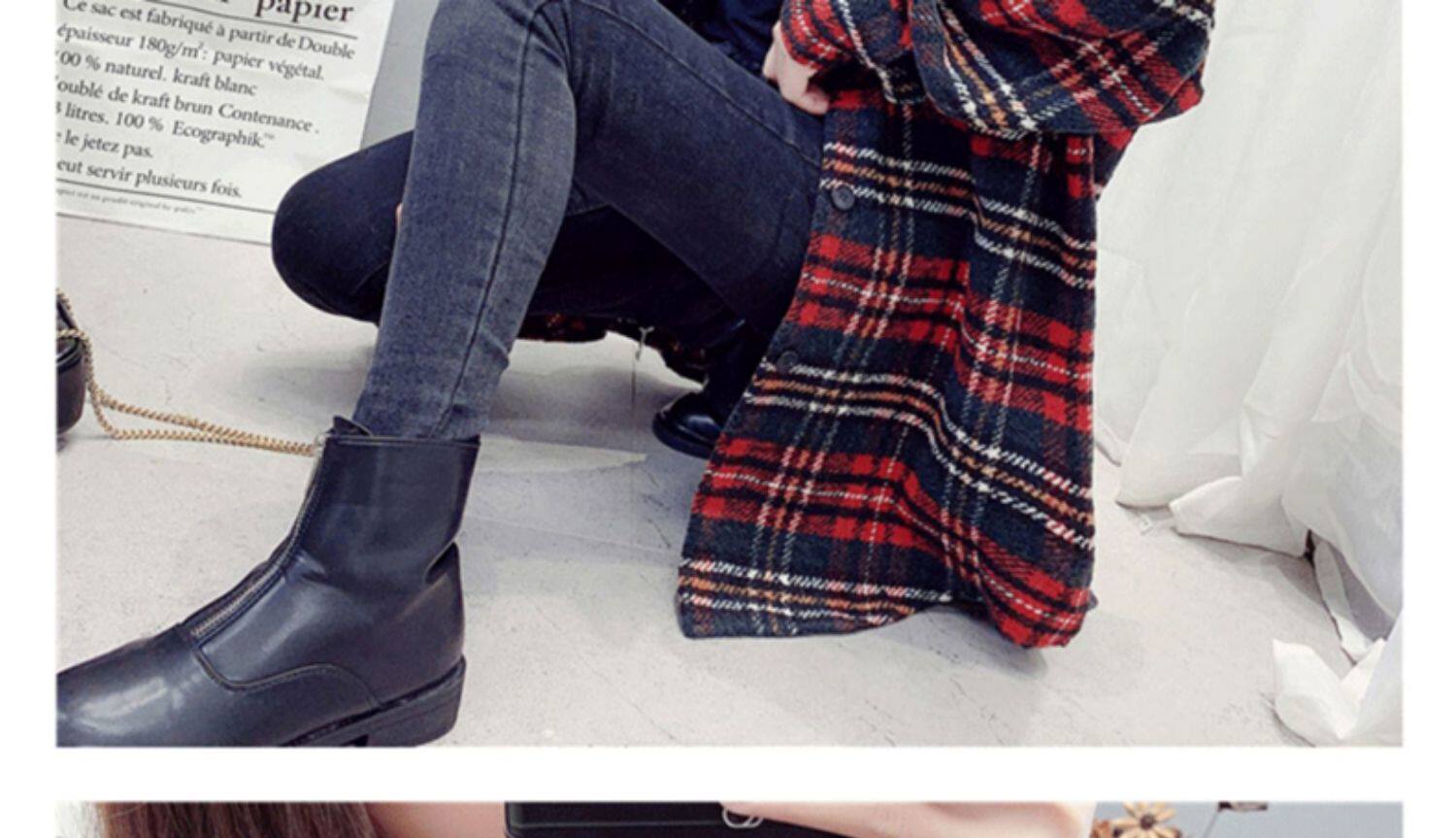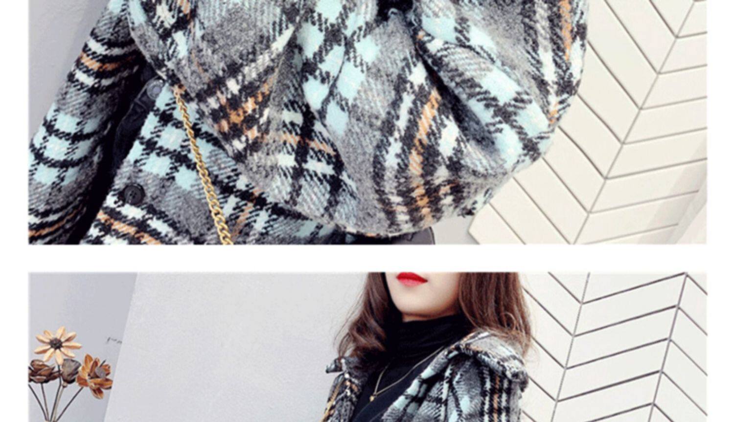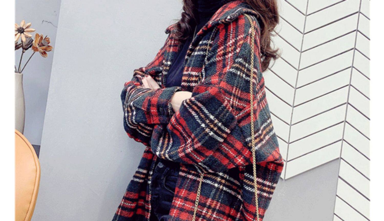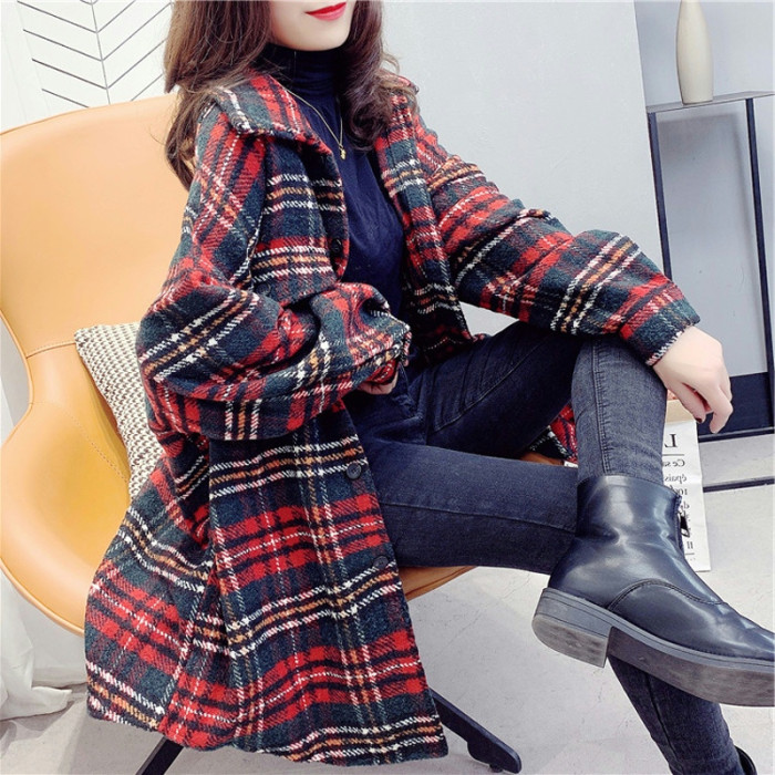高級感毛呢格子襯衫女秋冬設計感小衆中長款上衣加厚磨毛襯衣外套
