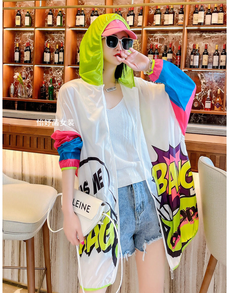 超薄防曬女中長款2025新款長袖寬鬆連帽防曬服女款海邊防曬衣女潮