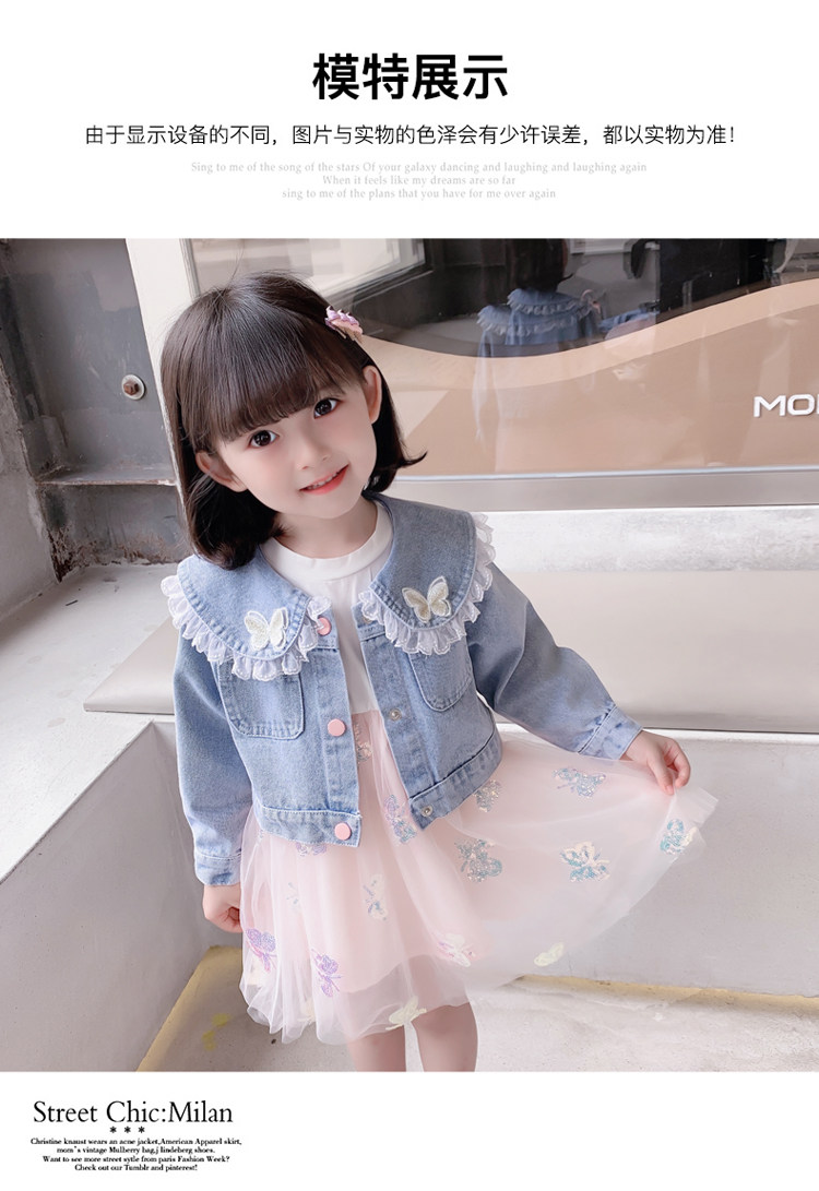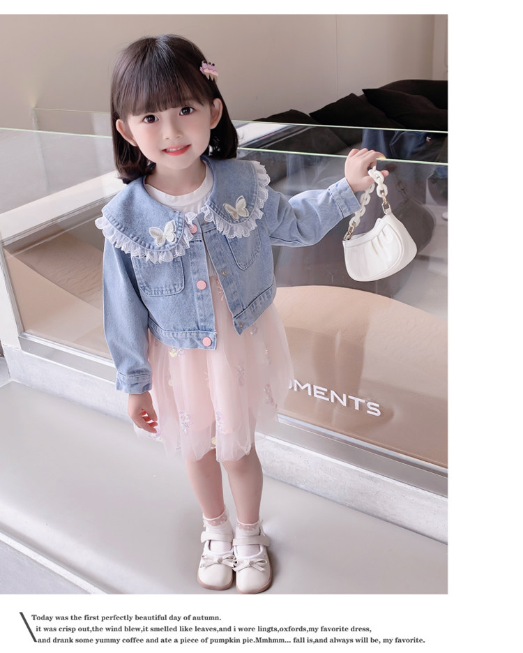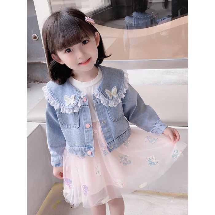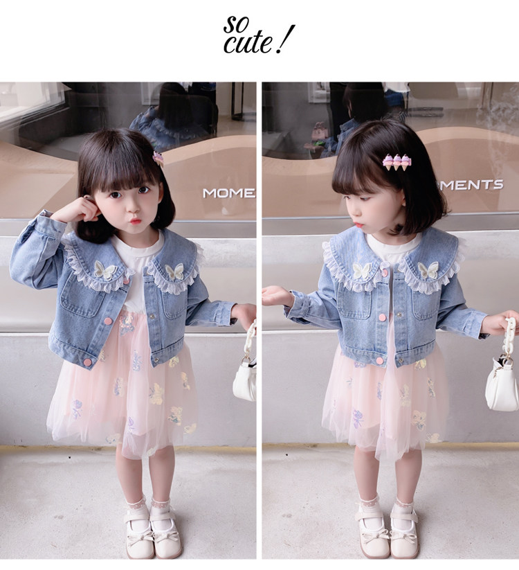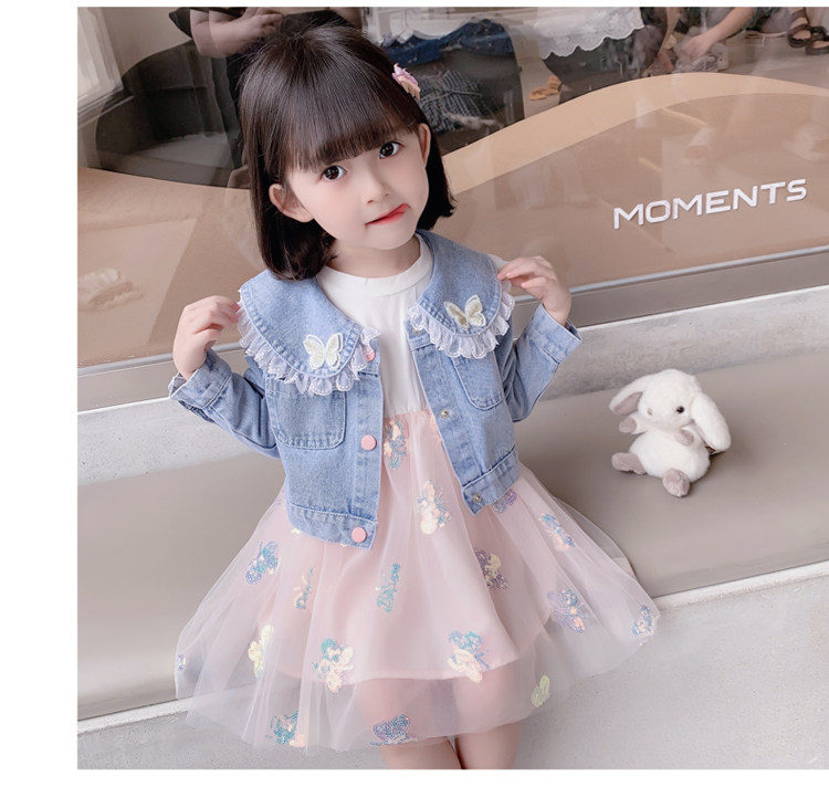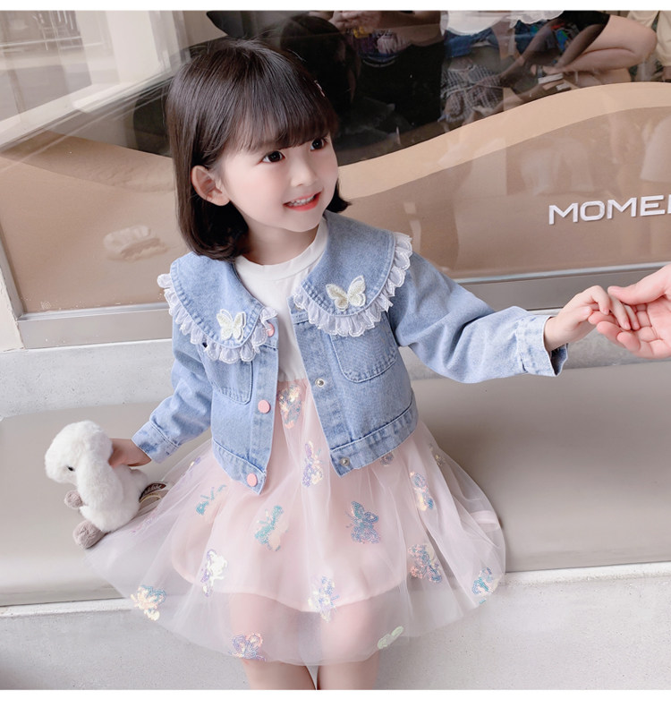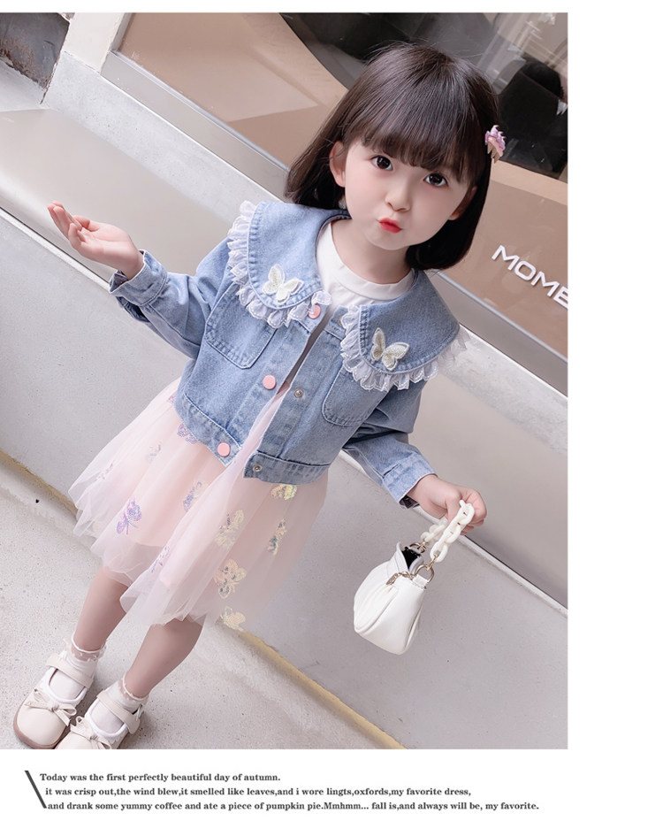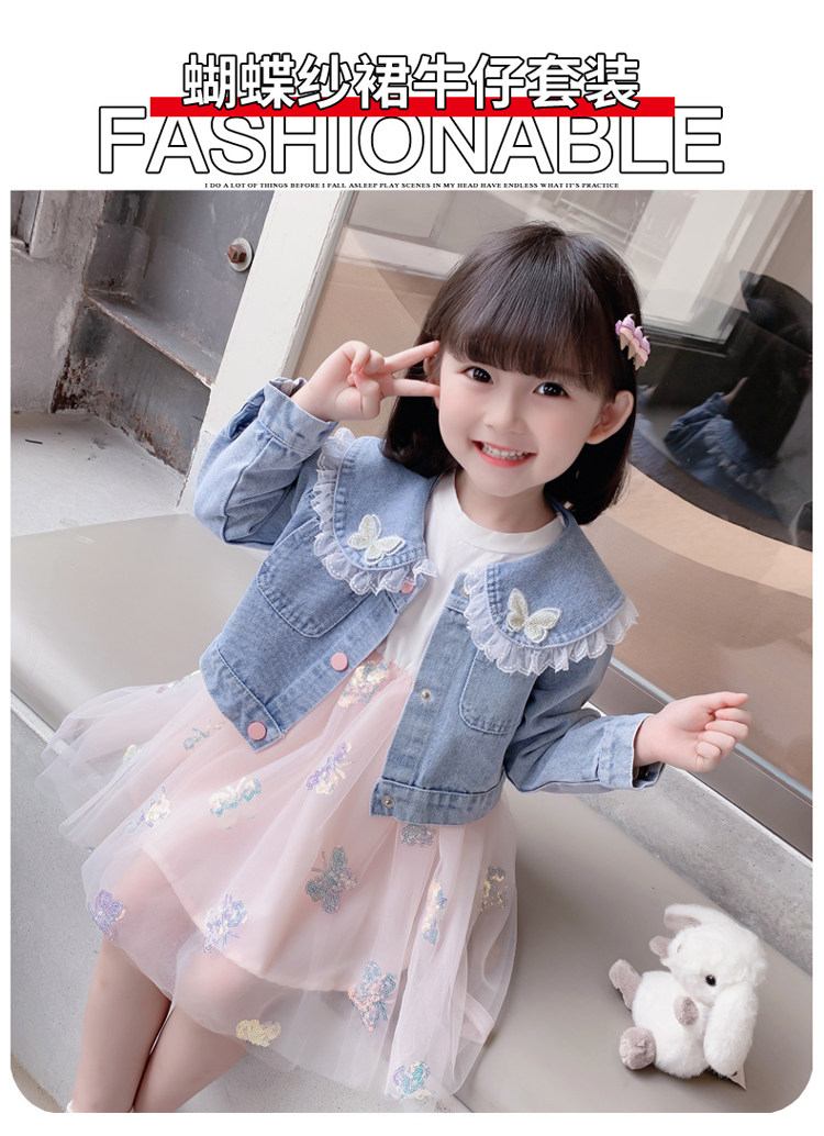 2025春秋款女.童裙套裝韓版女孩蝴蝶紗裙花邊牛仔衣兩件套洋氣潮