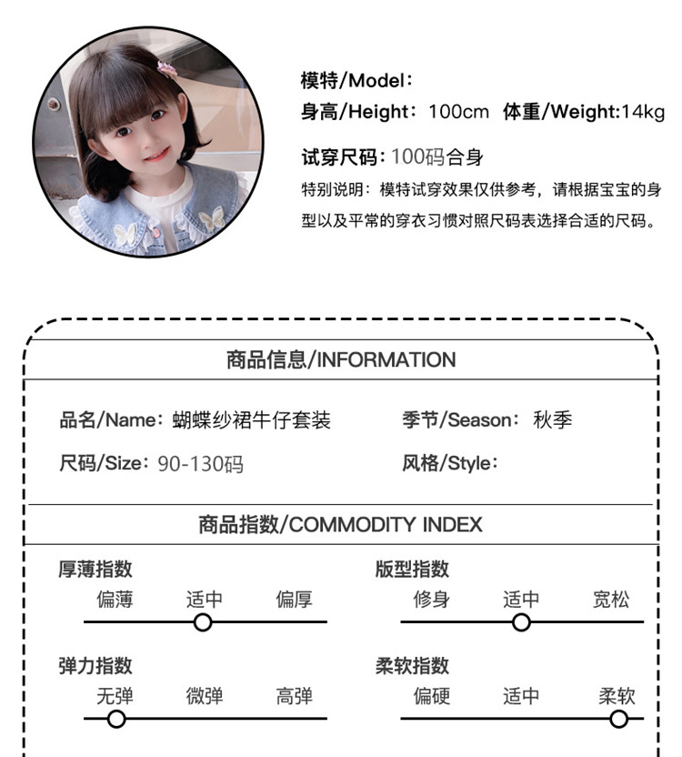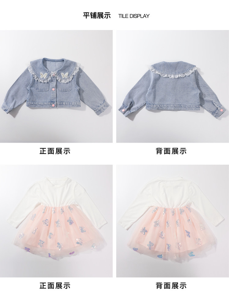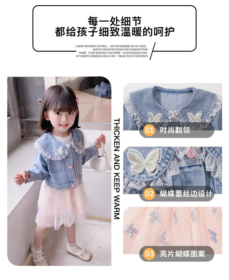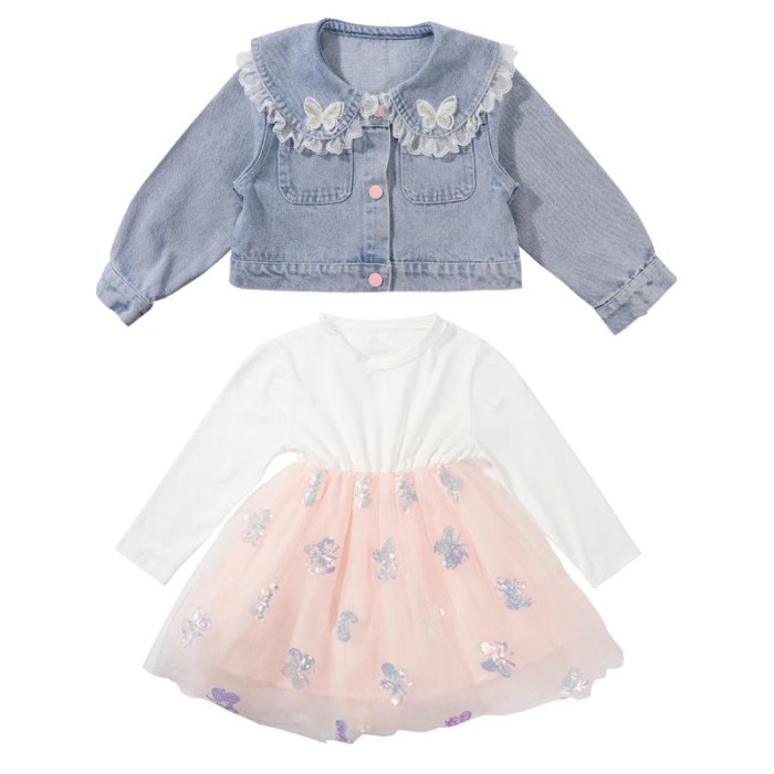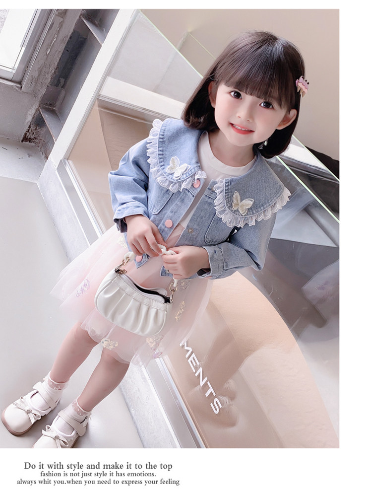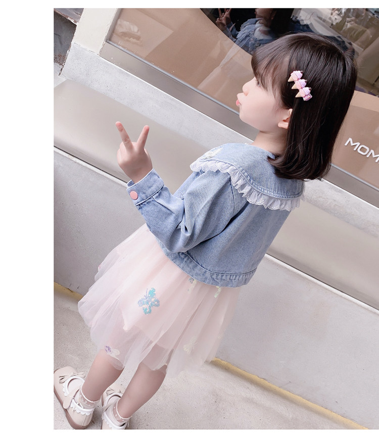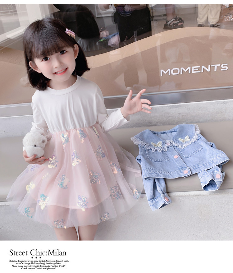 2025春秋款女.童裙套裝韓版女孩蝴蝶紗裙花邊牛仔衣兩件套洋氣潮