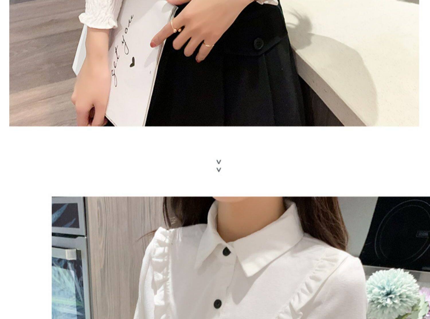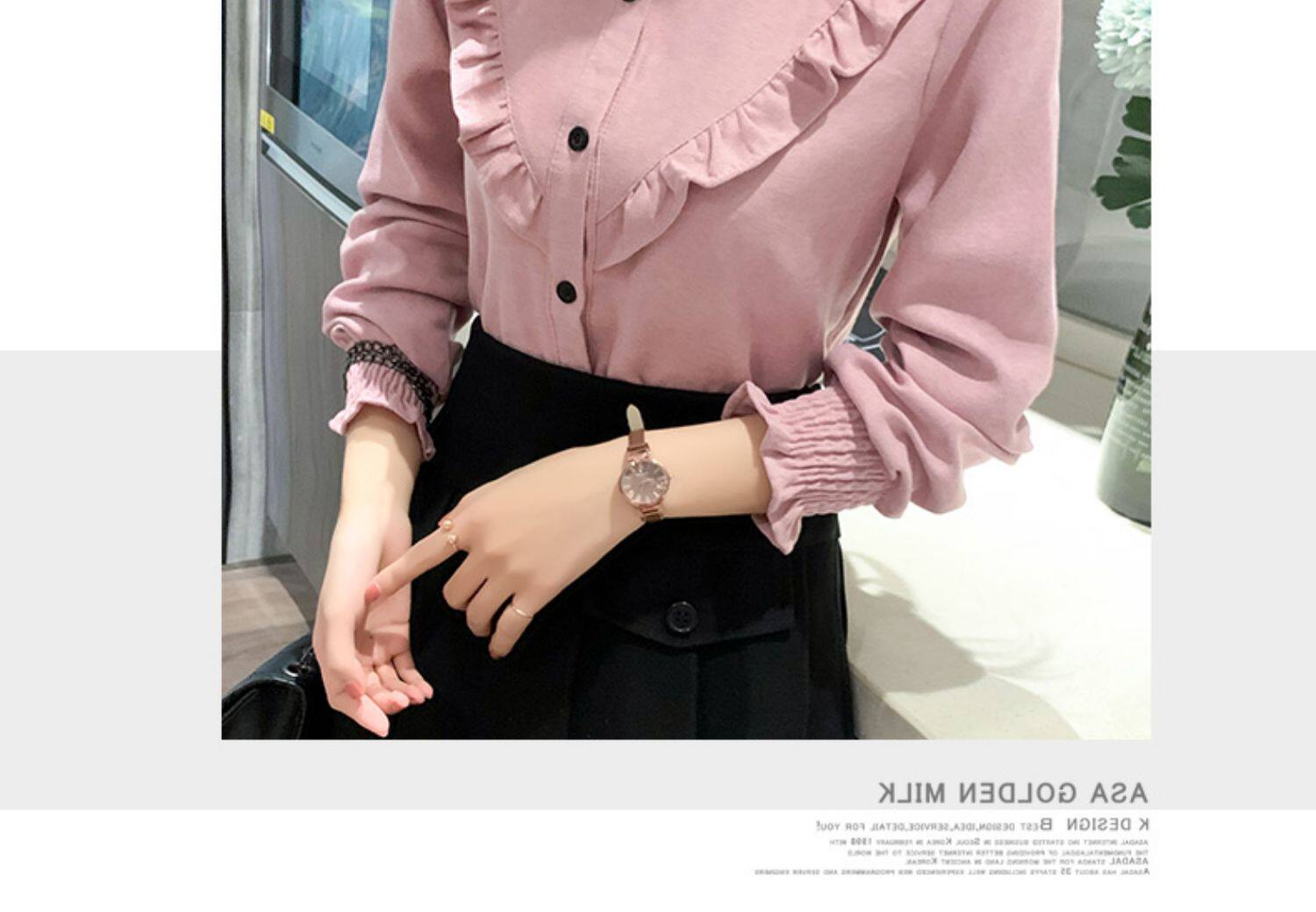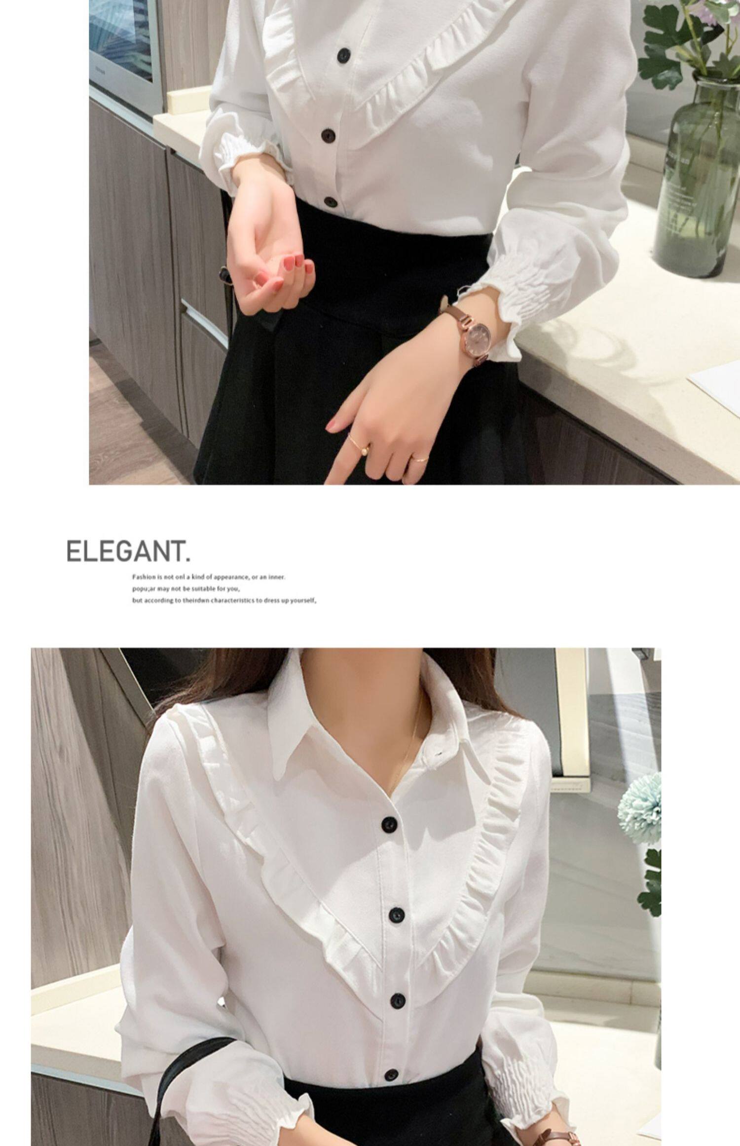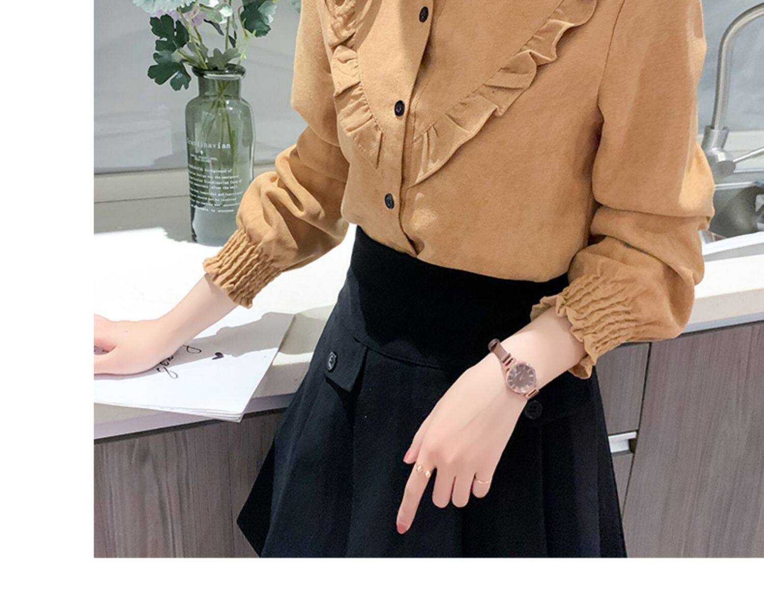 繙領荷葉邊泡泡袖襯衫女秋冬季新款加絨加厚燈芯絨百搭打底衫上衣