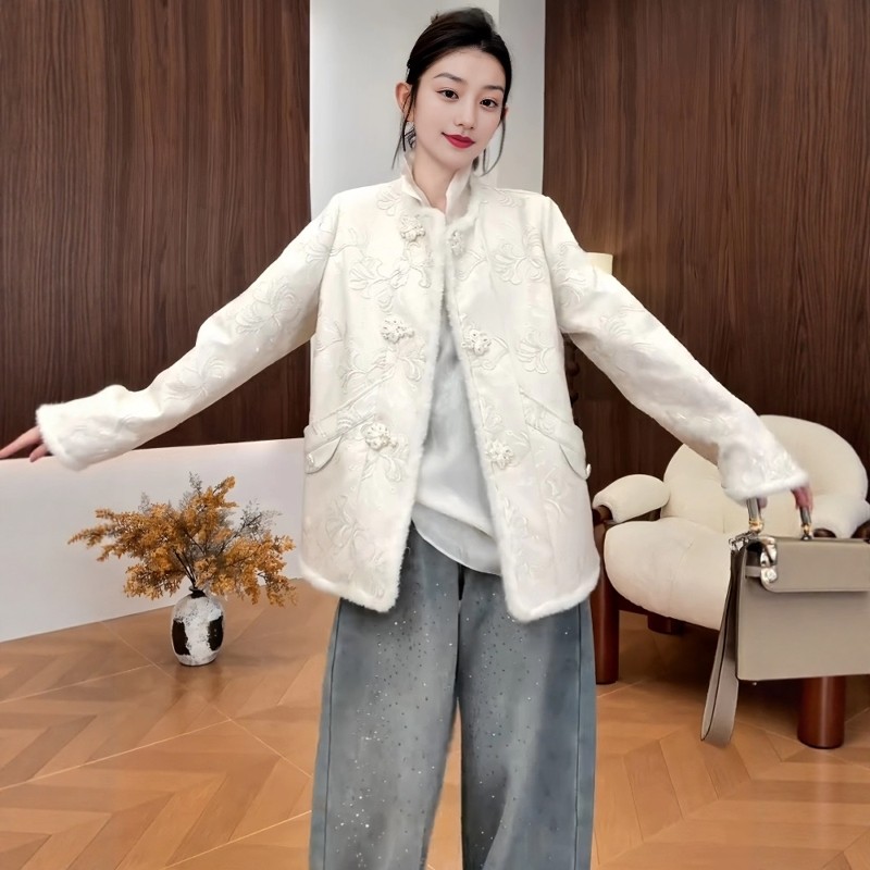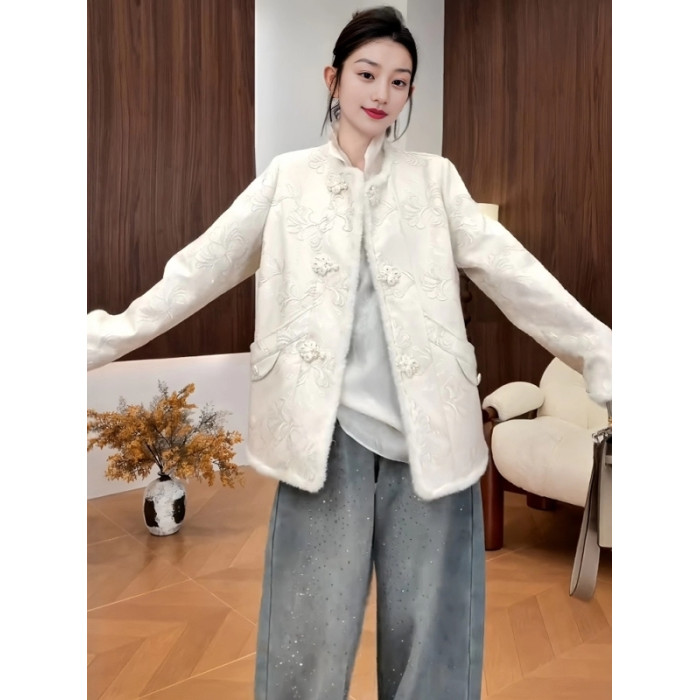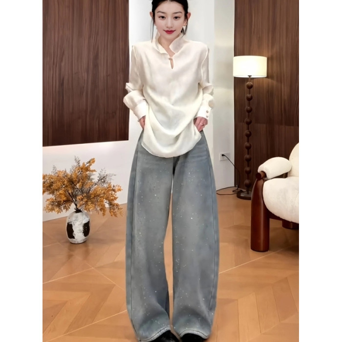 大碼新中式國風旗袍領一粒釦長袖襯衫女早春新款胖mm顯瘦打底上衣