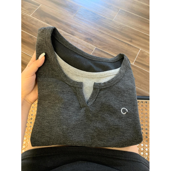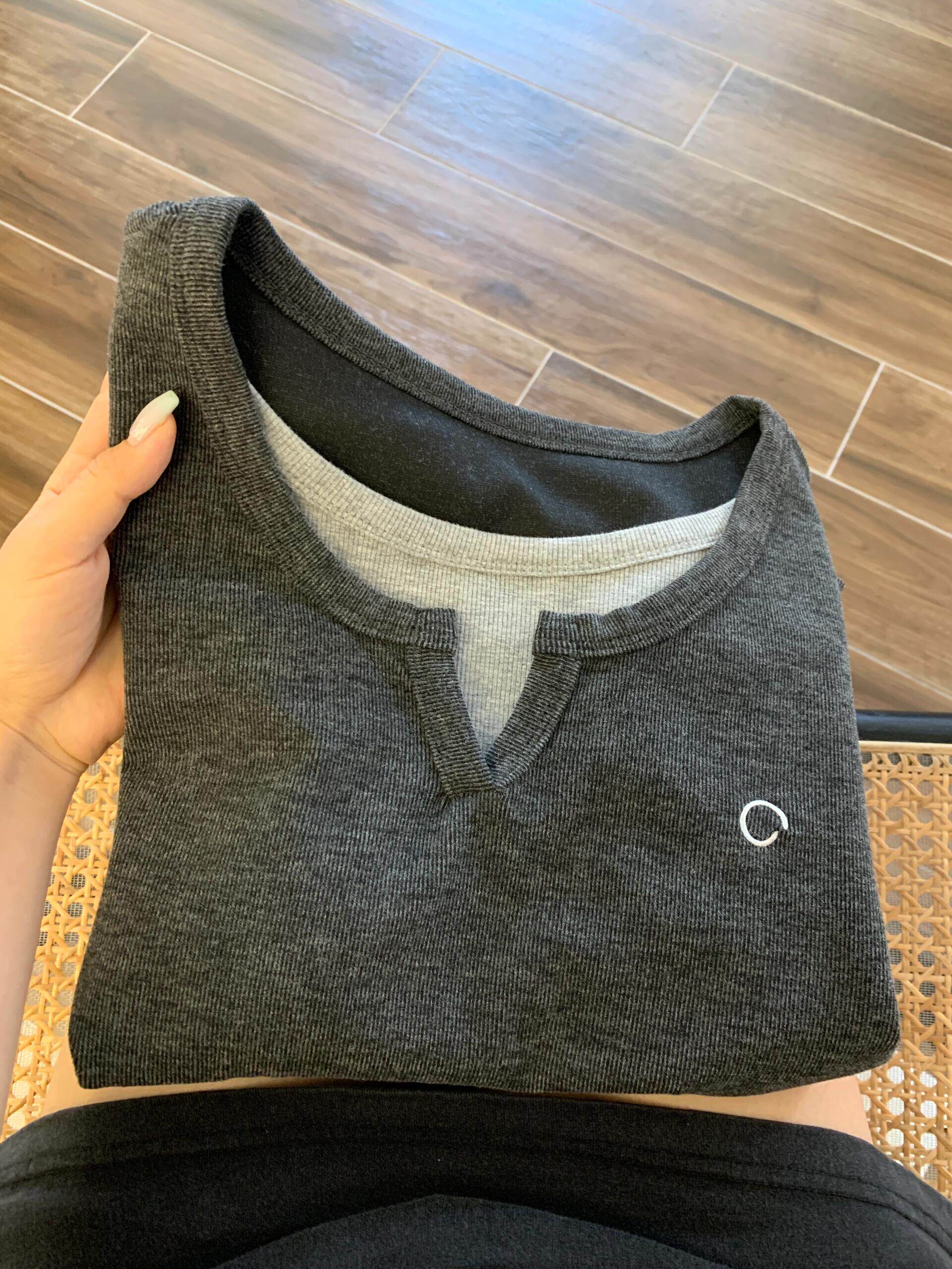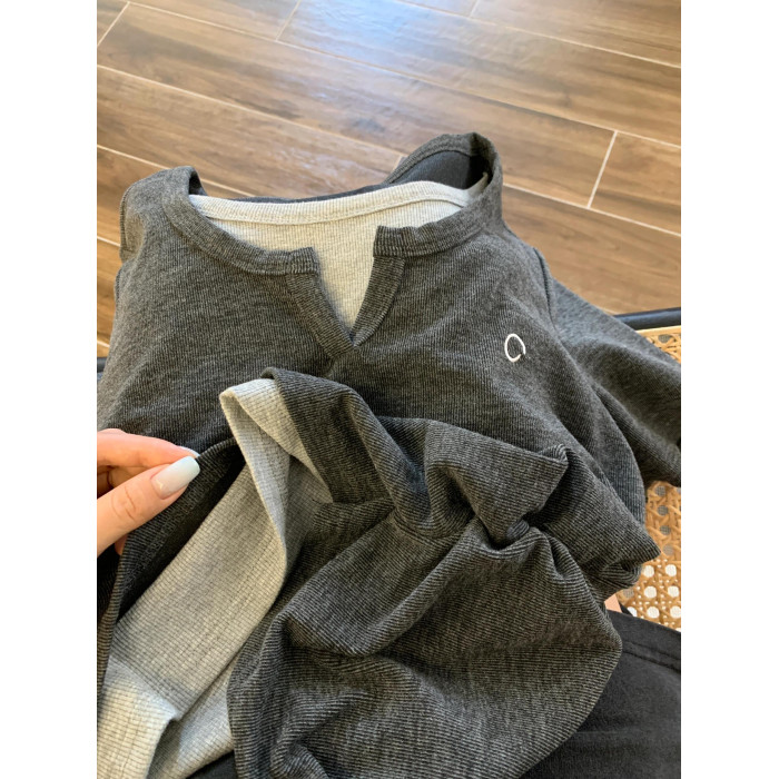 好韓系呀!尊滴好好看呀!假兩件正肩長袖上衣秋季側邊收腰小心機