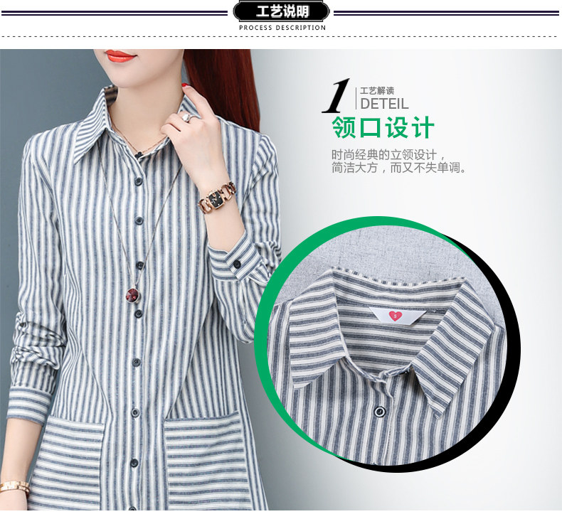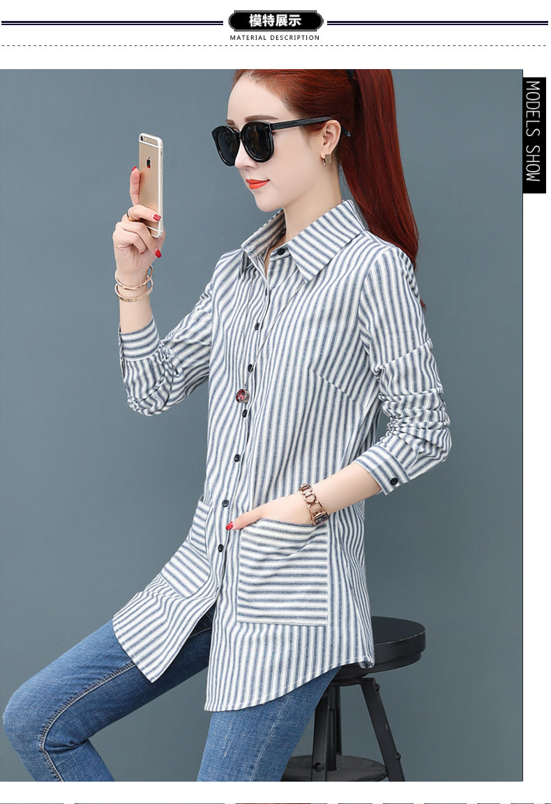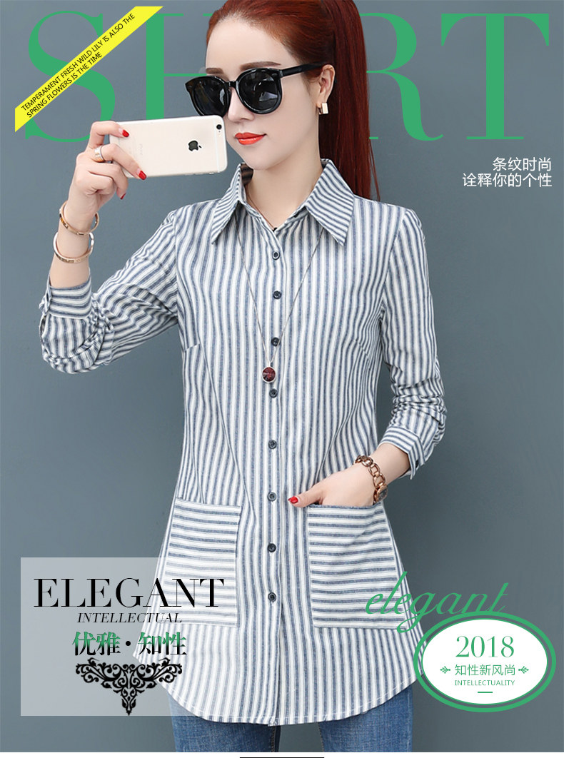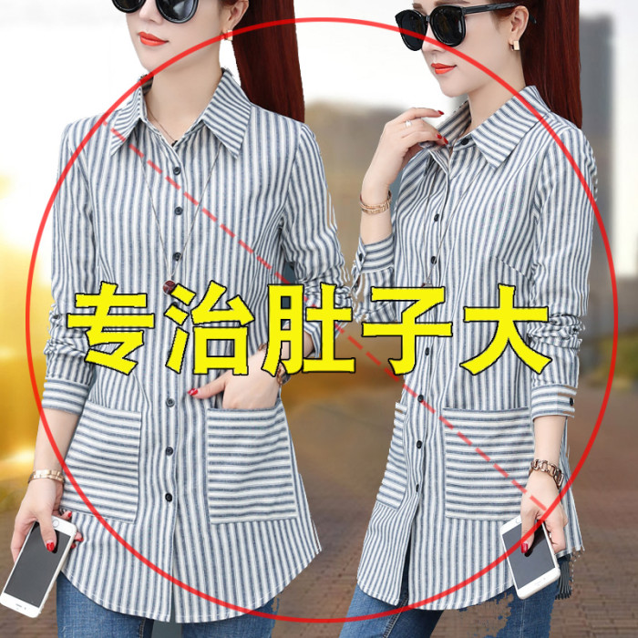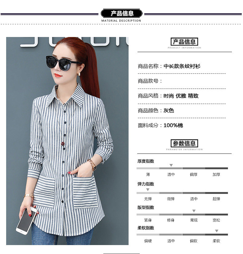 襯衫女春秋長袖條紋2026新款洋氣輕熟設計感小衆中長款全棉白襯衣