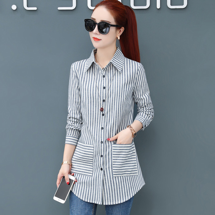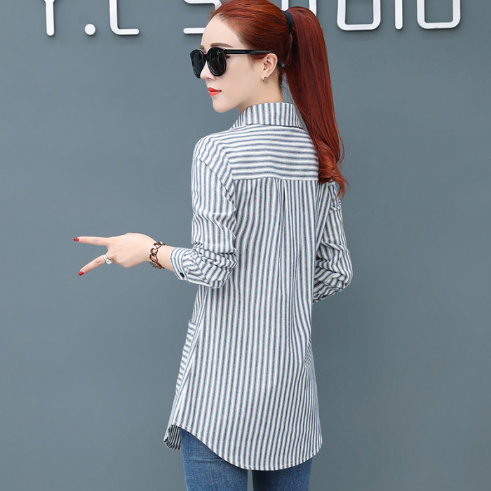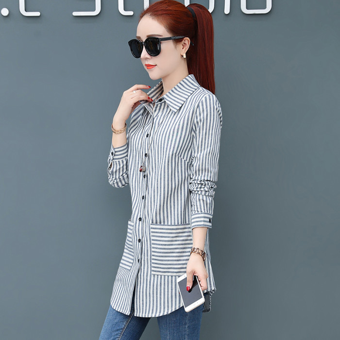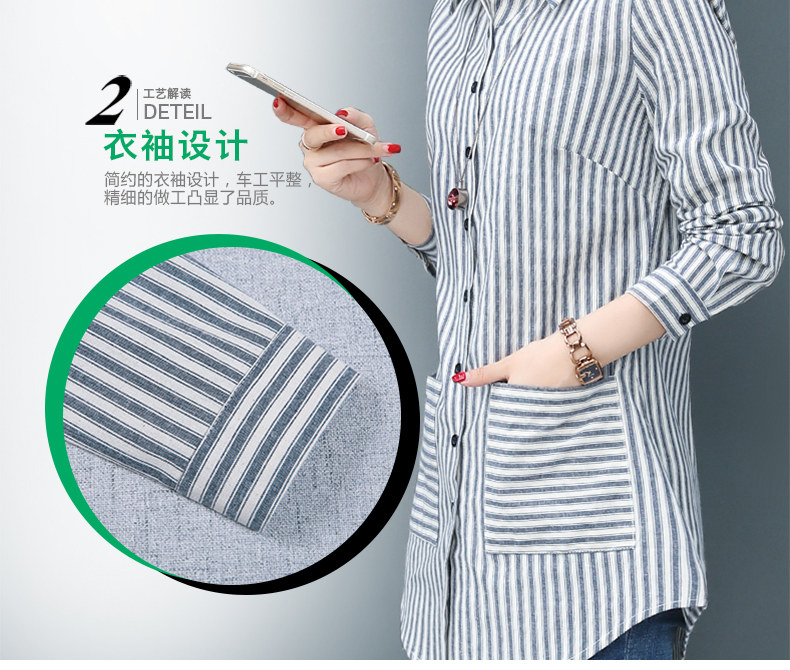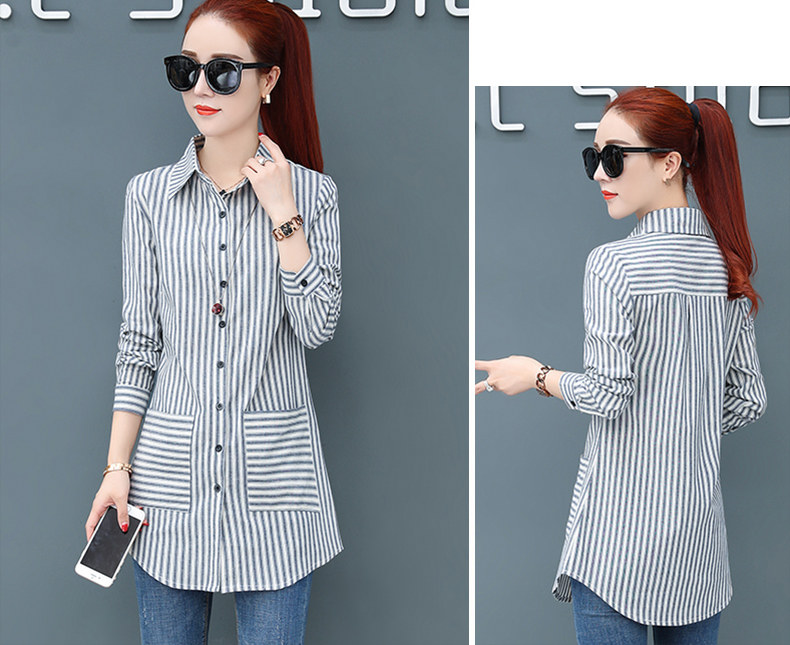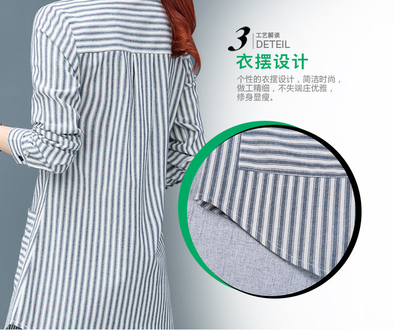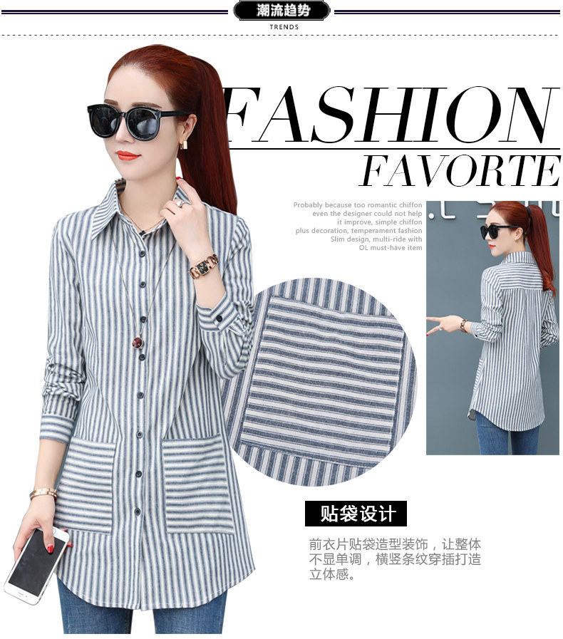 襯衫女春秋長袖條紋2026新款洋氣輕熟設計感小衆中長款全棉白襯衣