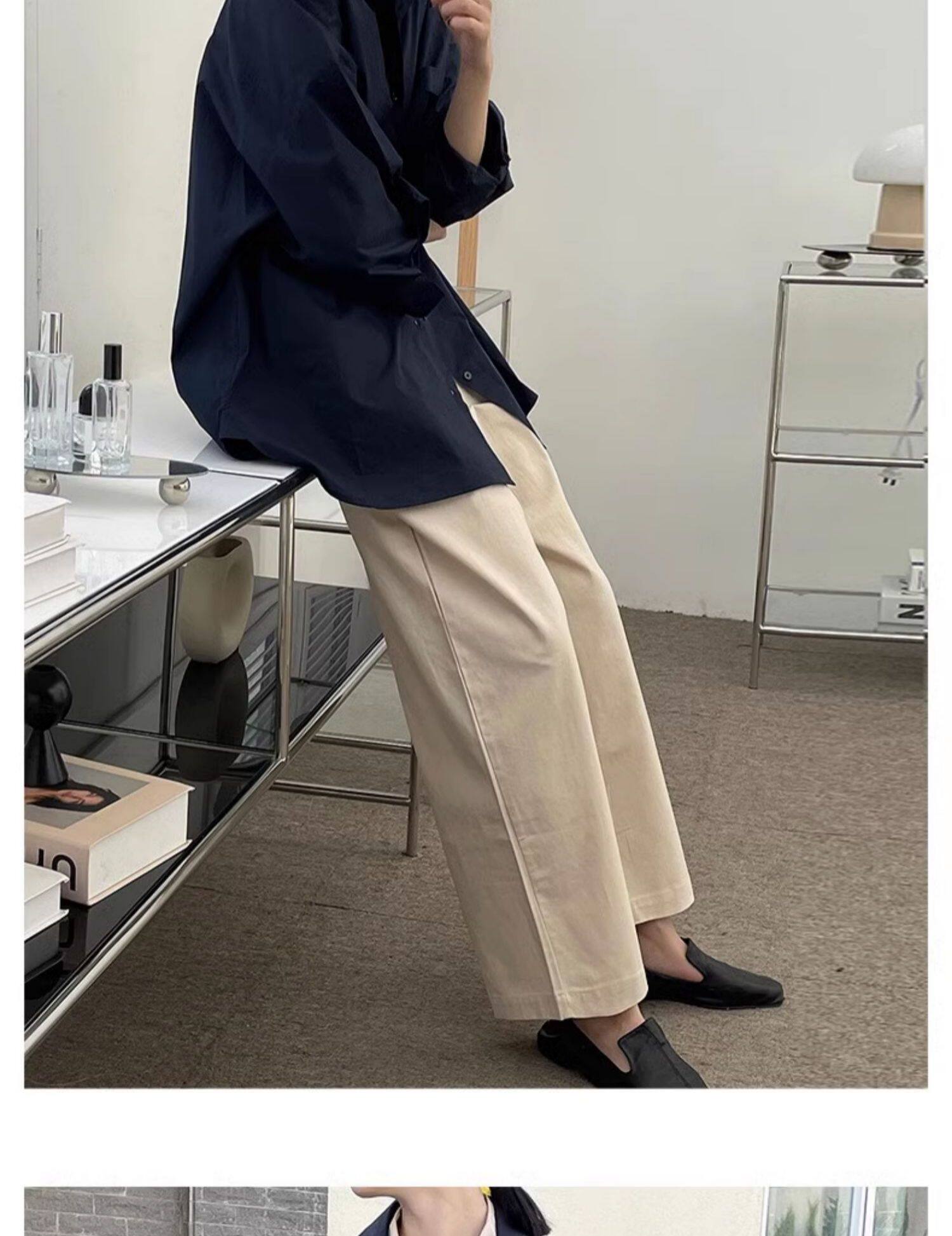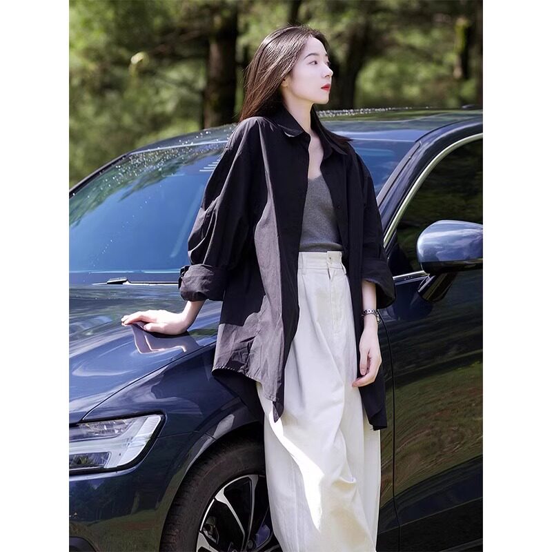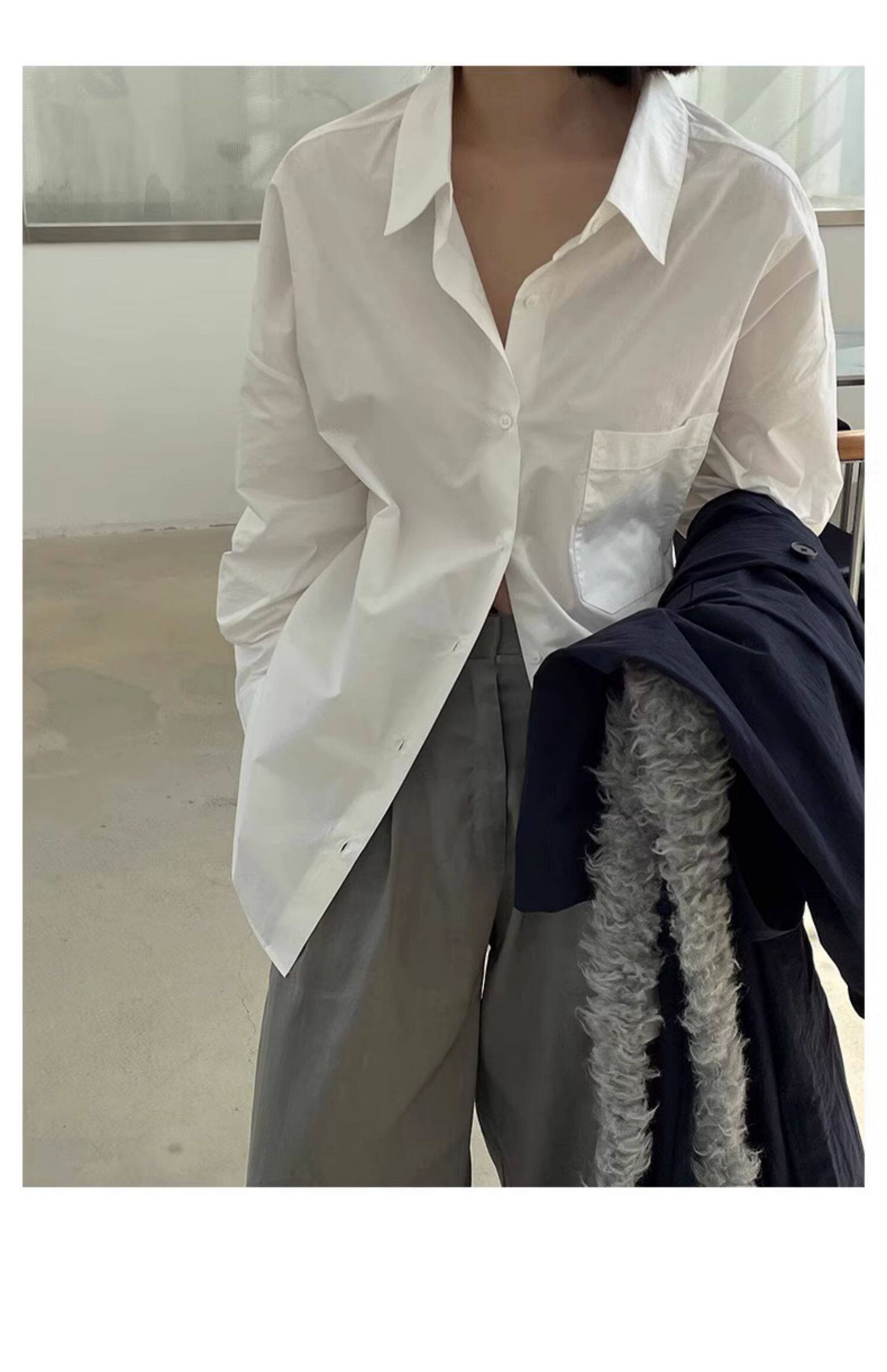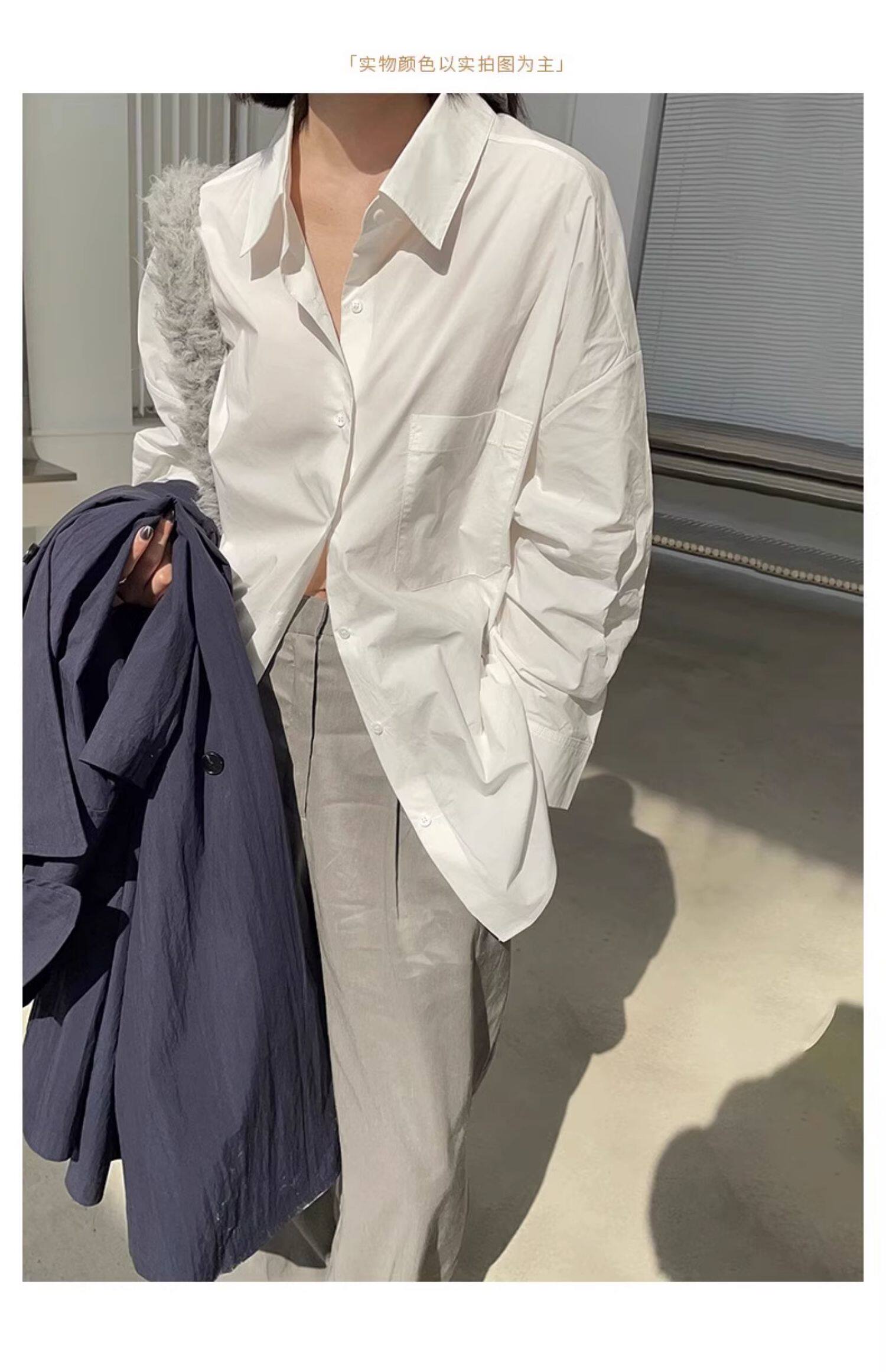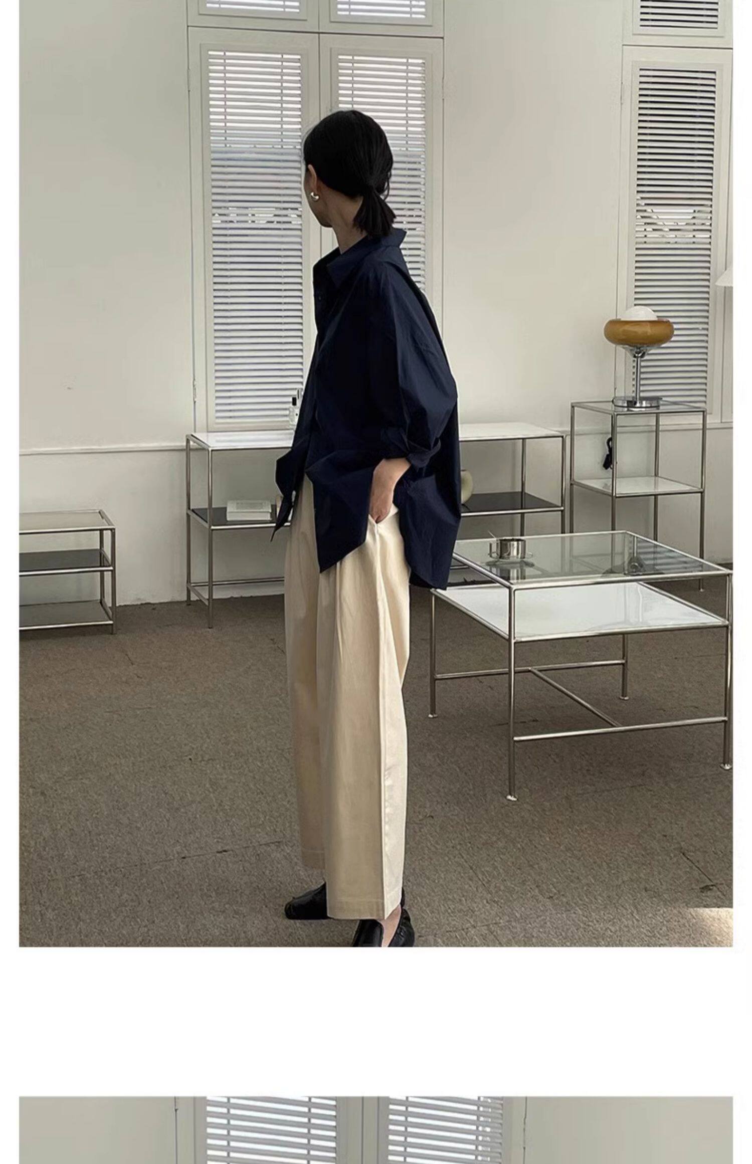 藏藍襯衫外套女慵懶chic韓版春裝寬鬆小衆襯衣廓形設計感休閒上衣
