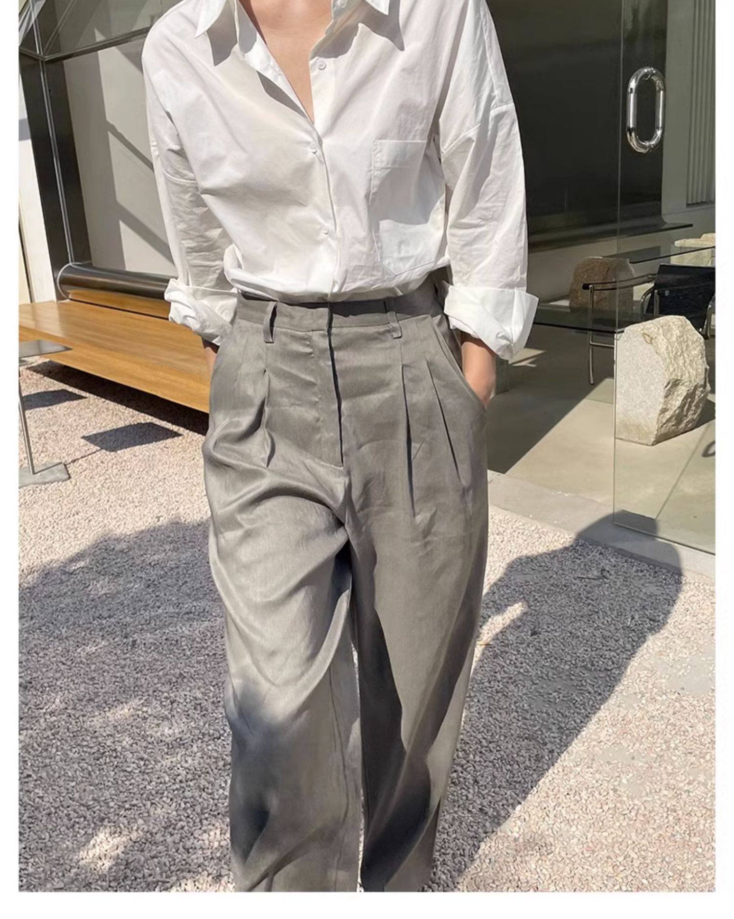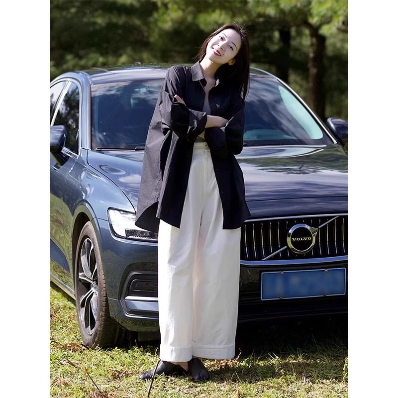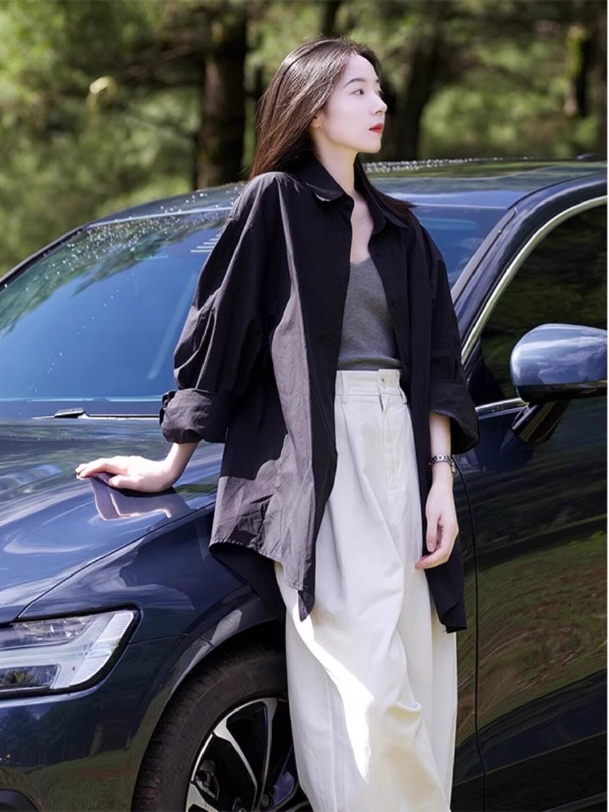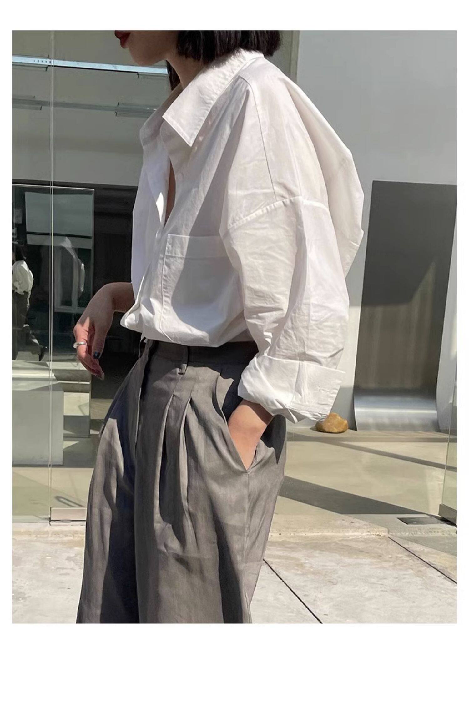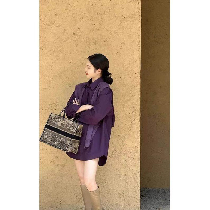 藏藍襯衫外套女慵懶chic韓版春裝寬鬆小衆襯衣廓形設計感休閒上衣