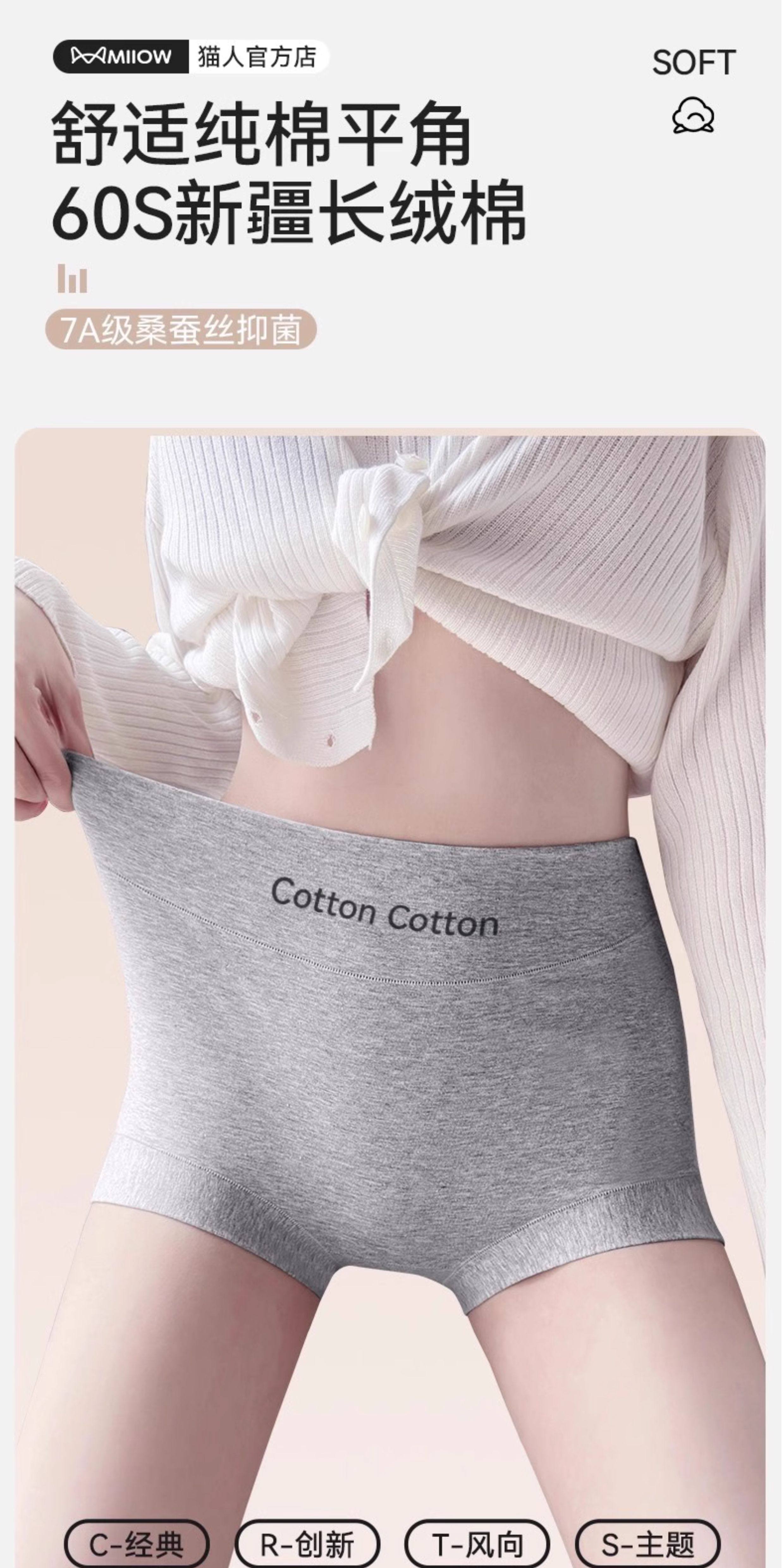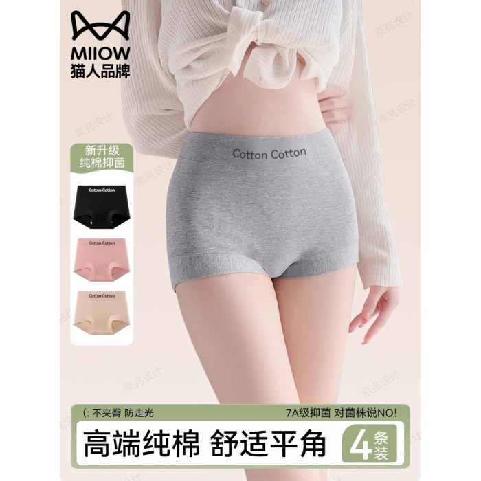 貓人平角內褲女純棉抗菌透氣全棉襠女士小四角女生無痕式2026新款