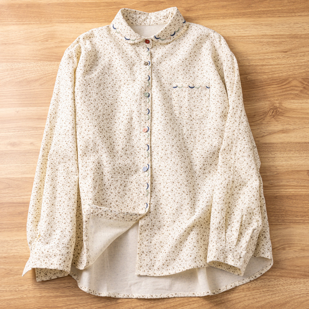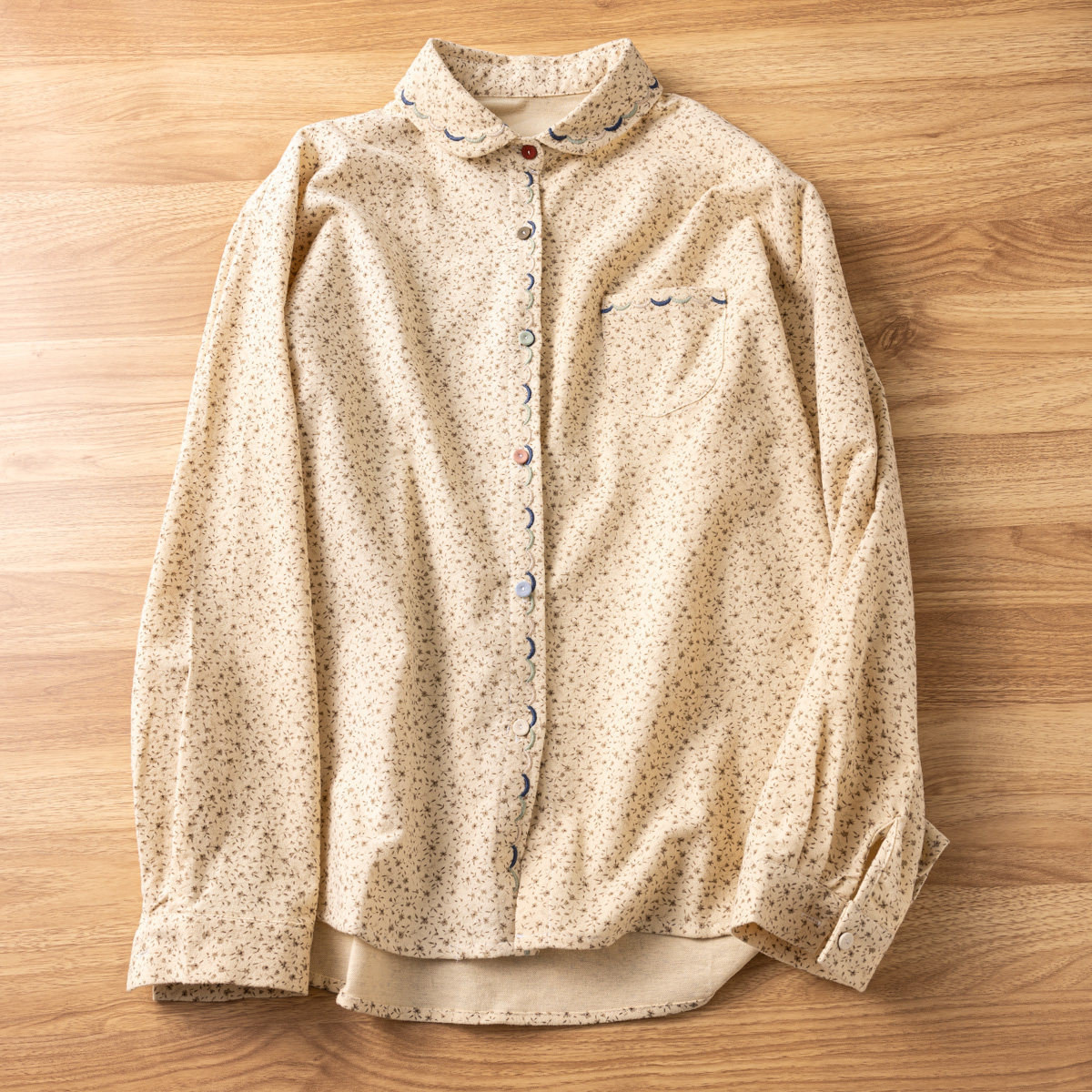 文藝小清新碎花印花磨毛長袖襯衫秋冬新款日系學院風寬鬆曡穿上衣