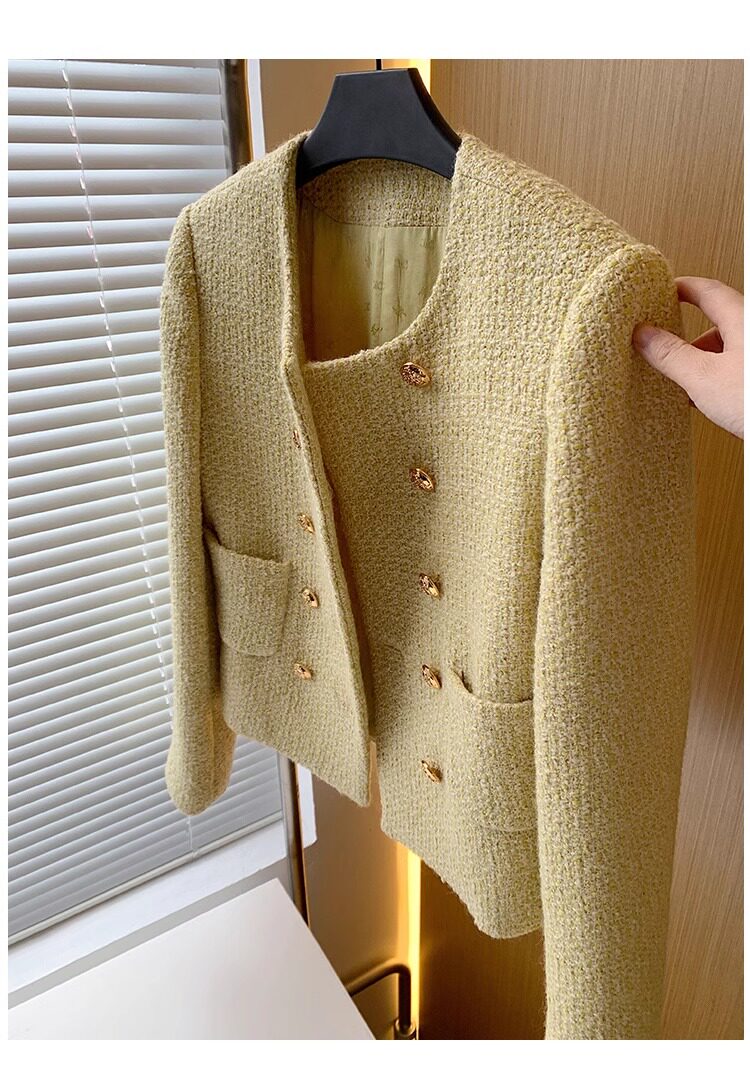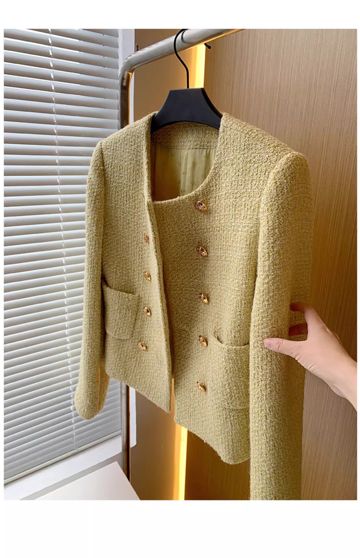 氣質女裝2025年新款秋季時尚法式高級感名媛高級小香風黃色短外套