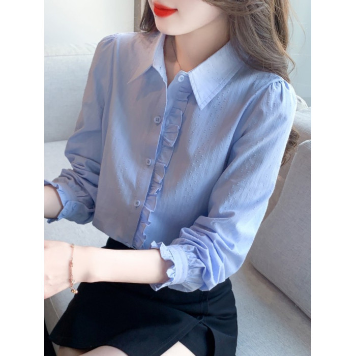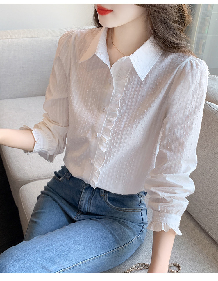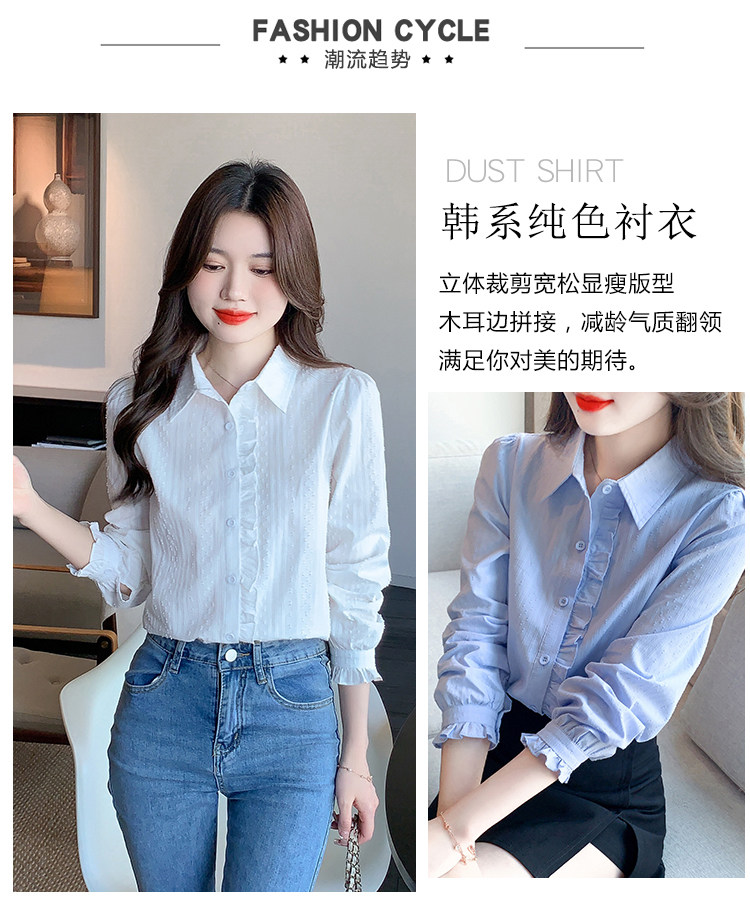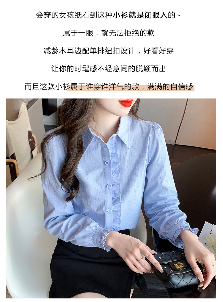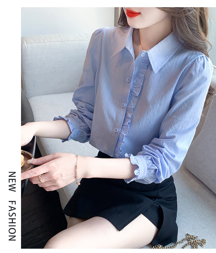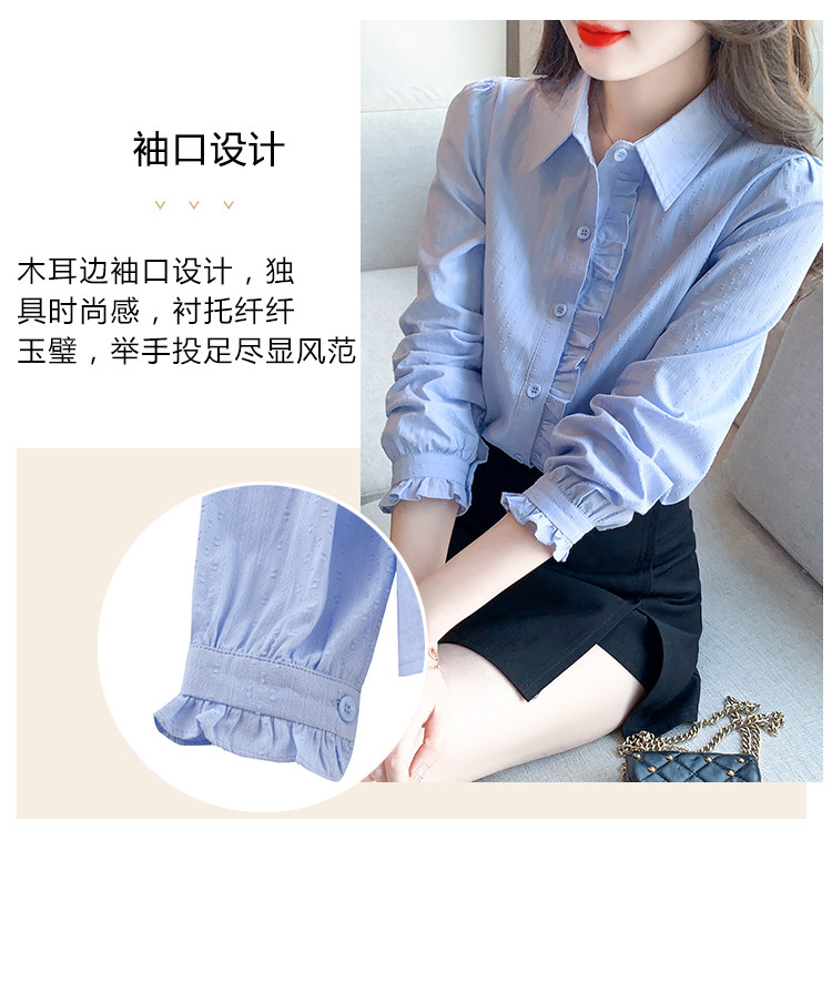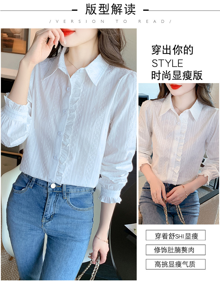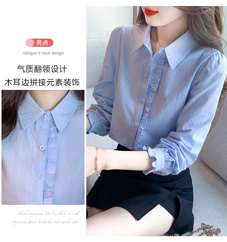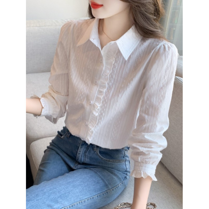 2025年春秋季新款女裝時尚百搭純棉襯衫女洋氣全棉polo領長袖上衣