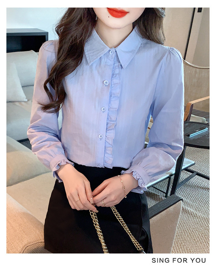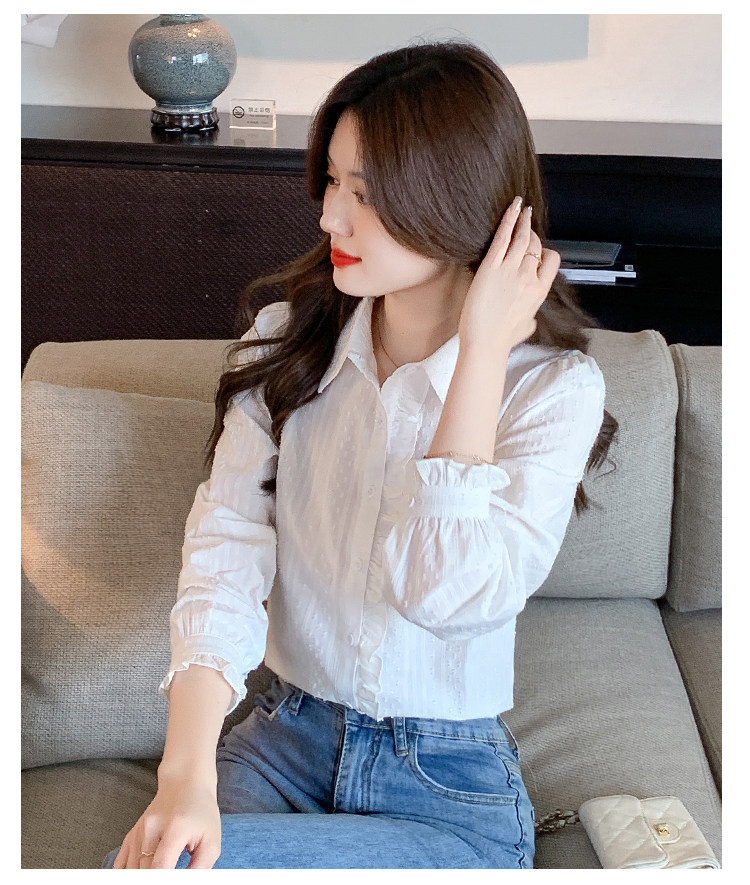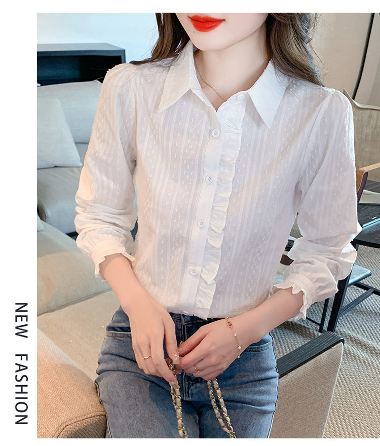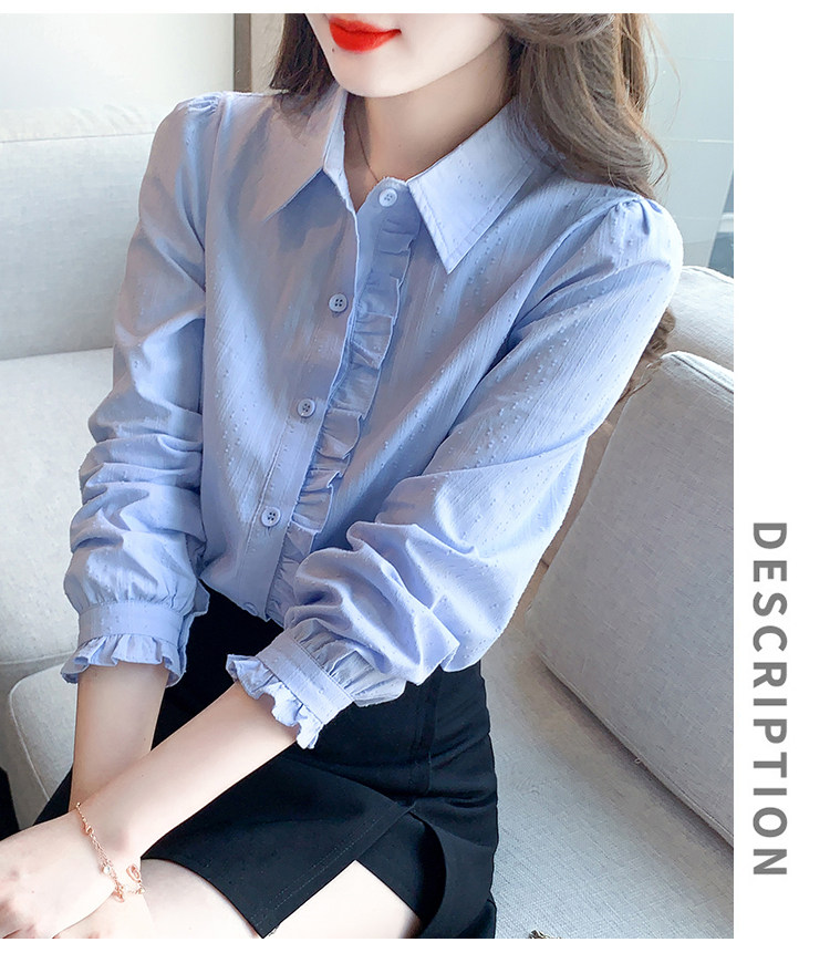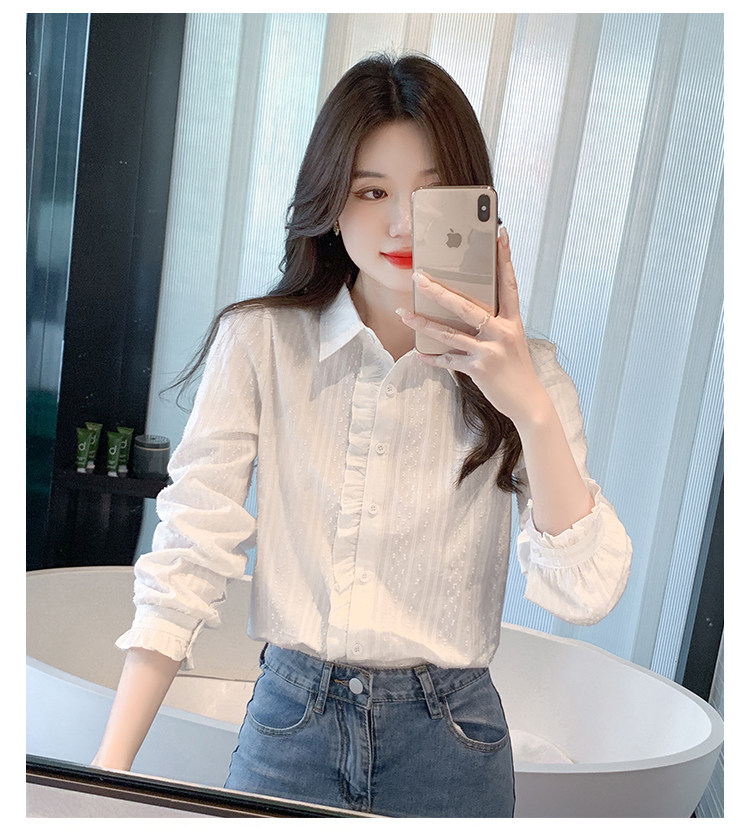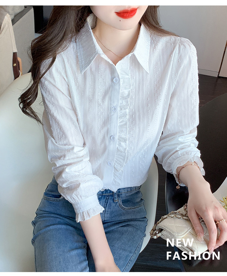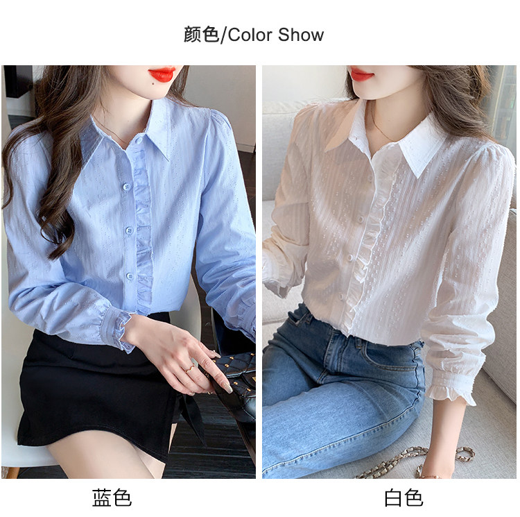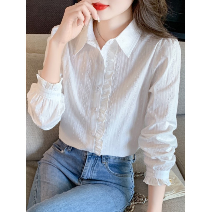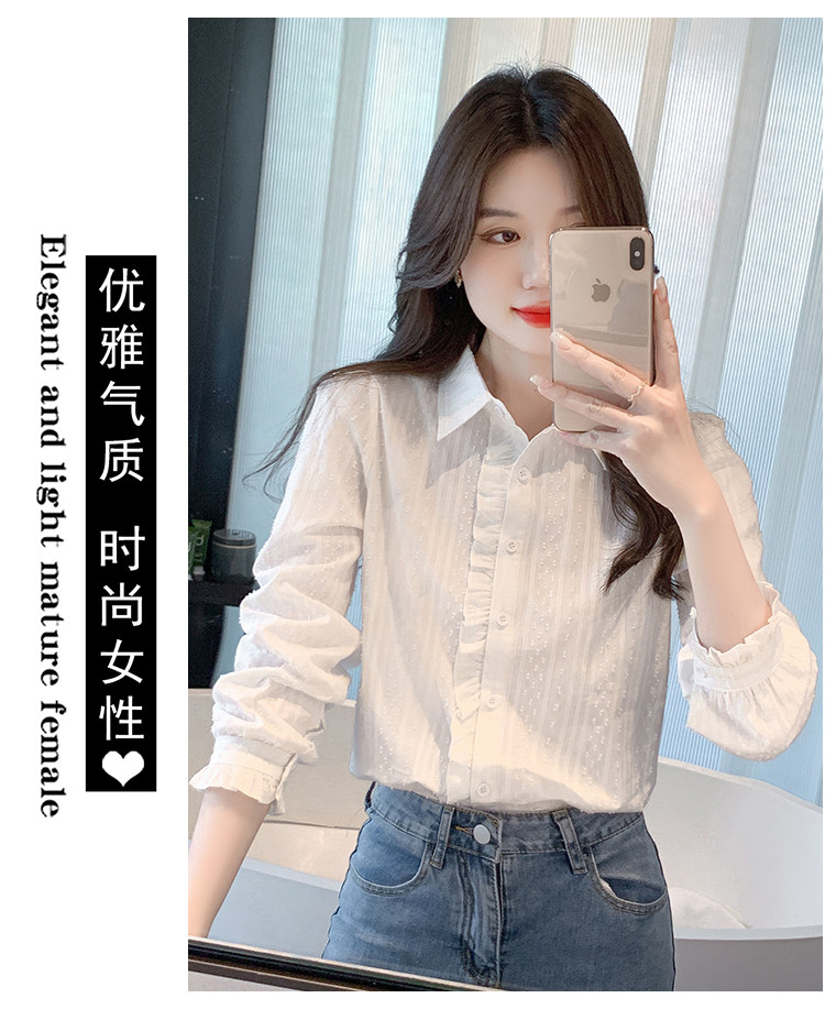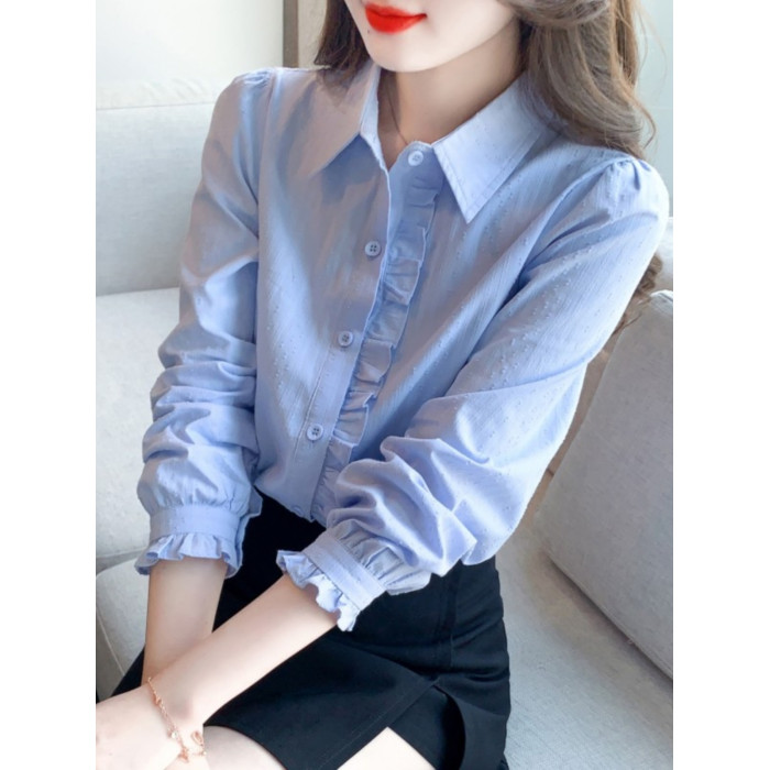 2025年春秋季新款女裝時尚百搭純棉襯衫女洋氣全棉polo領長袖上衣