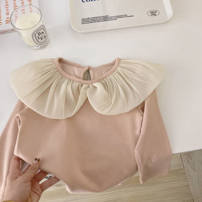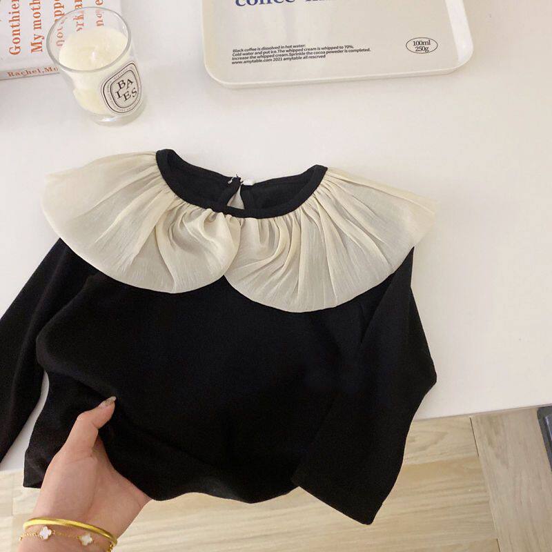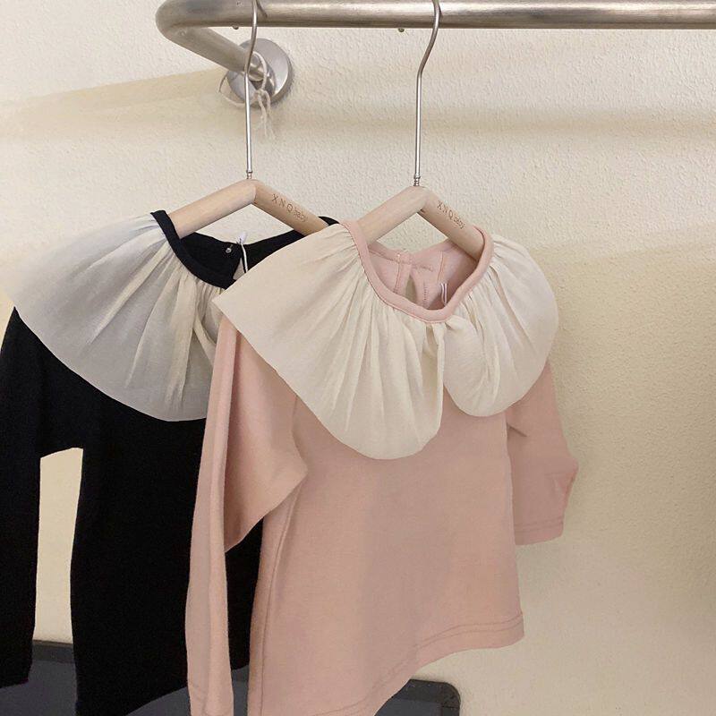 女寶寶花邊領打底衫2025春秋薄款長袖上衣小女孩甜美韓版彈力T恤