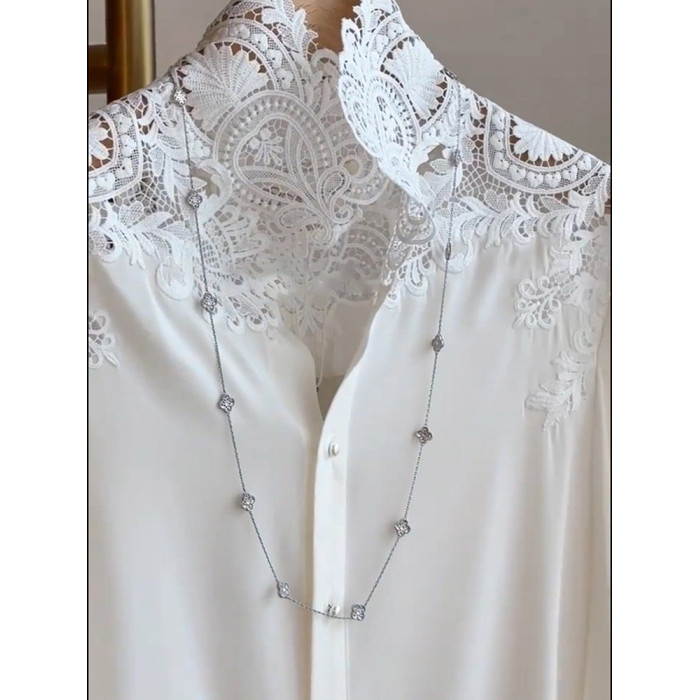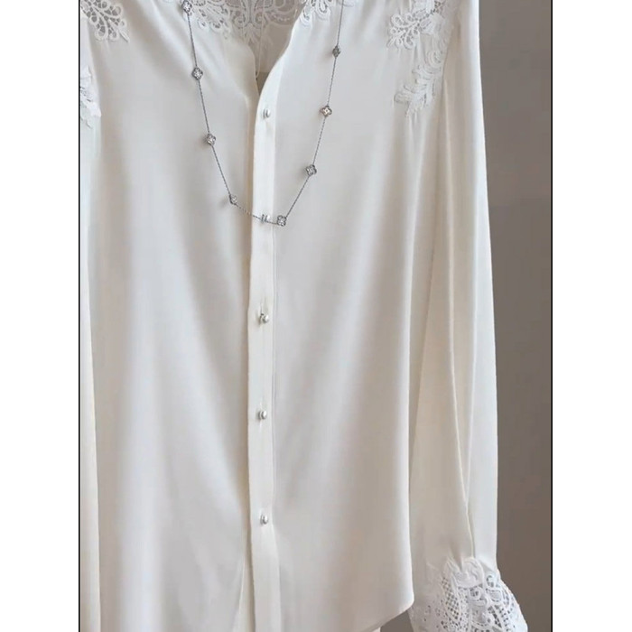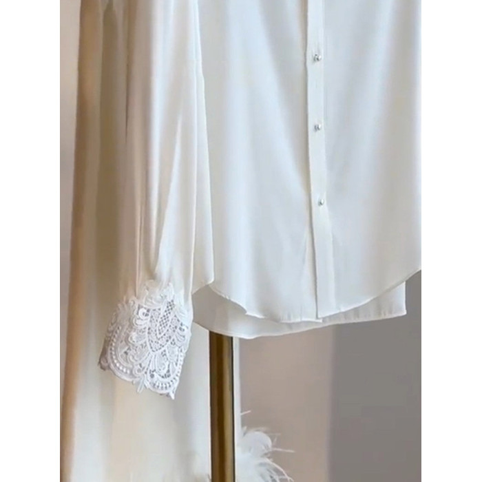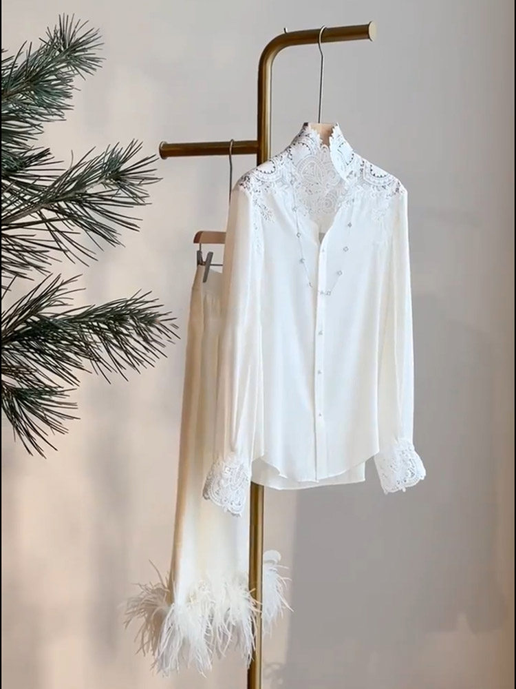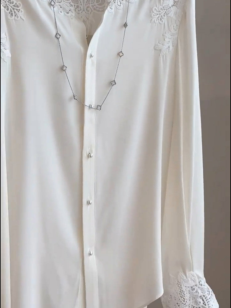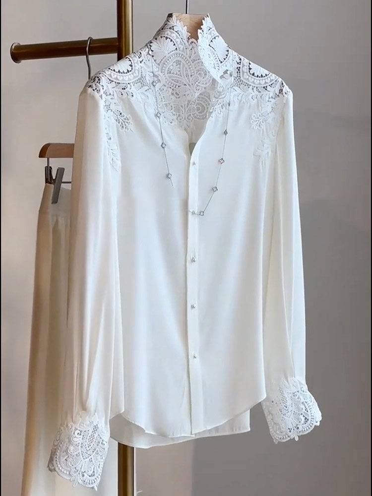 氣質休閒蕾絲立領白色襯衫2025新款優雅寬鬆洋氣顯瘦襯衣時髦上衣