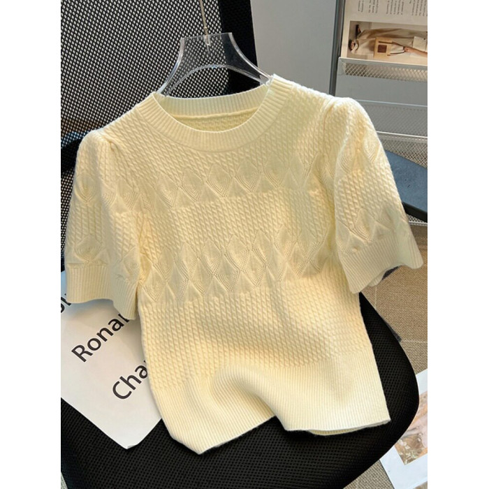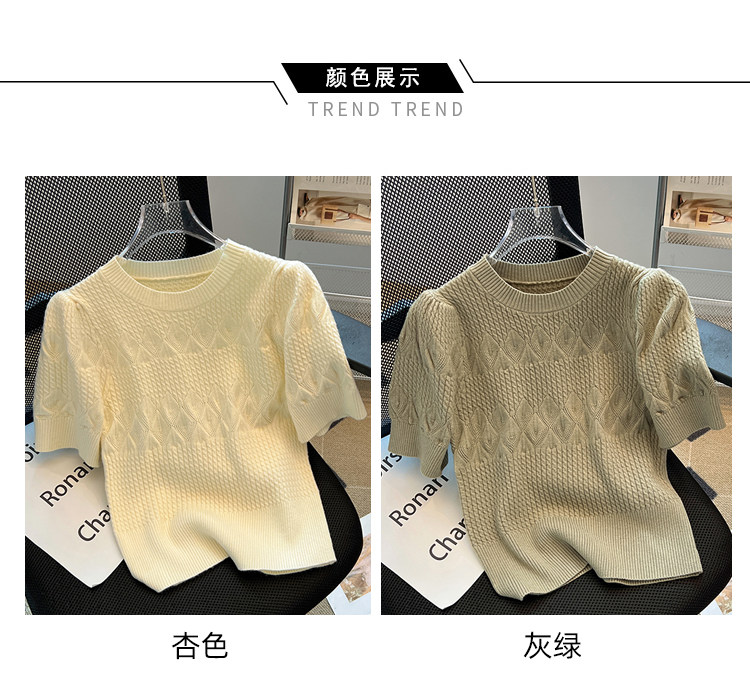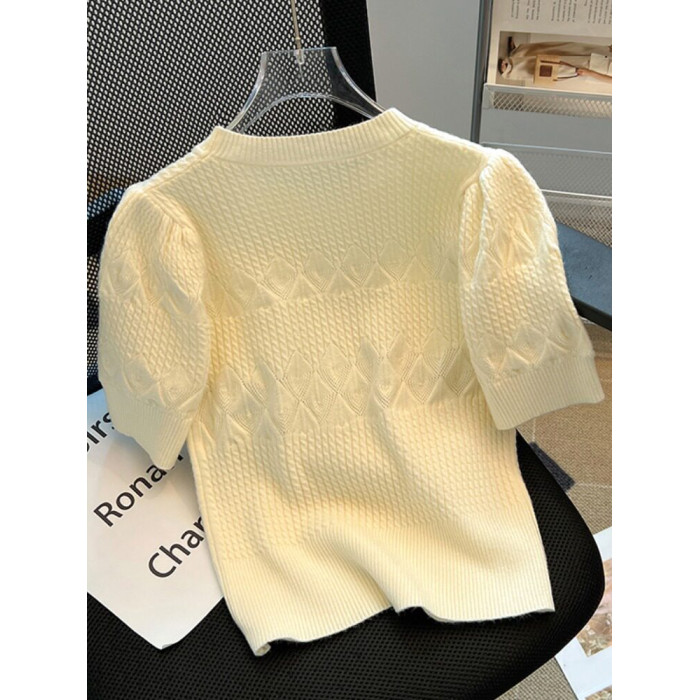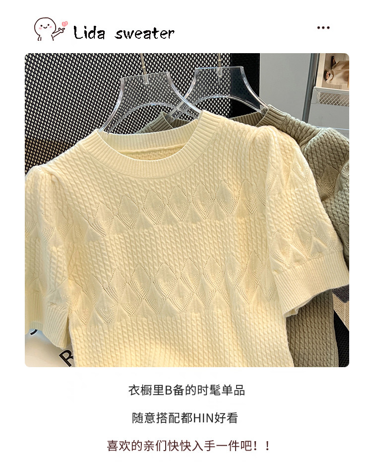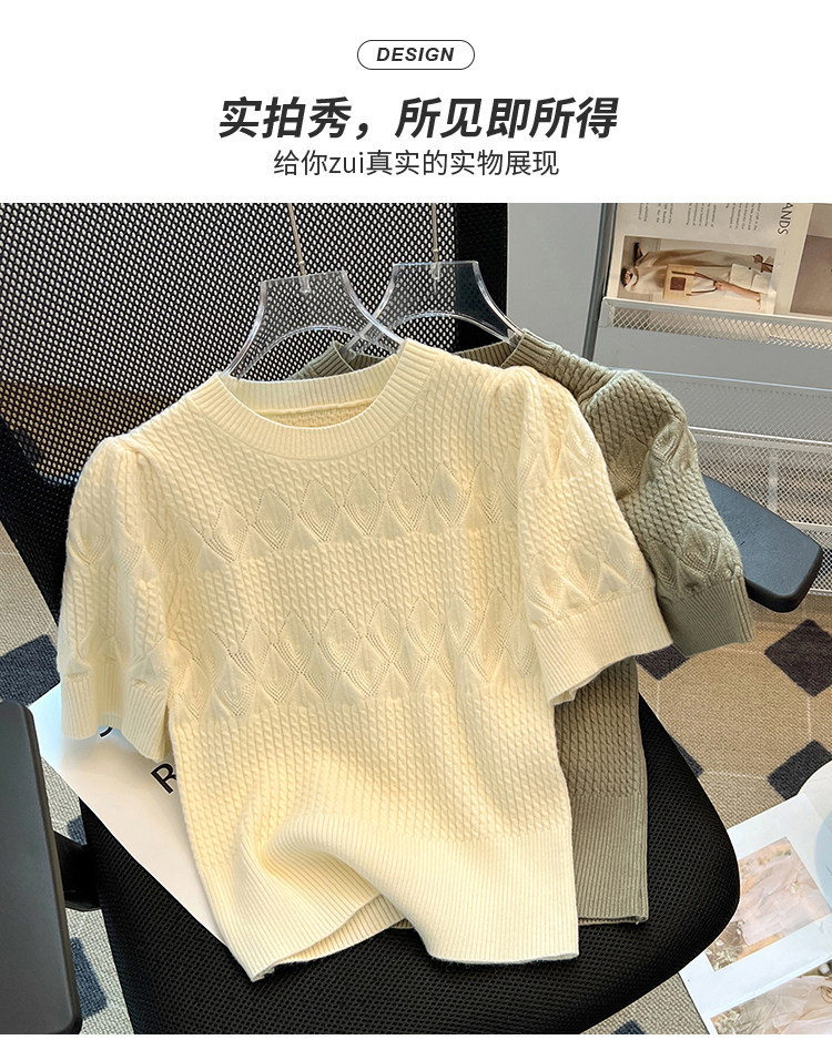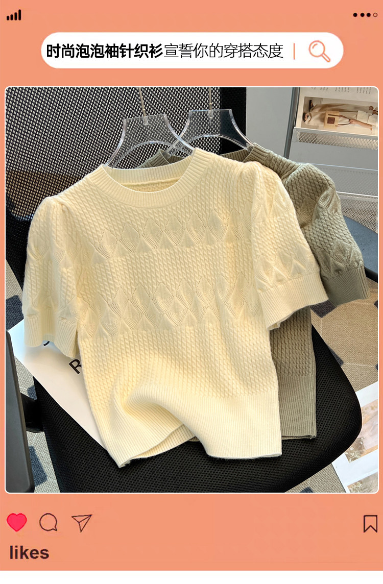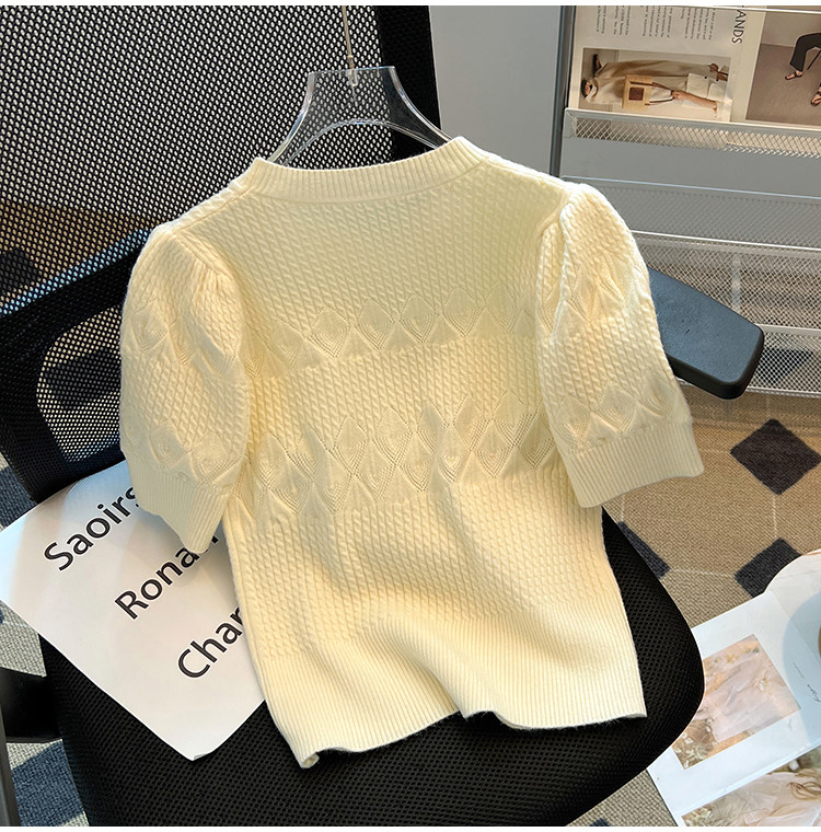 清倉撿漏~專櫃夏季法式泡泡短袖圓領針織T恤女洋氣短款小上衣