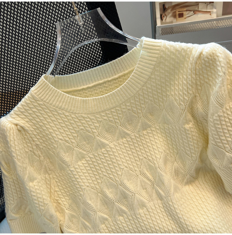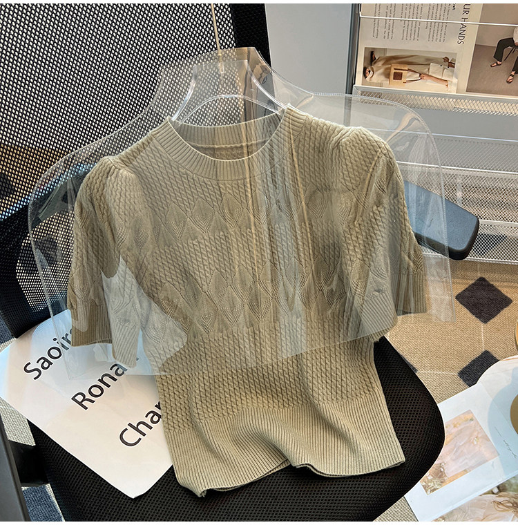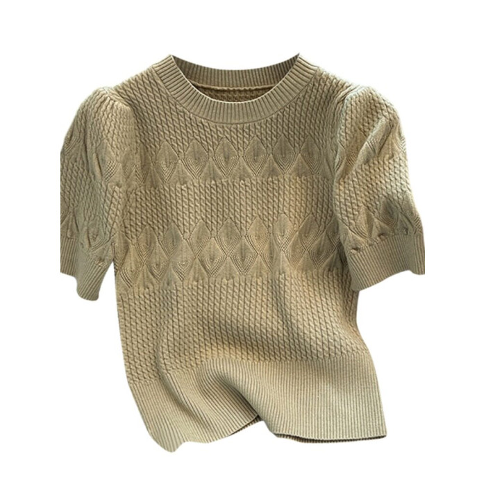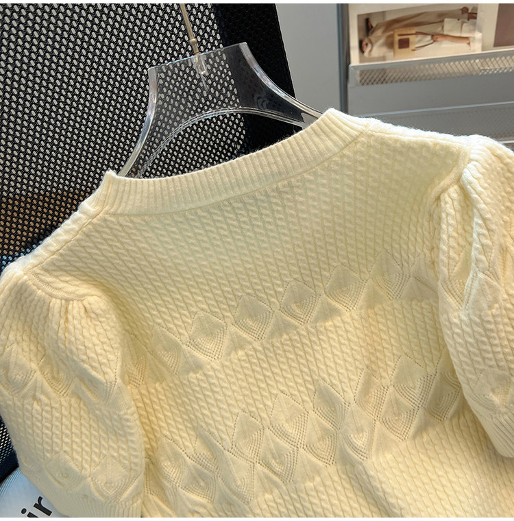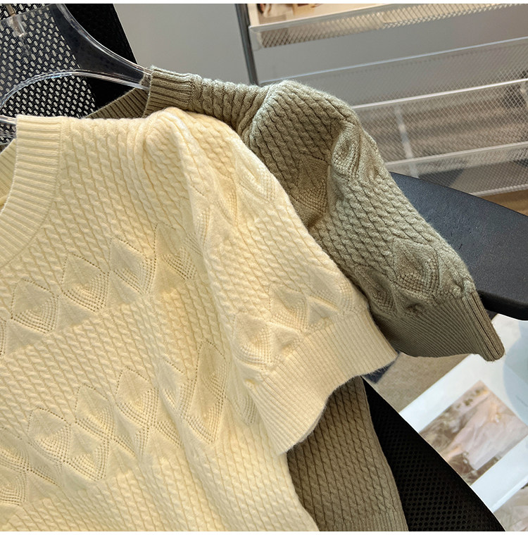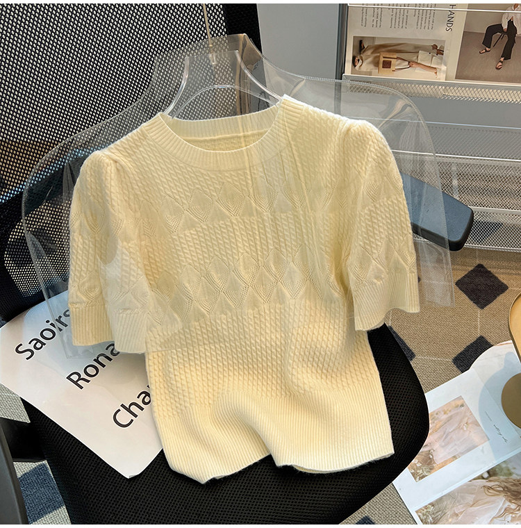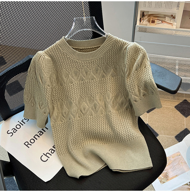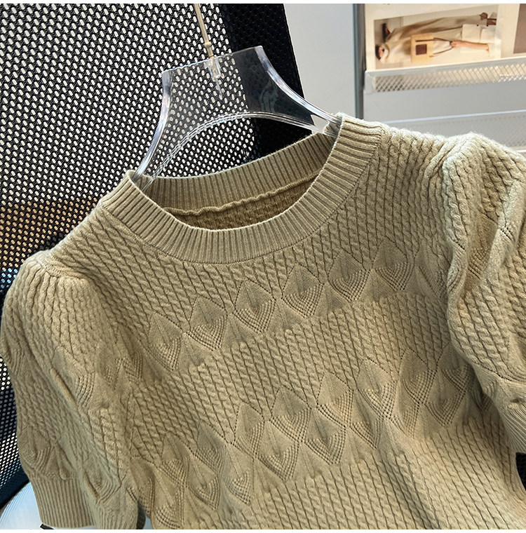 清倉撿漏~專櫃夏季法式泡泡短袖圓領針織T恤女洋氣短款小上衣