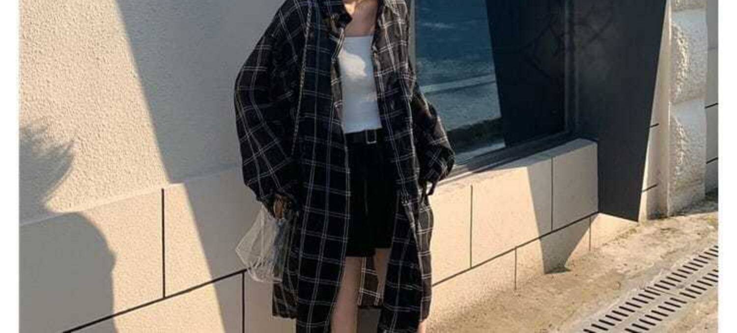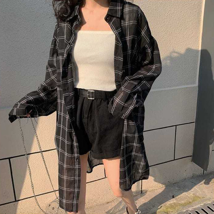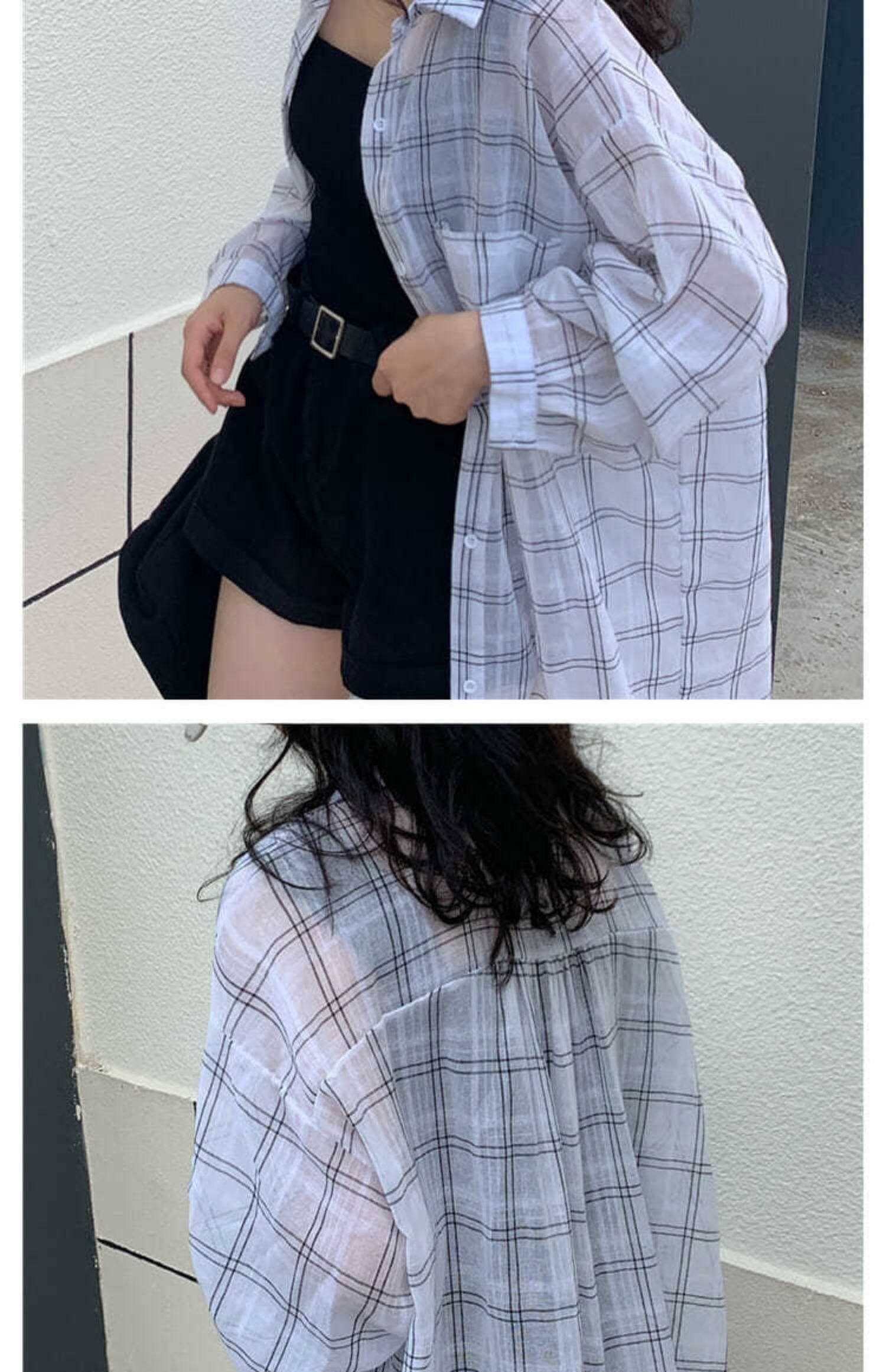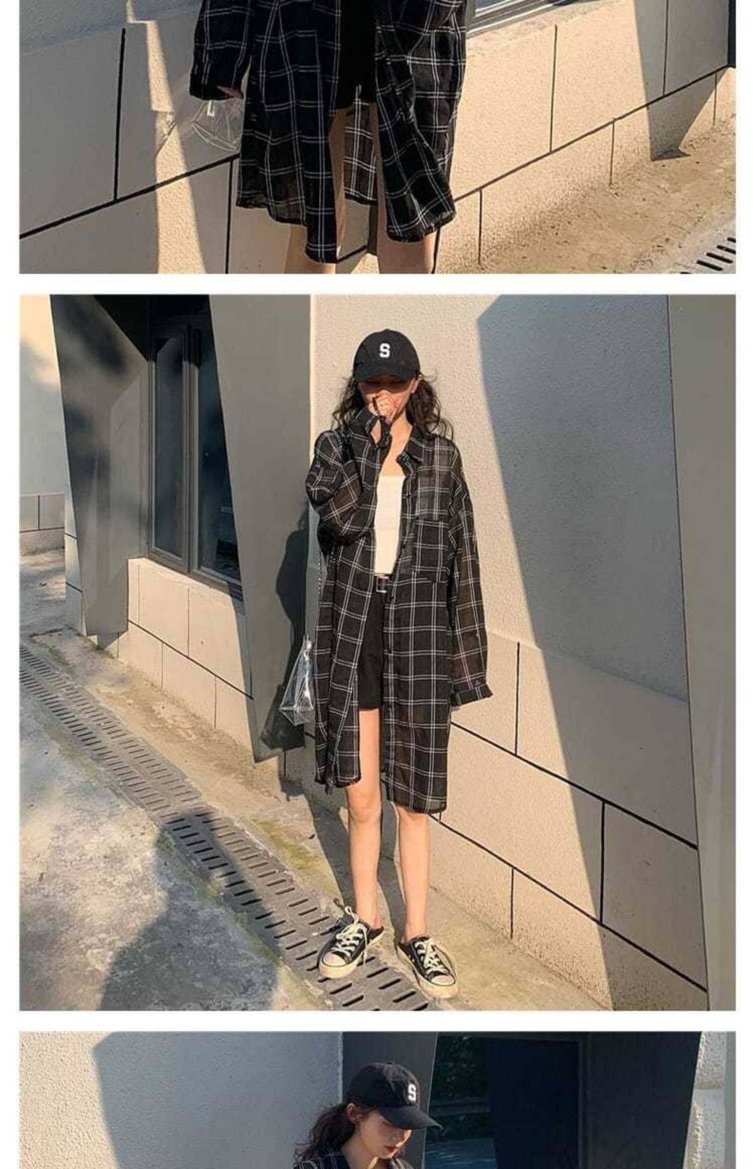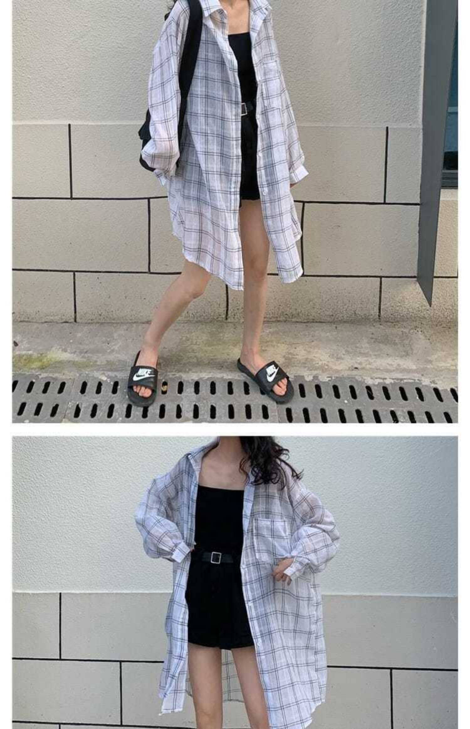特大碼300斤慵懶風學生中長款格子衫女胖mm寬鬆復古薄款防曬衣ins
