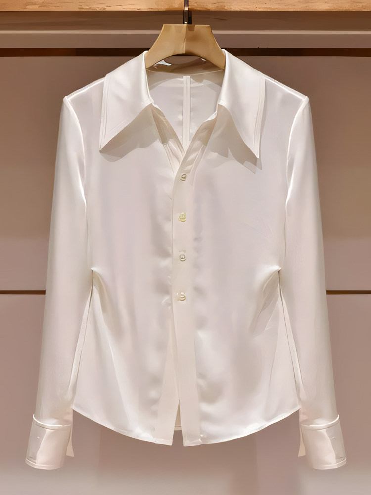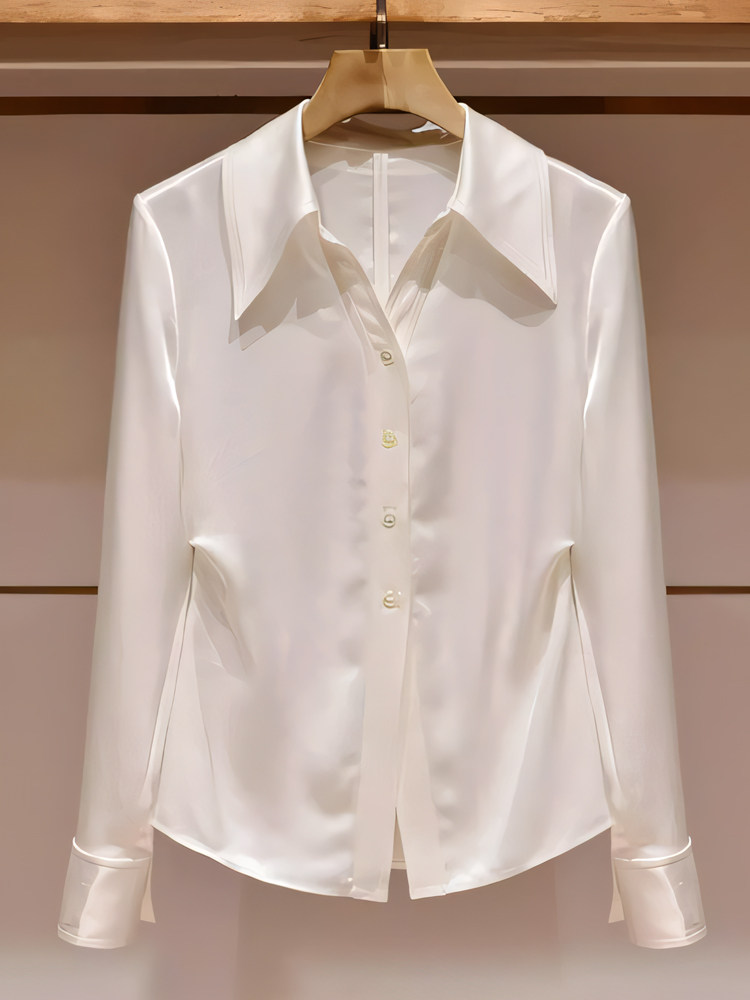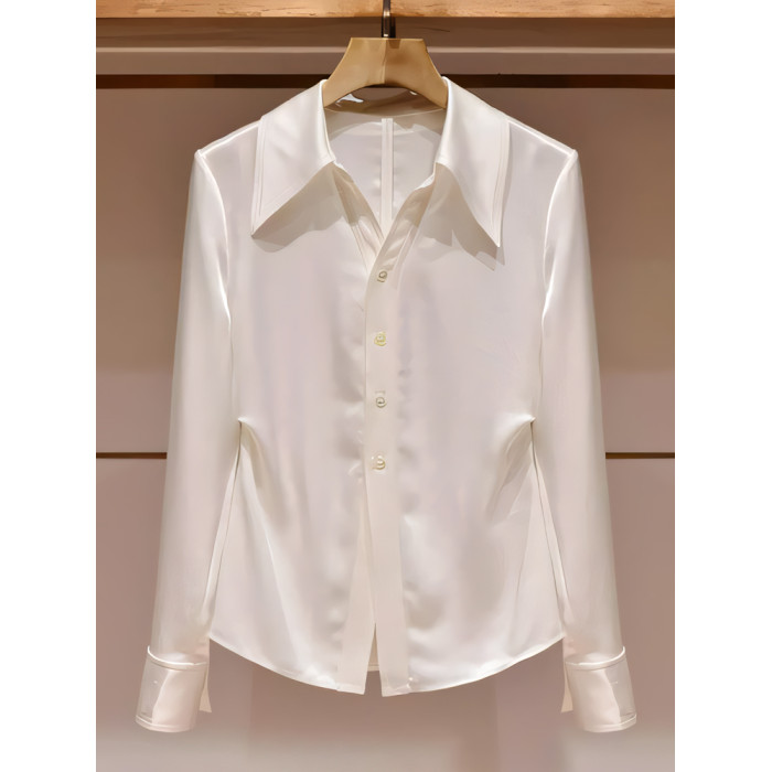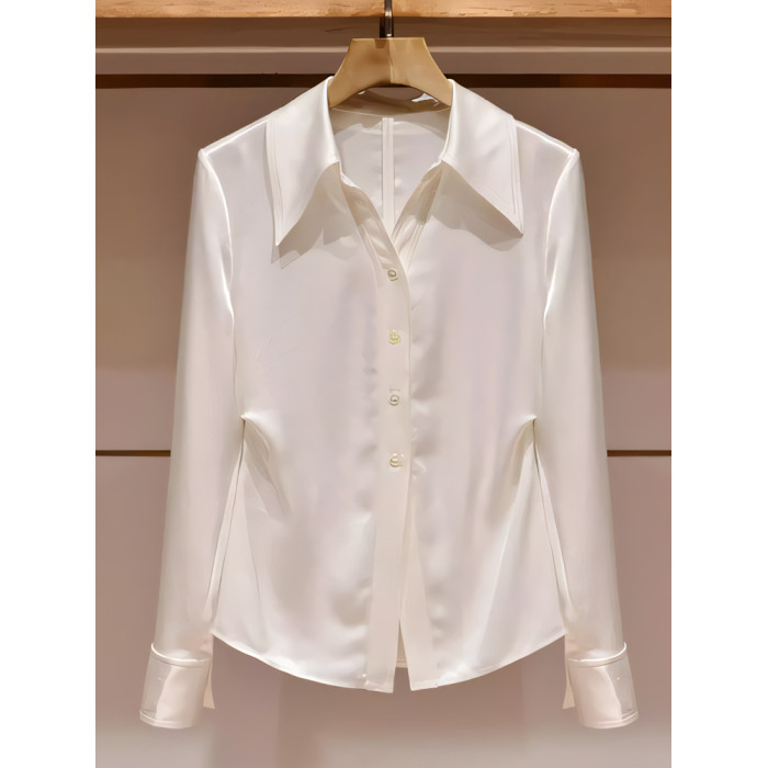 韓系氣質輕奢絕美白色繙領長袖襯衫女秋季款獨特百搭超好看小上衣