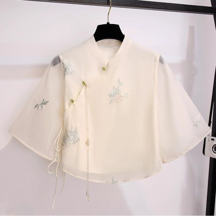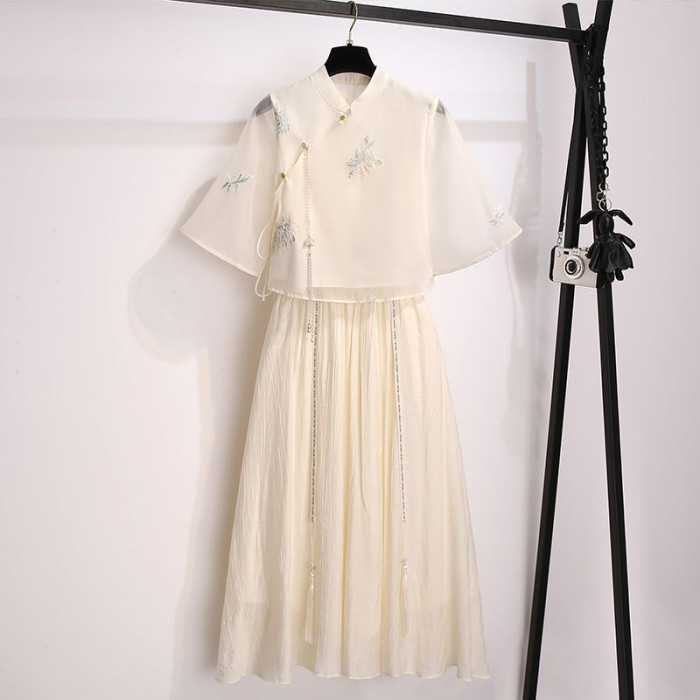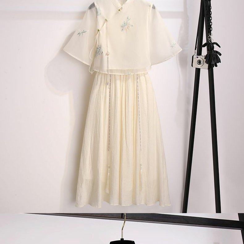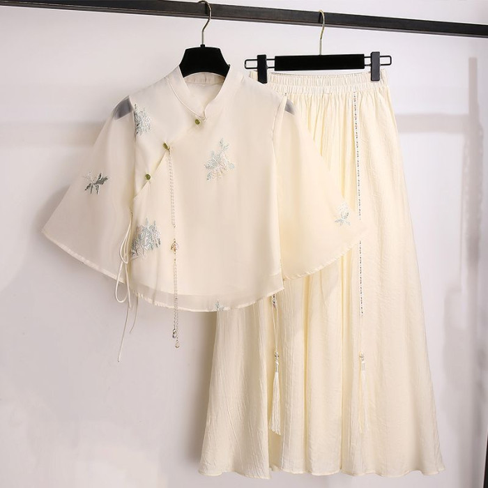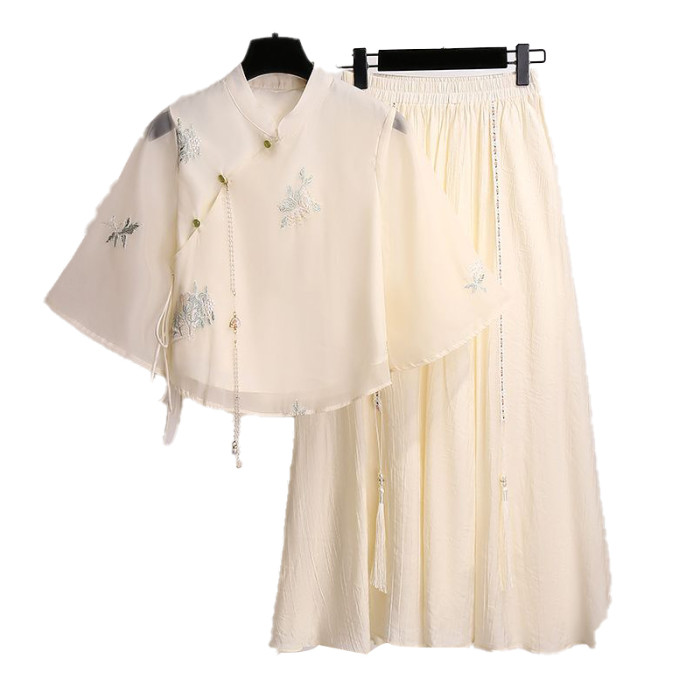 新中式國風設計別致漂亮雪紡襯衫女春秋季新款顯瘦漢服a字半身裙