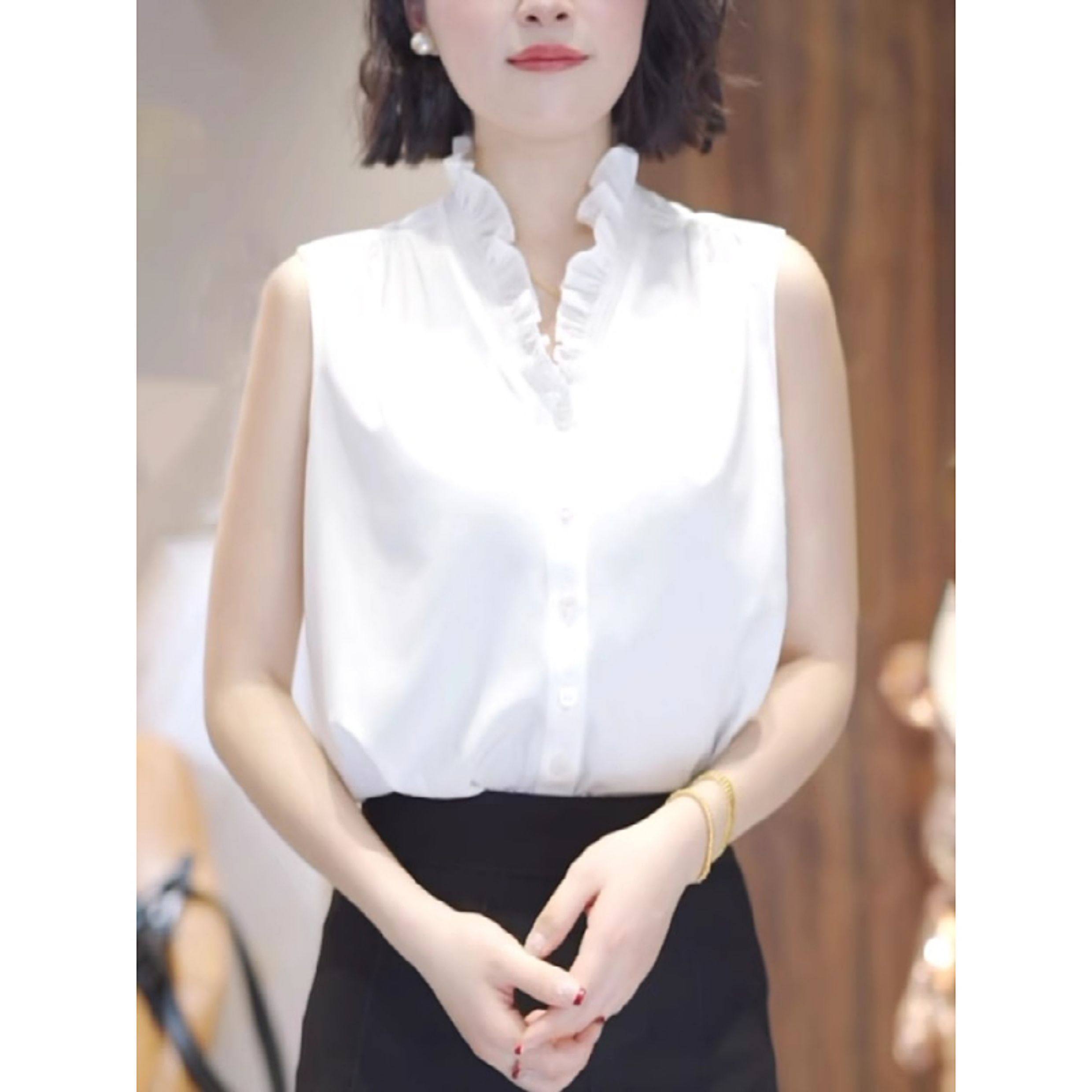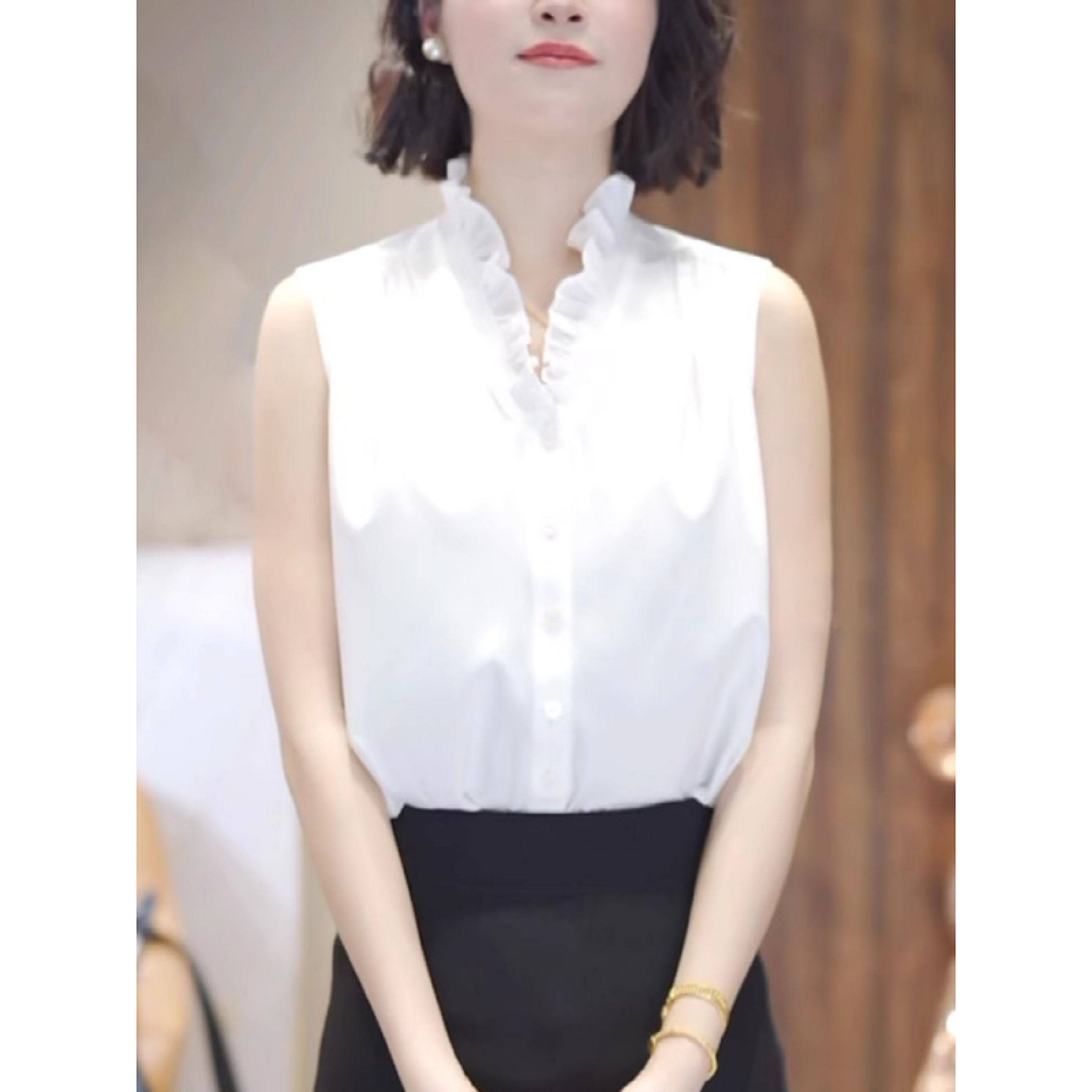 法式白色襯衫女士大碼胖MM夏季設計感洋氣減齡木耳邊v領無袖上衣