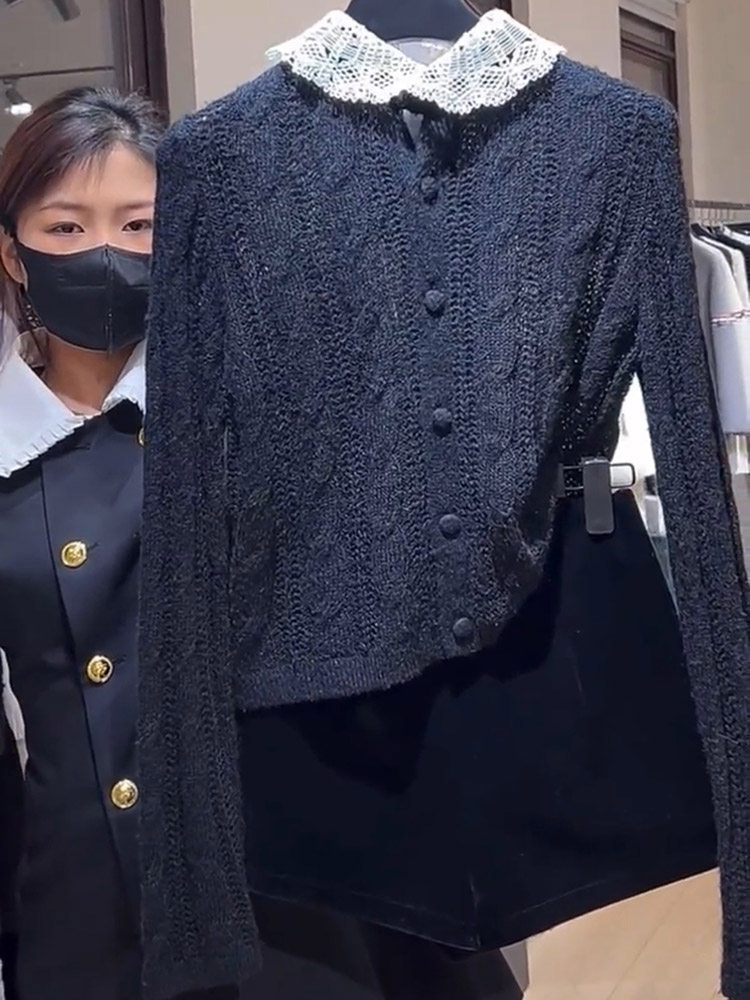 氣質黑色針織開衫女2025年秋季新款百搭溫柔修身顯瘦氣質減齡上衣