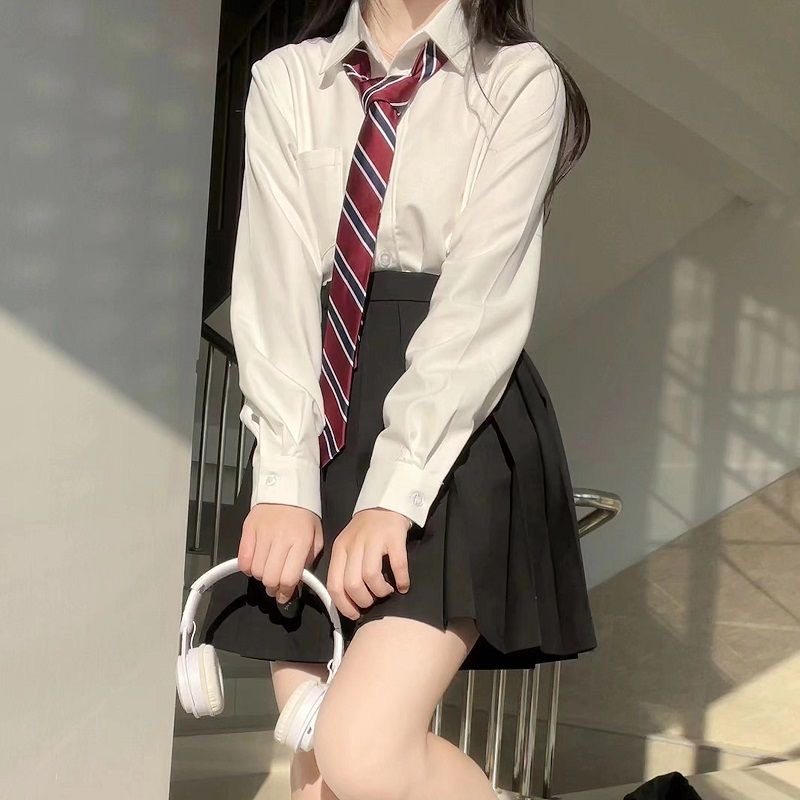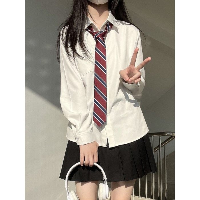 日系jk製服襯衫長袖上衣女春夏新款學院風百搭曡穿短裙百褶裙校供