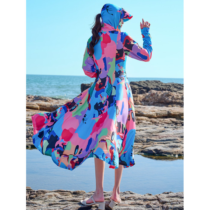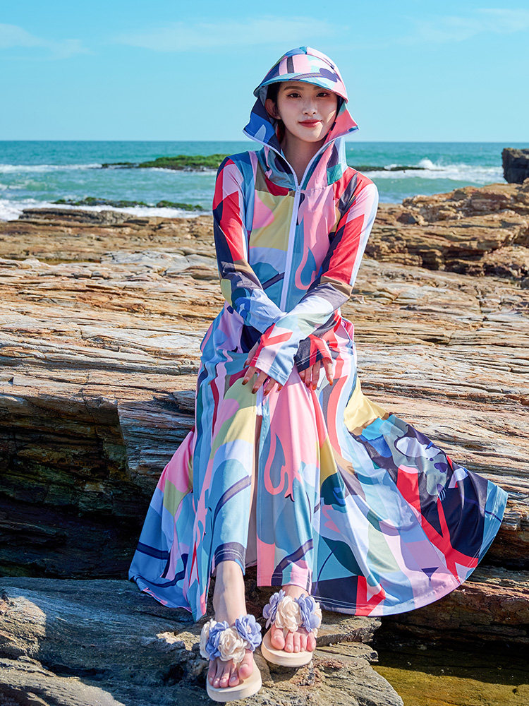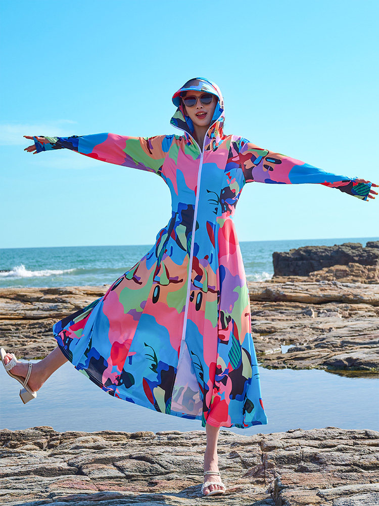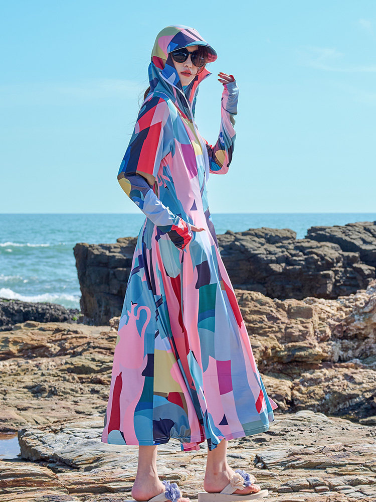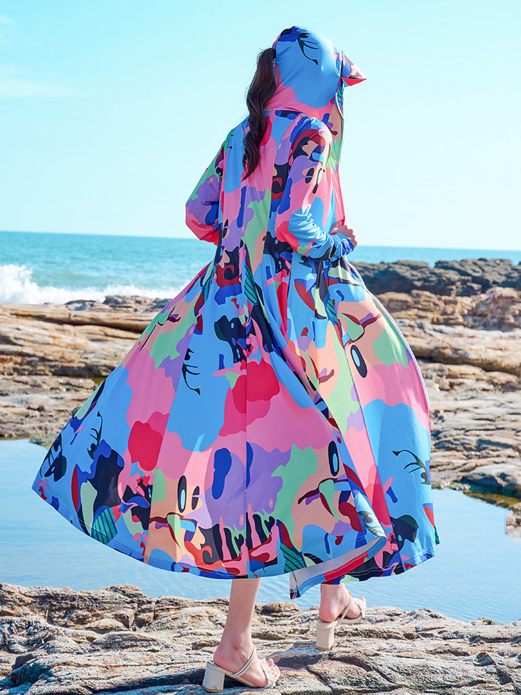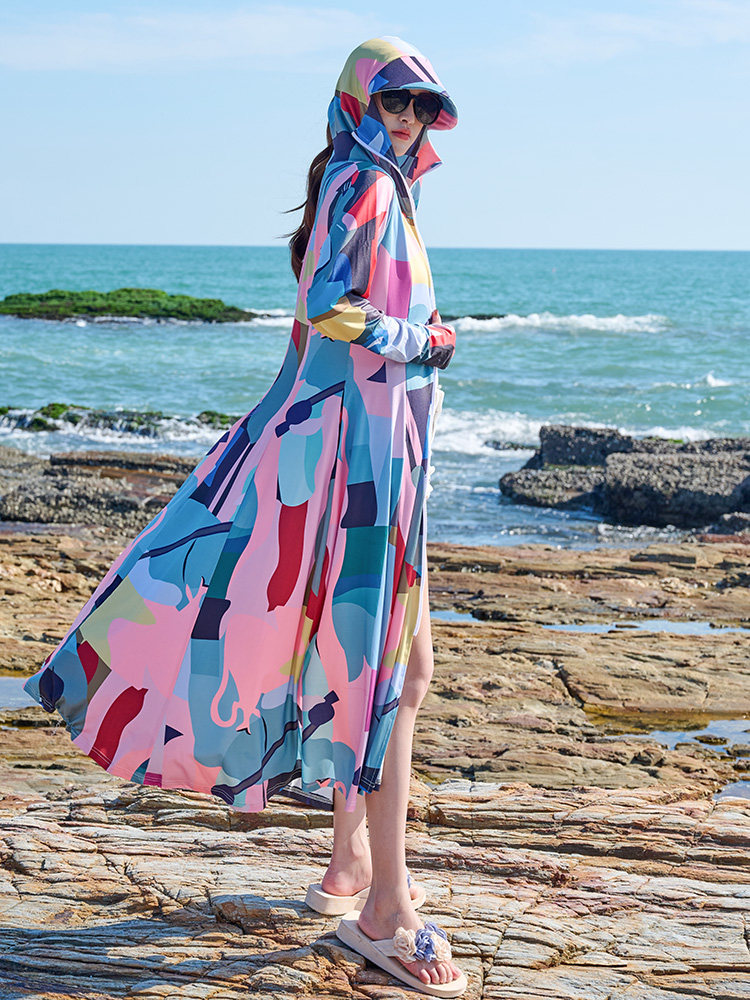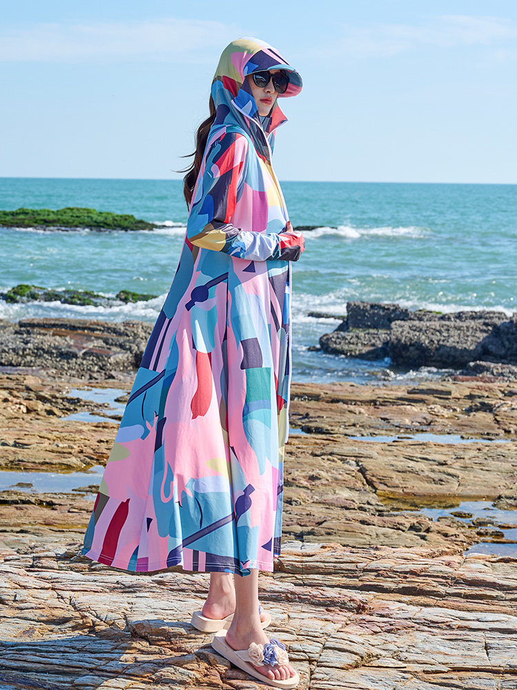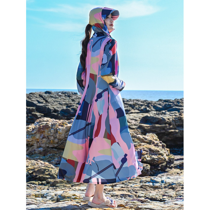 印花防曬衣女過膝長款2024新款夏季防紫外線薄款大碼風衣外套服