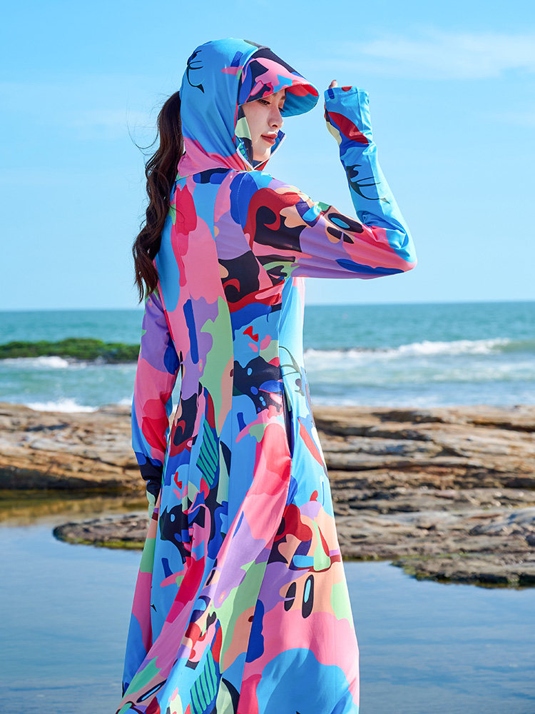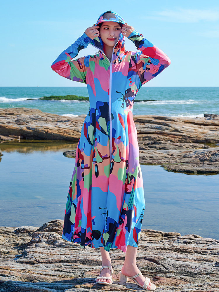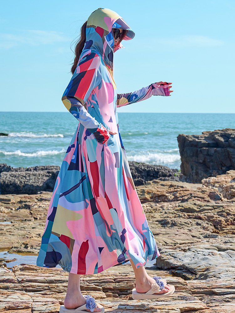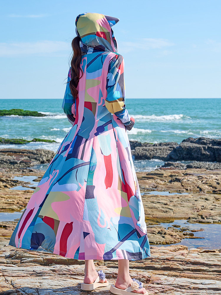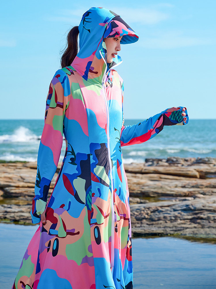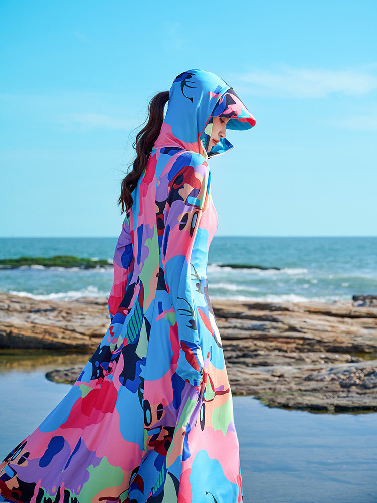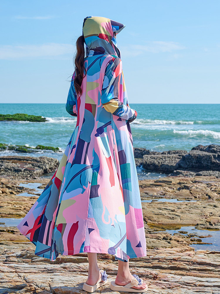 印花防曬衣女過膝長款2024新款夏季防紫外線薄款大碼風衣外套服
