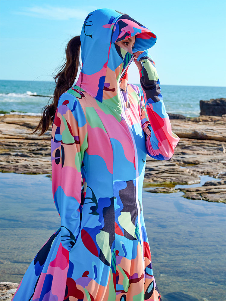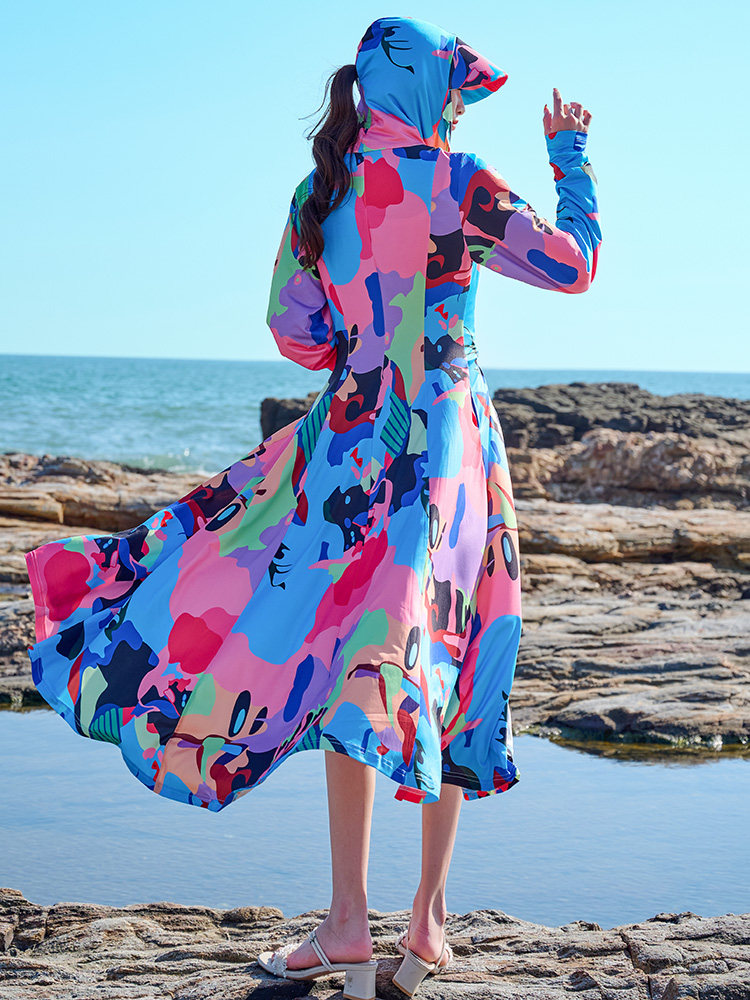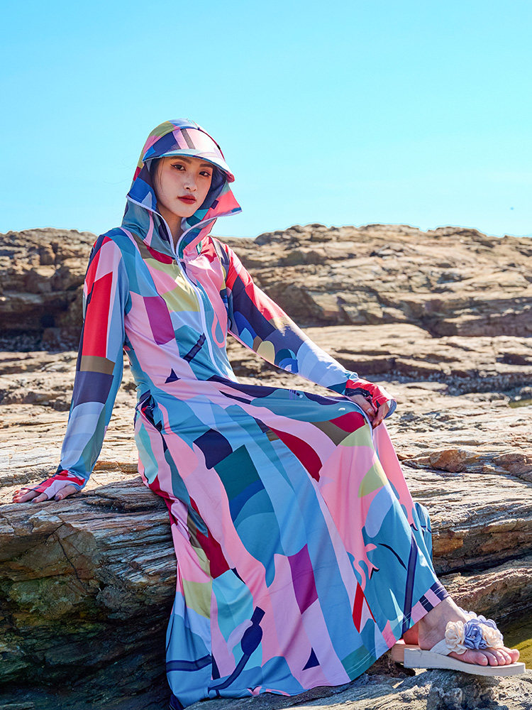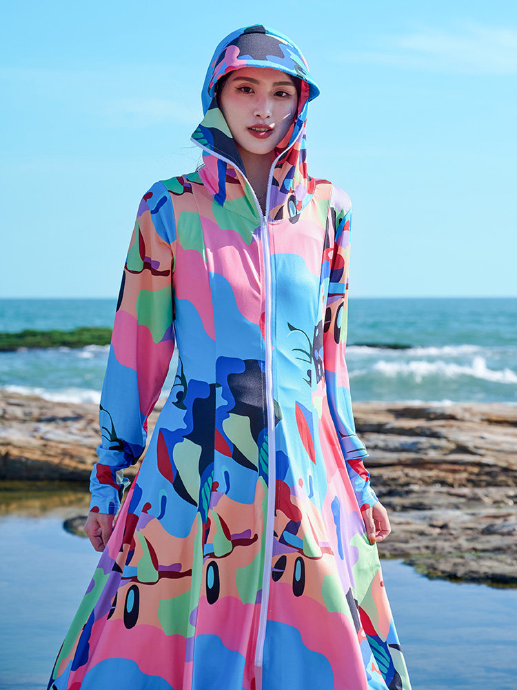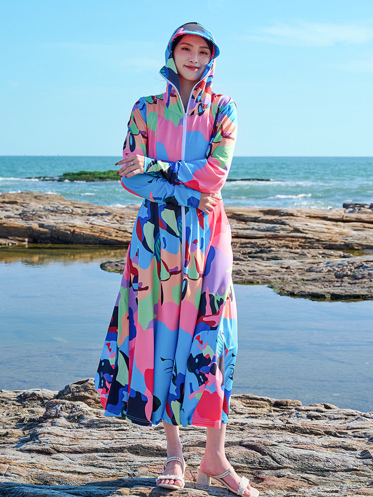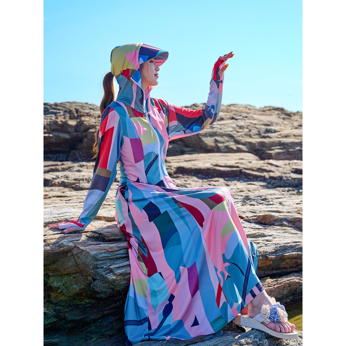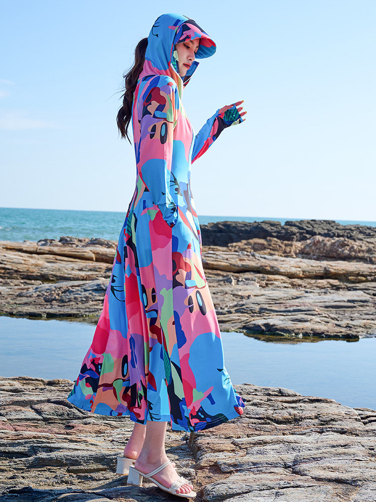 印花防曬衣女過膝長款2024新款夏季防紫外線薄款大碼風衣外套服