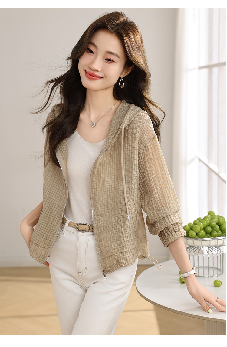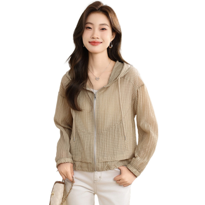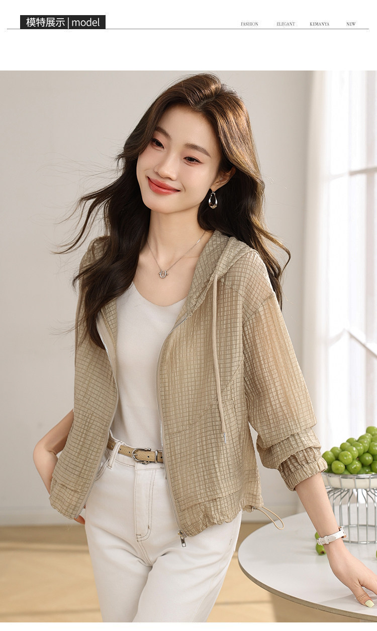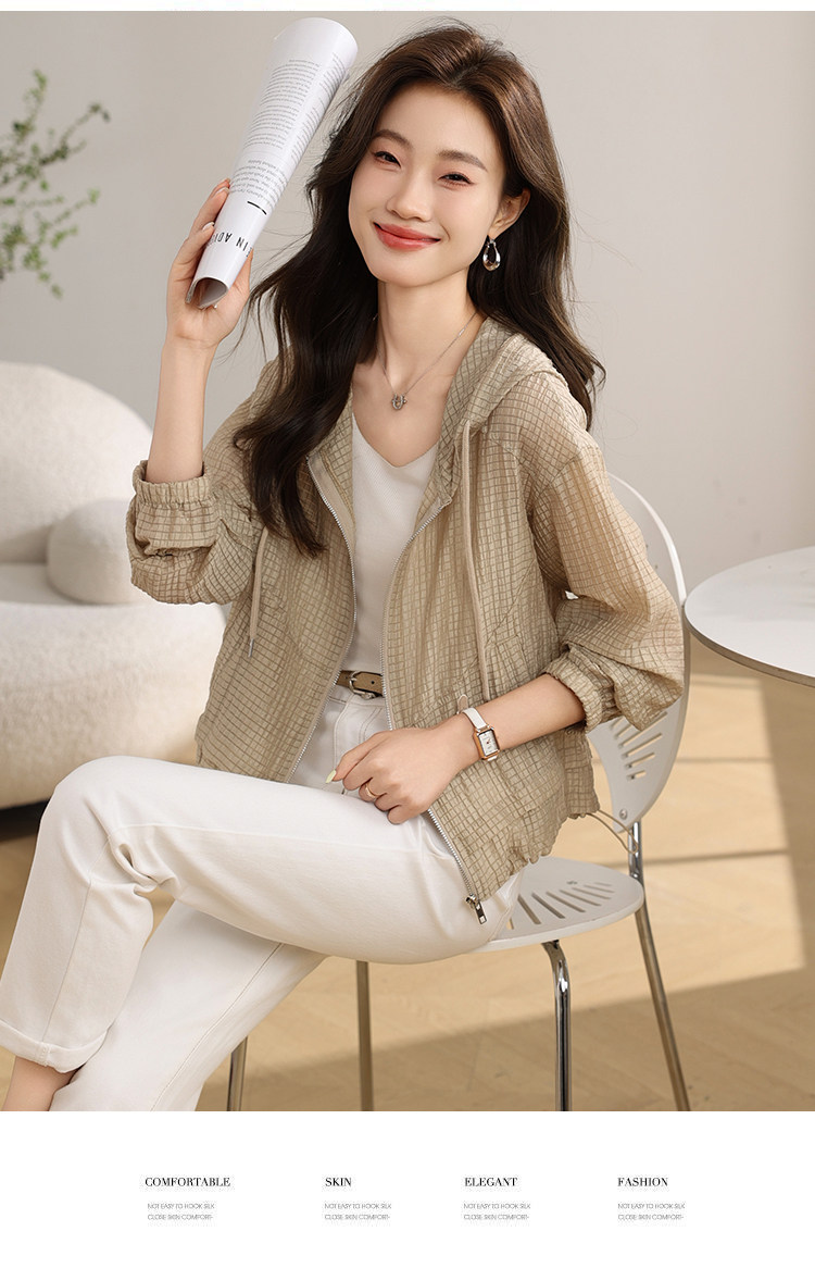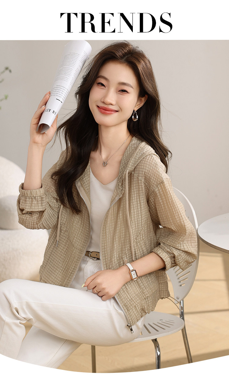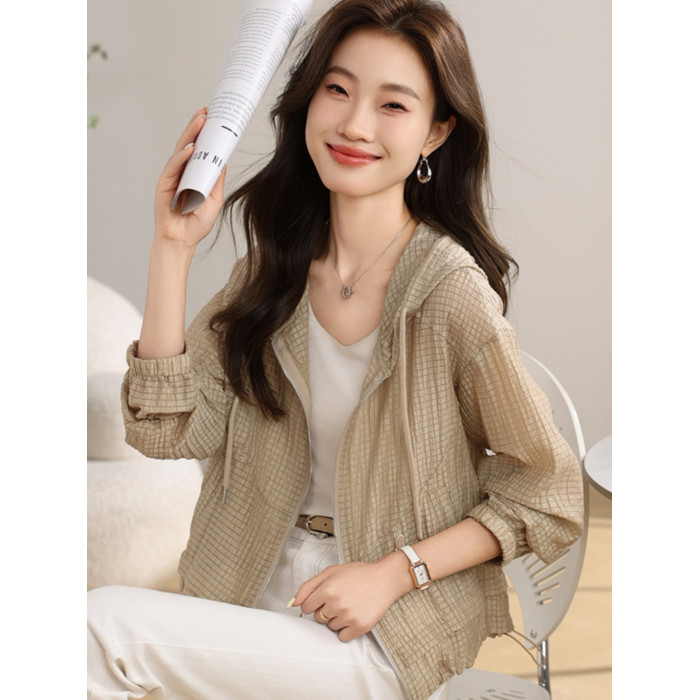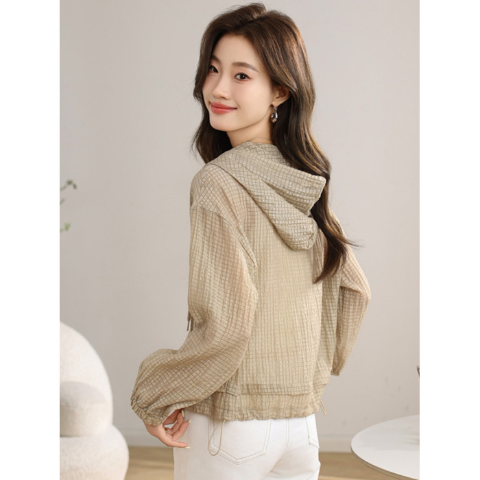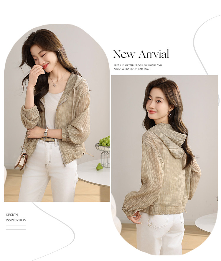 天絲防曬衣連帽短外套女夏季2025新款肌理感防曬上衣薄款外搭小衫