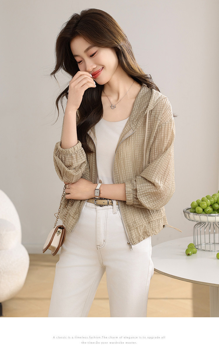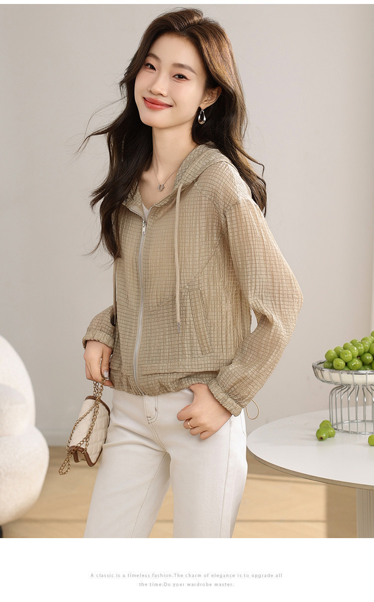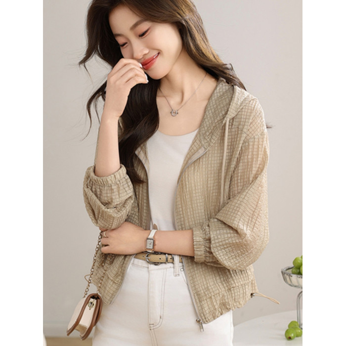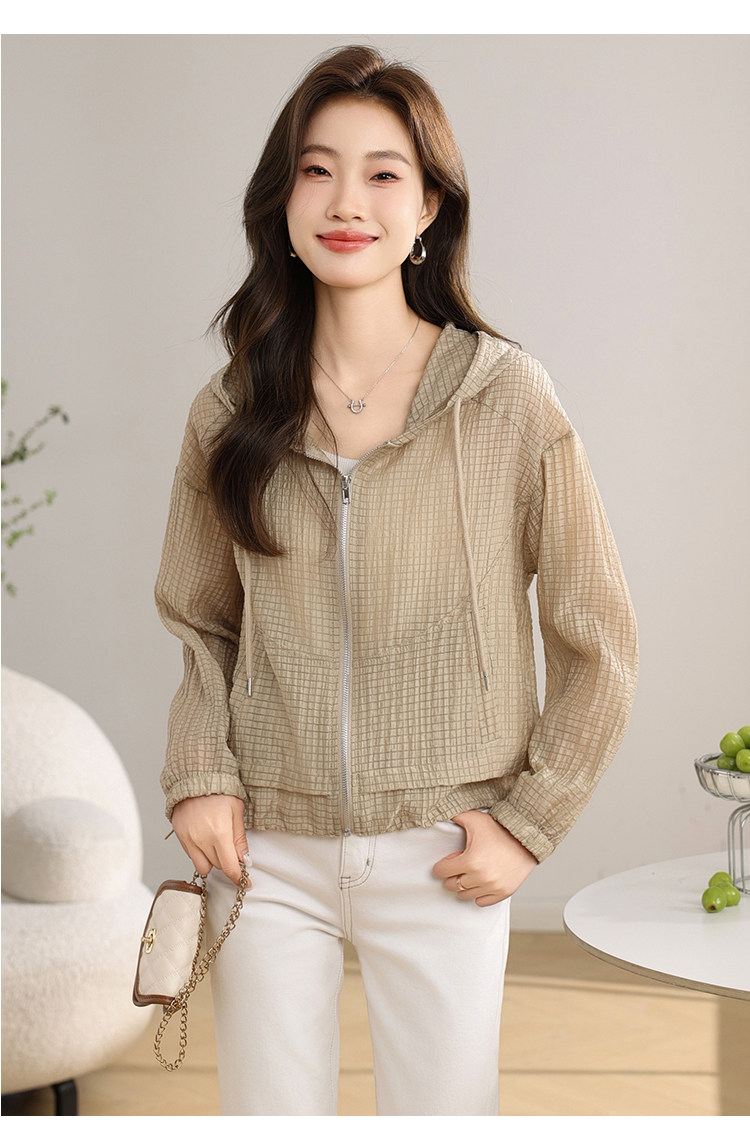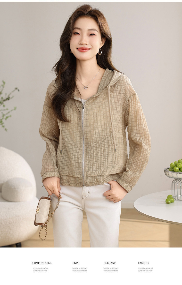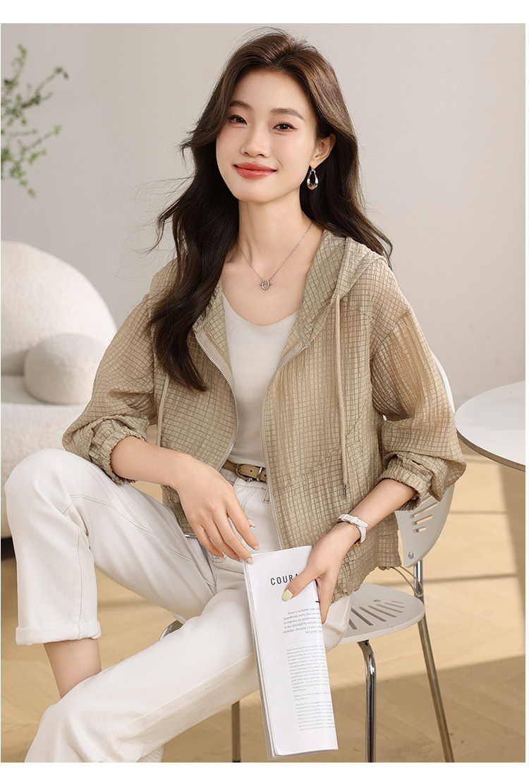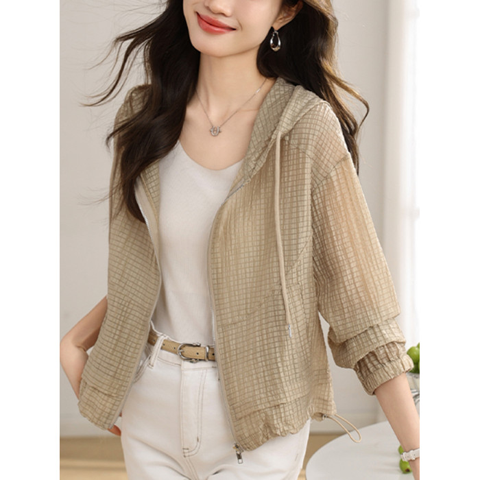 天絲防曬衣連帽短外套女夏季2025新款肌理感防曬上衣薄款外搭小衫