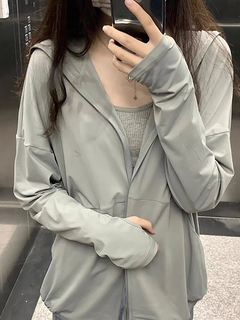 胖MM300斤大碼冰絲防曬衣女夏季薄款寬鬆連帽開衫戶外運動薄外套