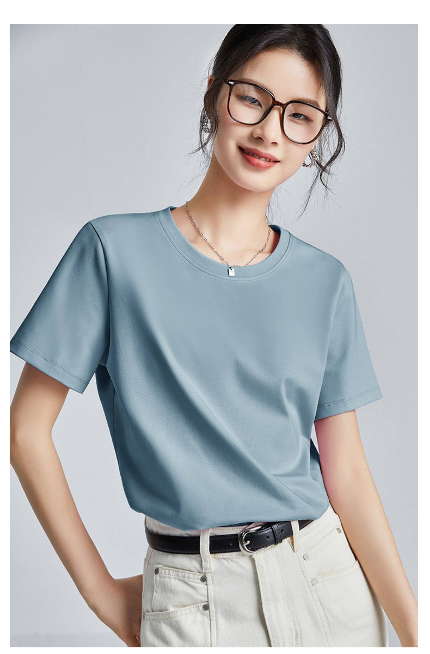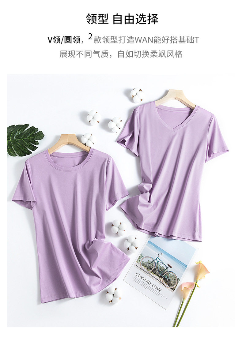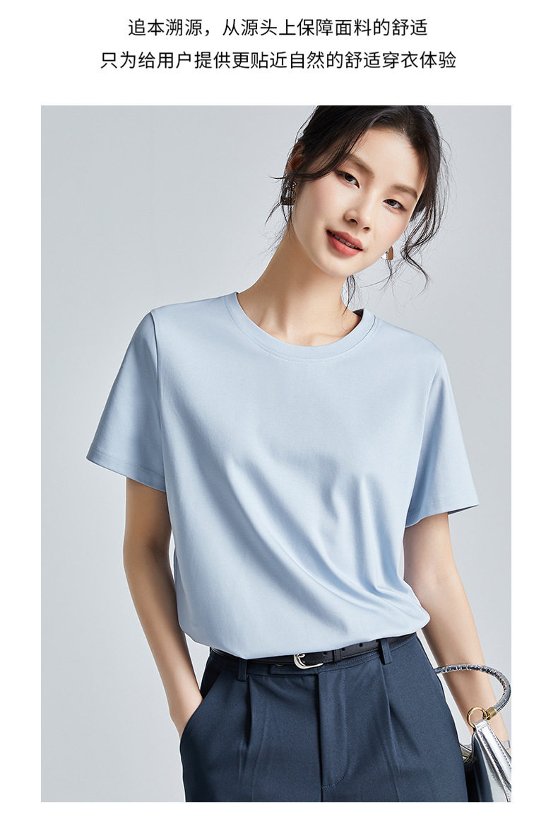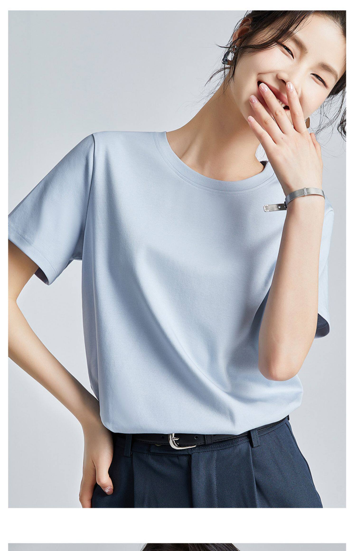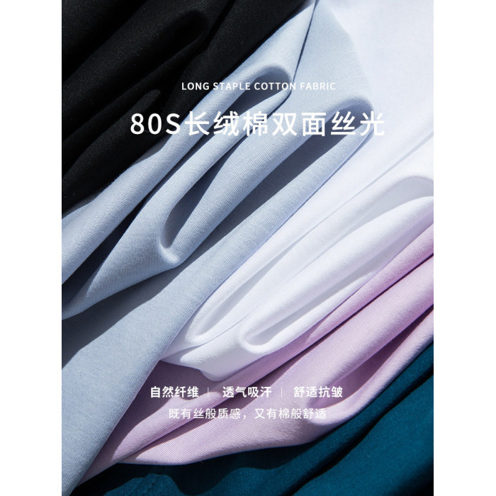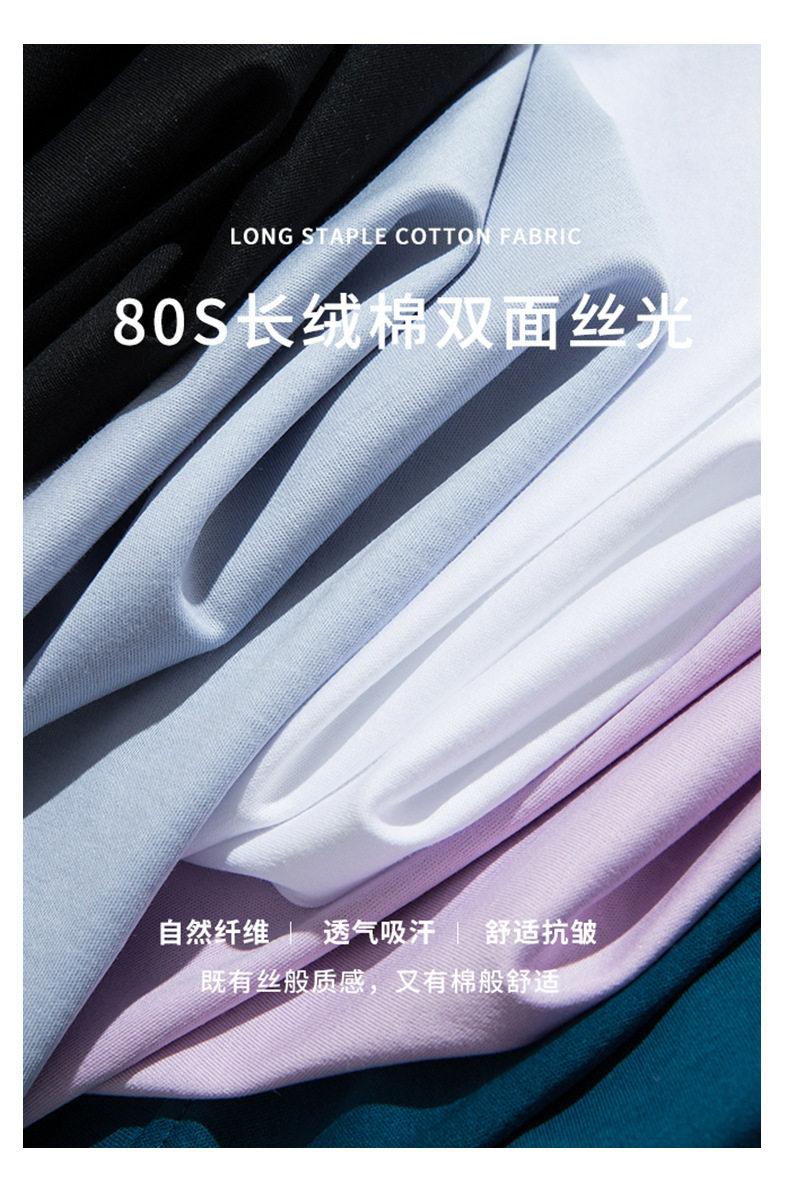 80S高支高密雙面絲光棉透氣液氮冰感涼爽防曬吸汗長絨棉短袖t恤女