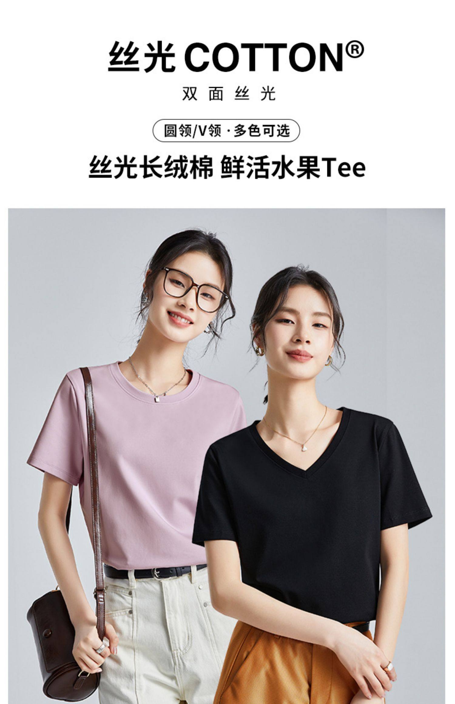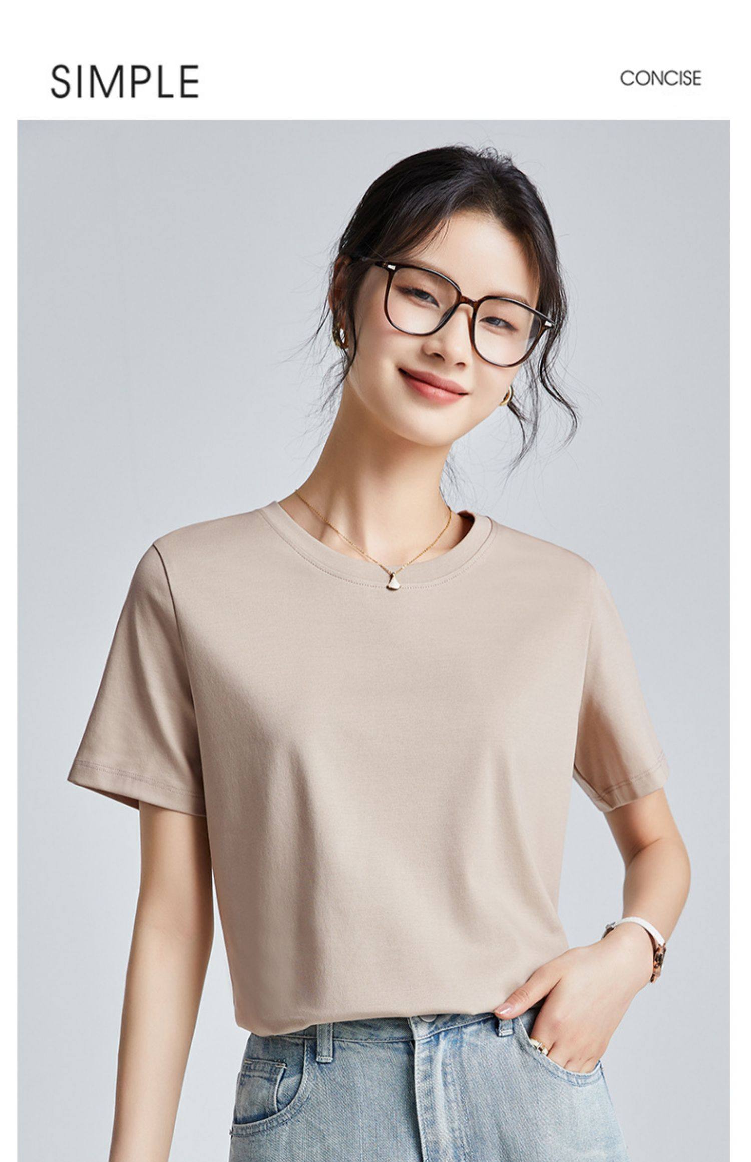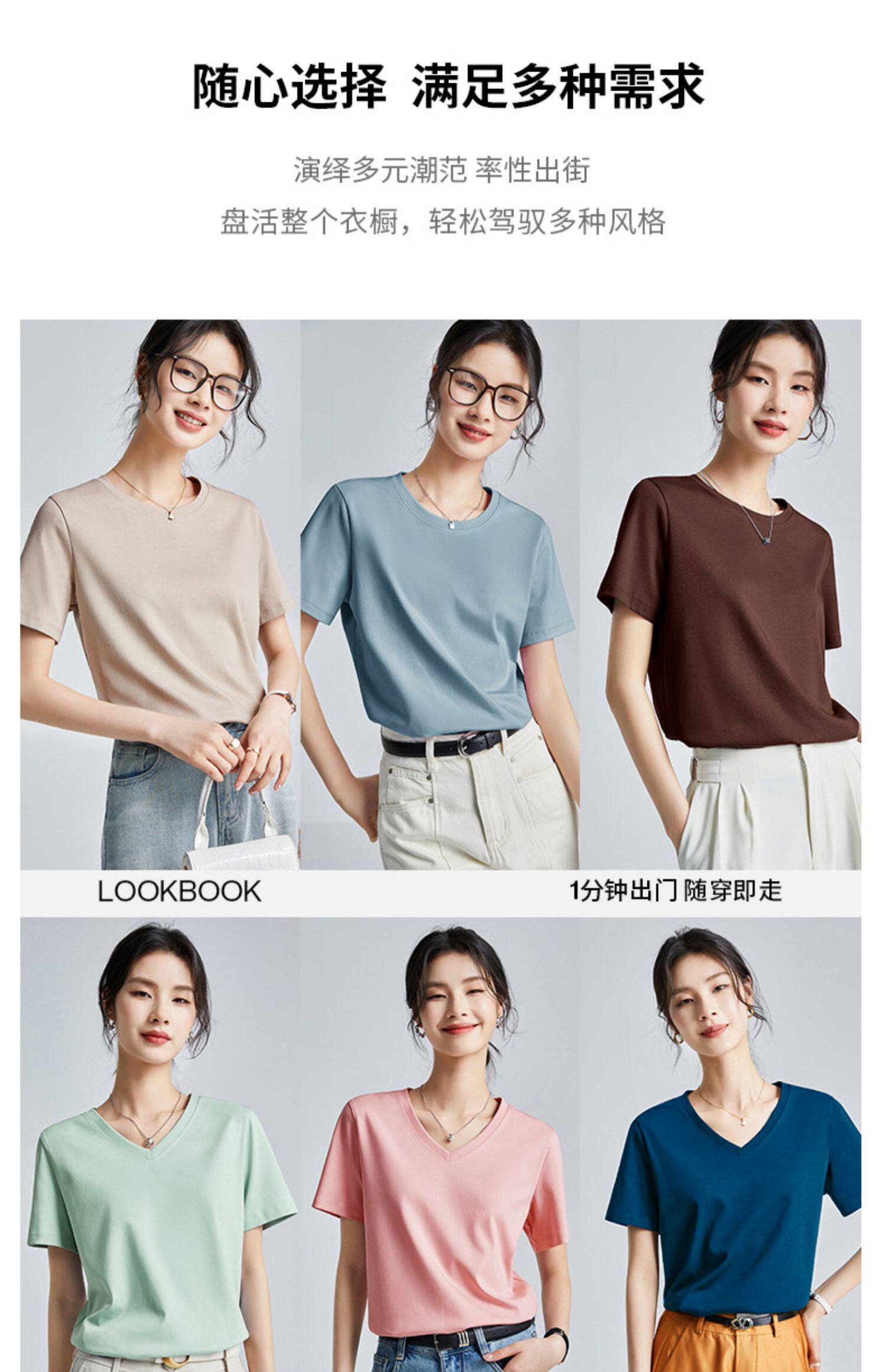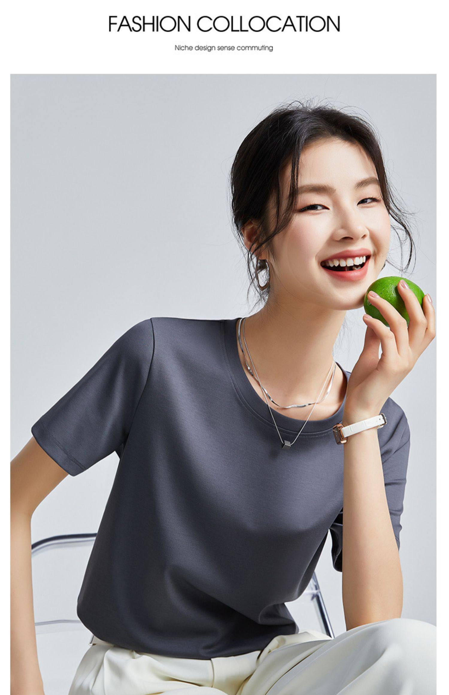 80S高支高密雙面絲光棉透氣液氮冰感涼爽防曬吸汗長絨棉短袖t恤女