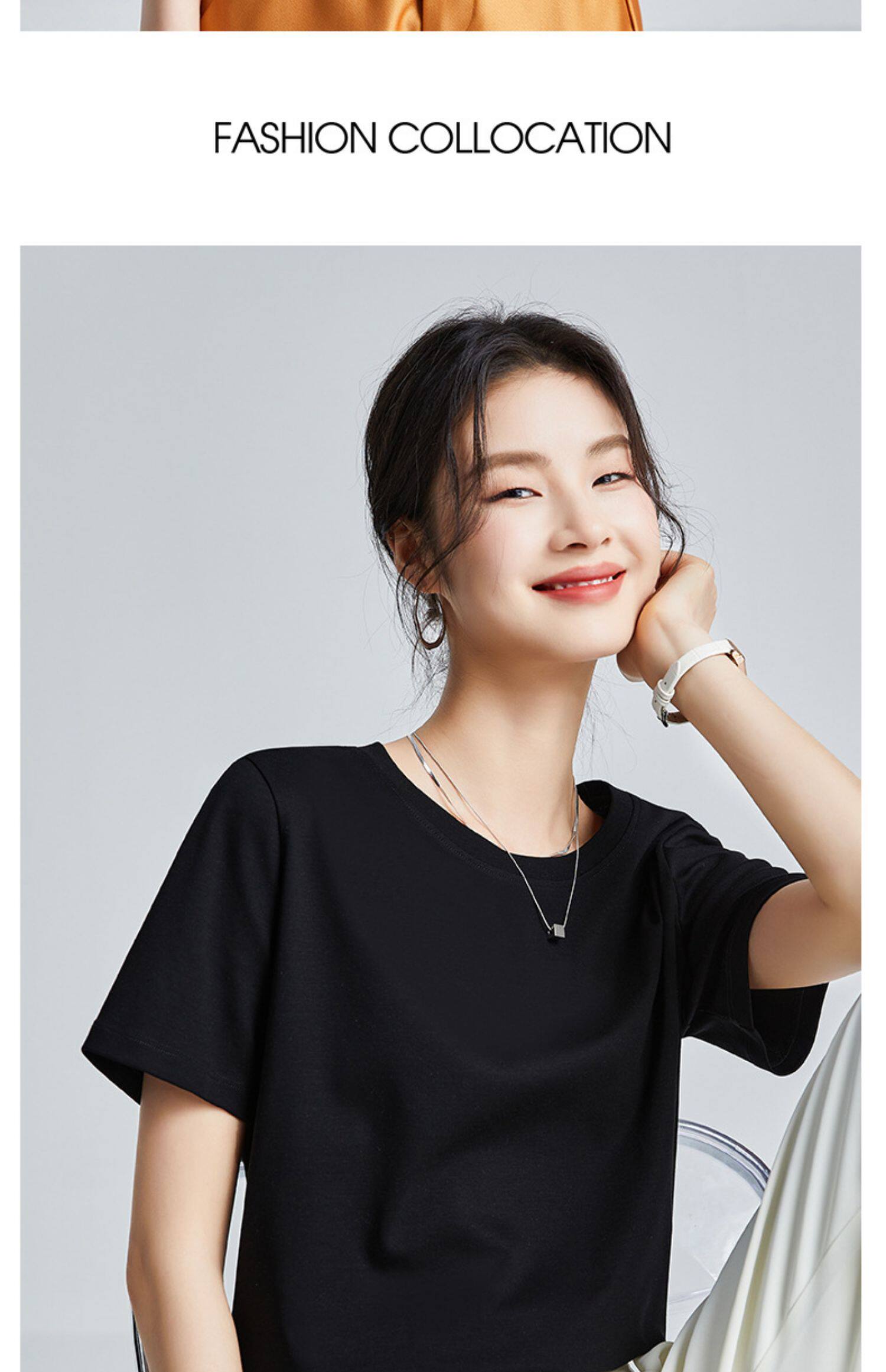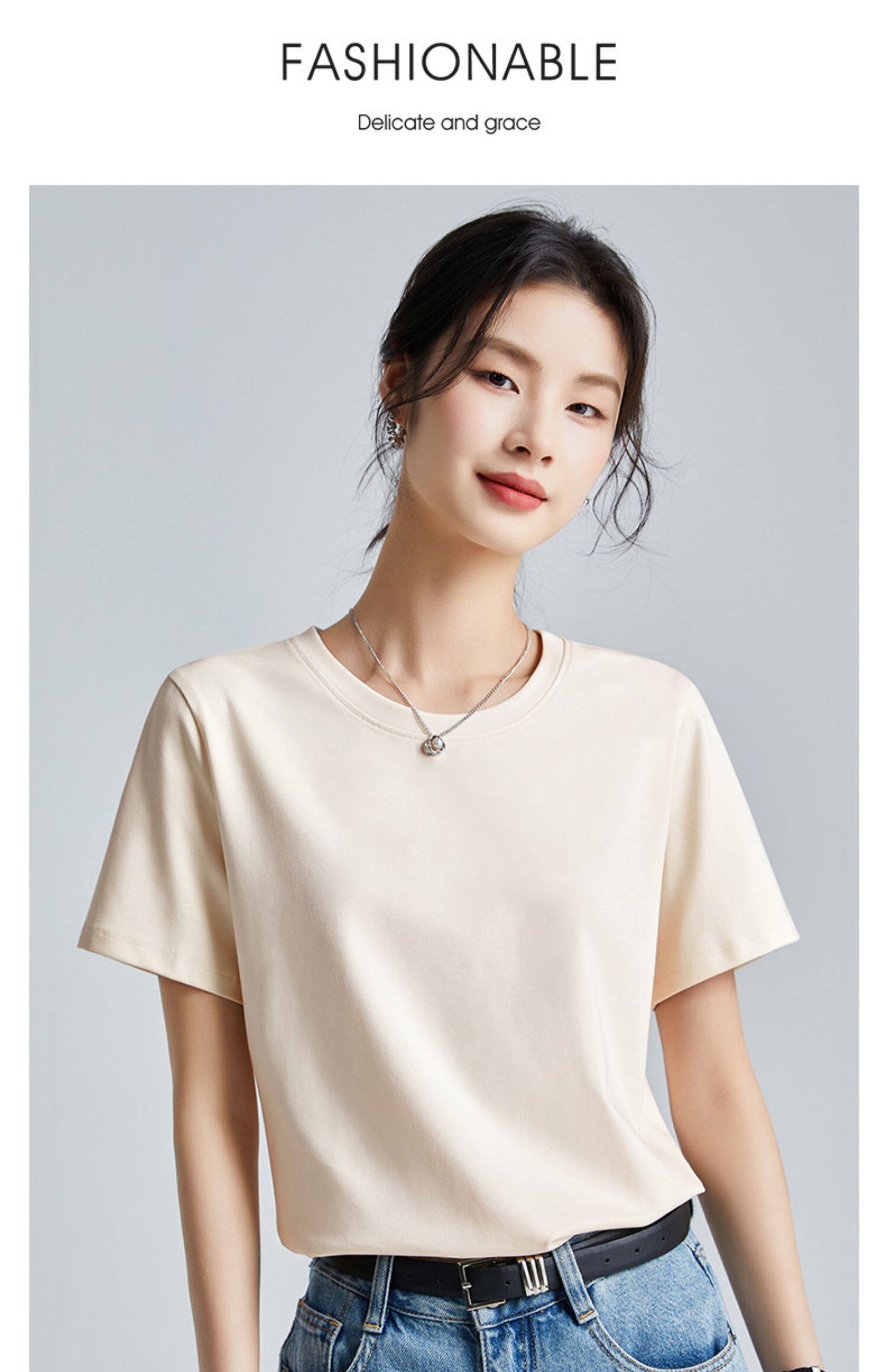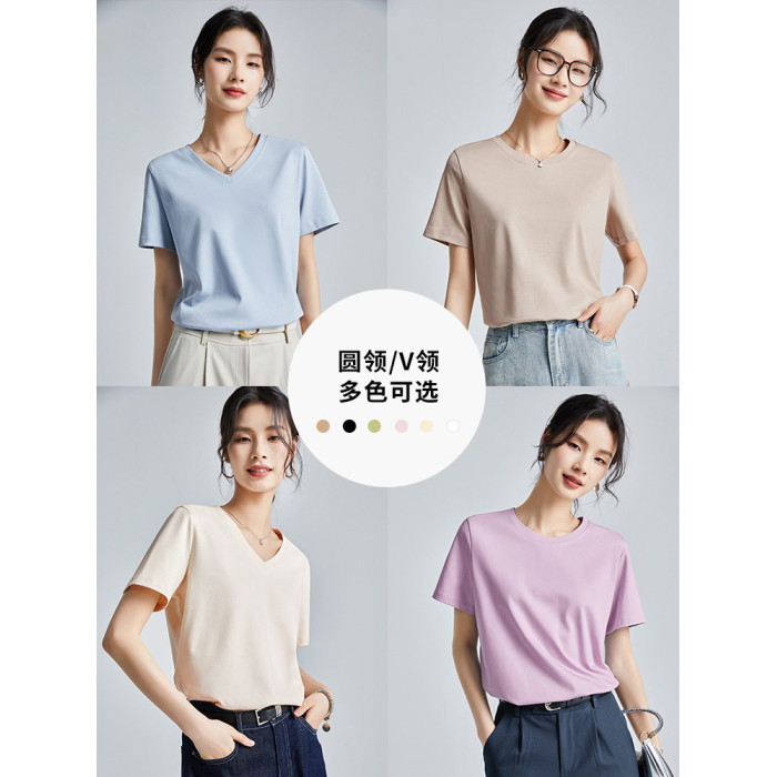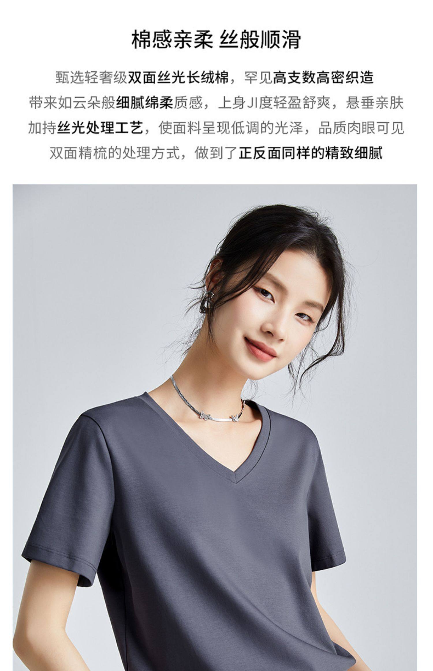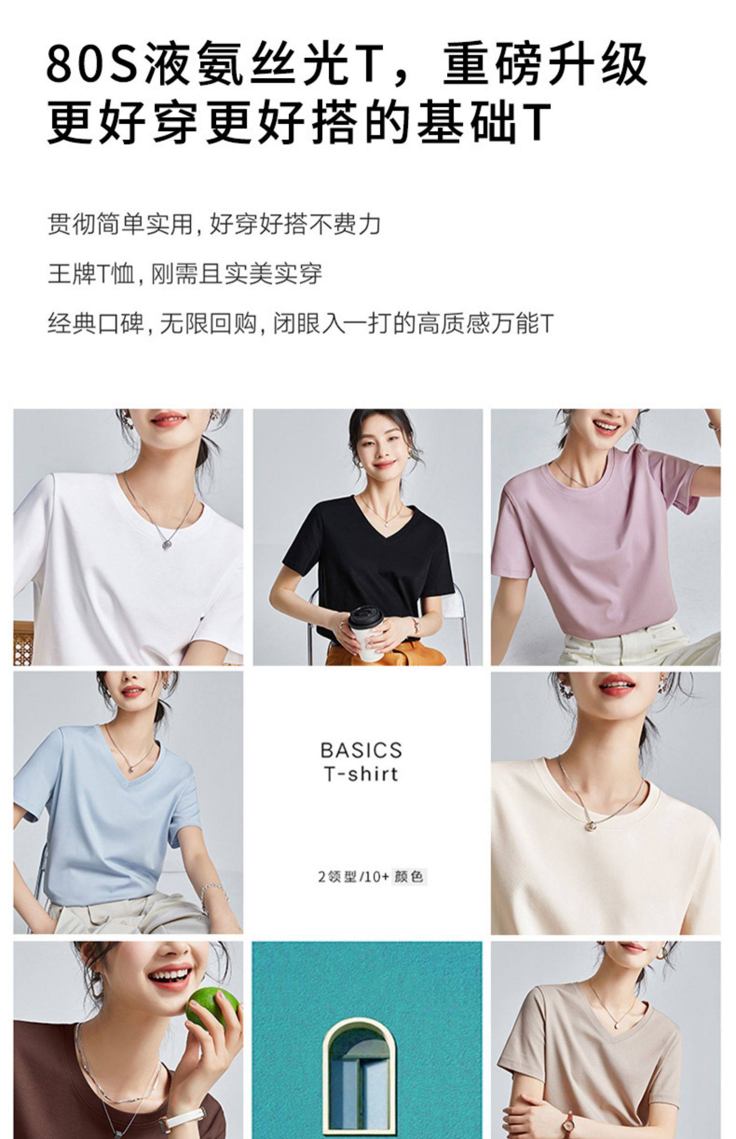 80S高支高密雙面絲光棉透氣液氮冰感涼爽防曬吸汗長絨棉短袖t恤女