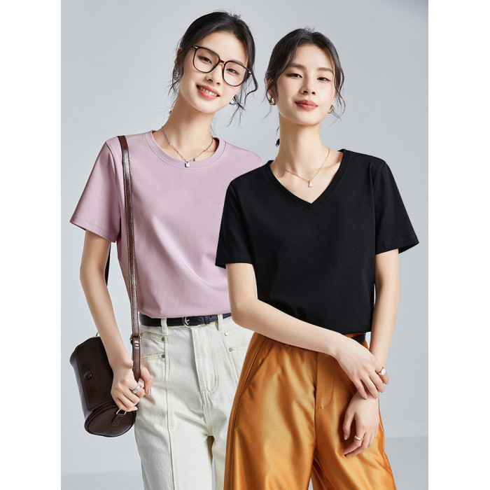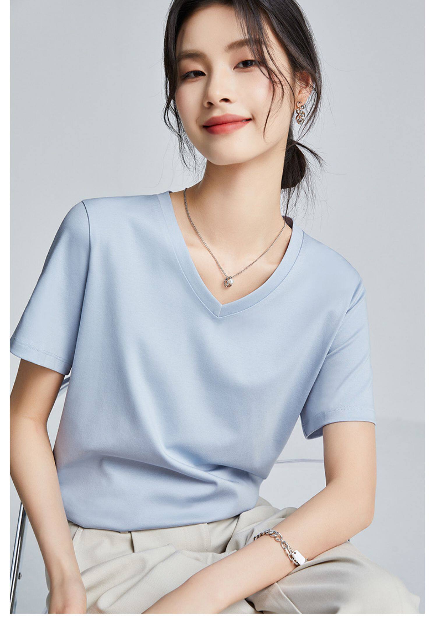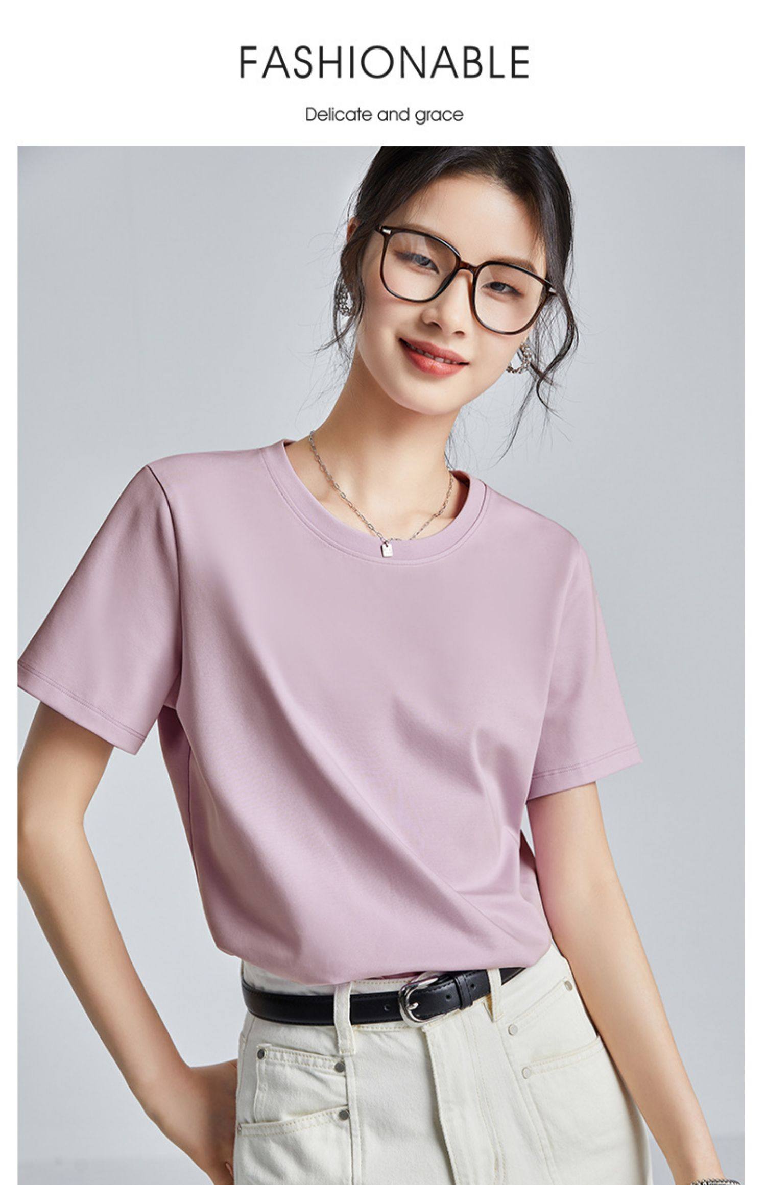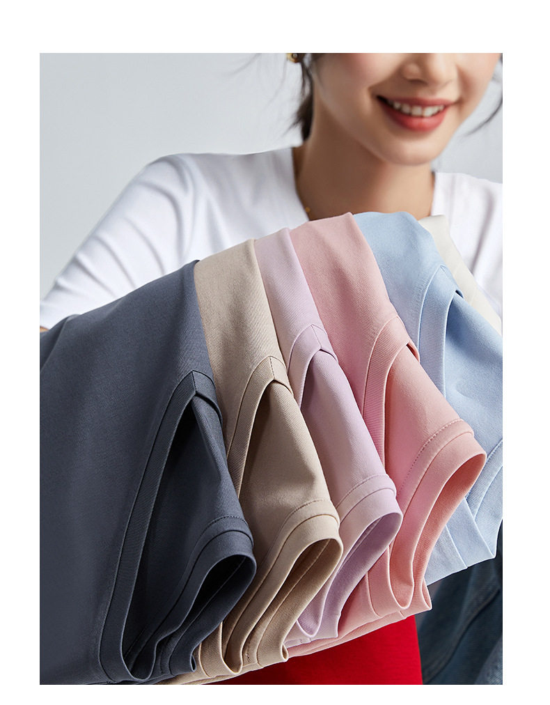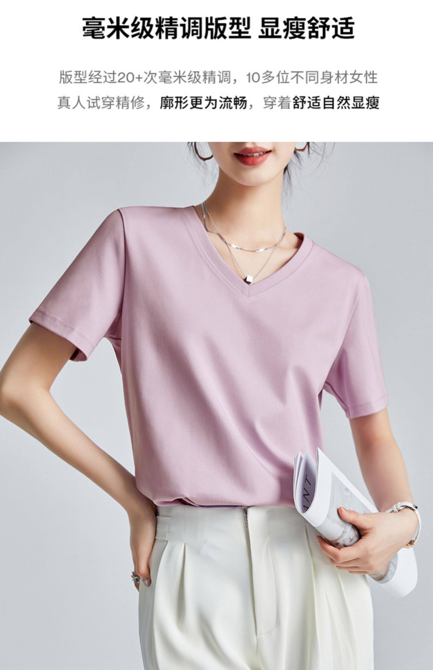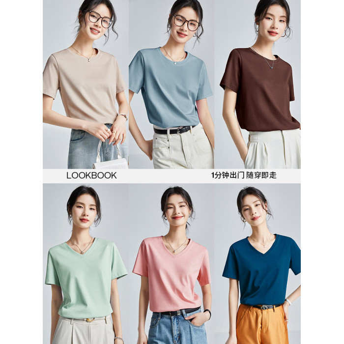 80S高支高密雙面絲光棉透氣液氮冰感涼爽防曬吸汗長絨棉短袖t恤女