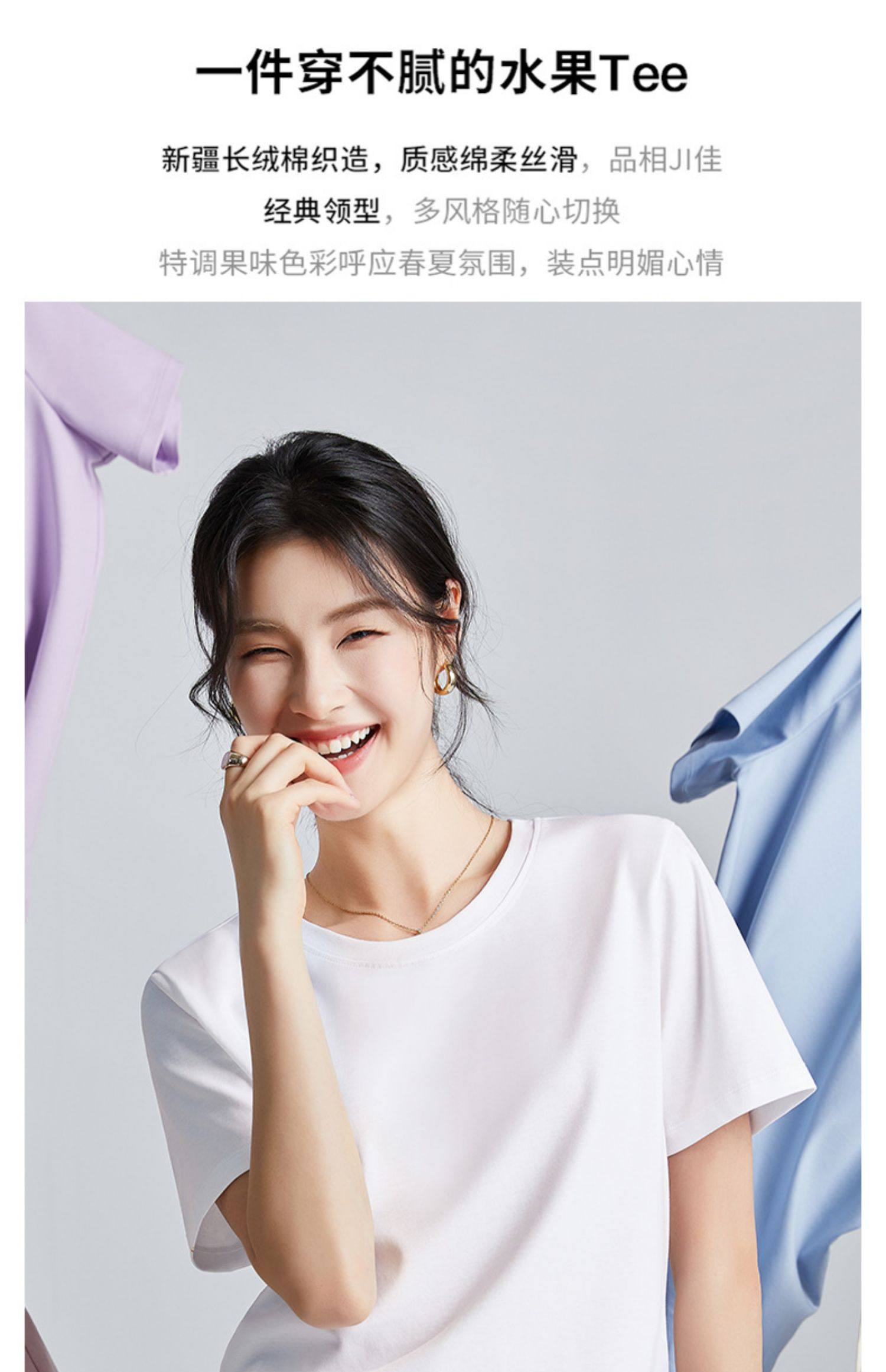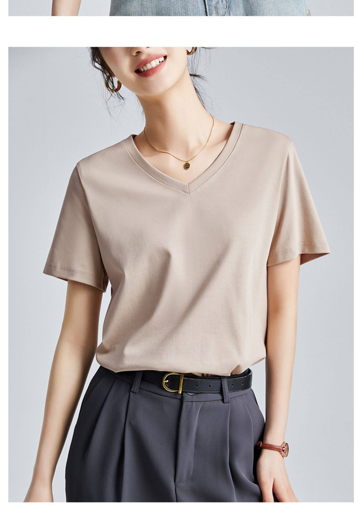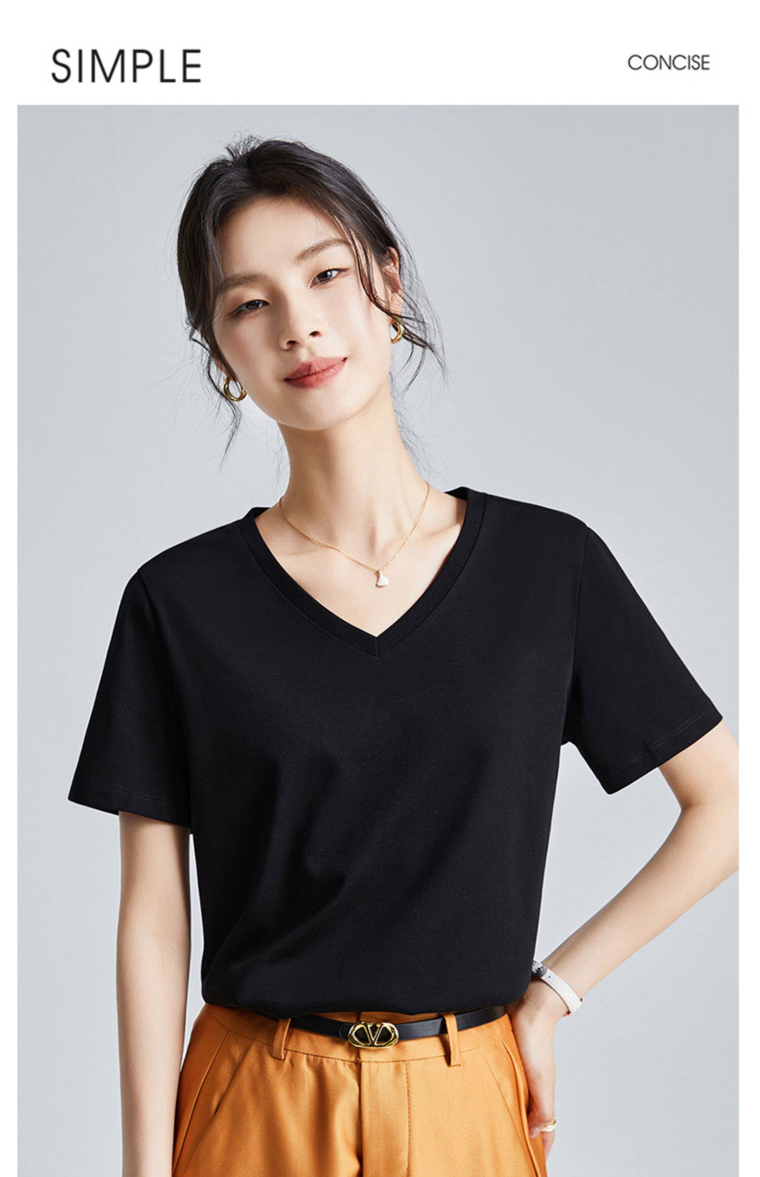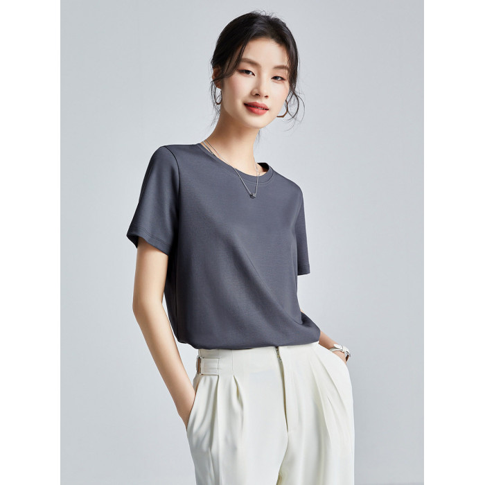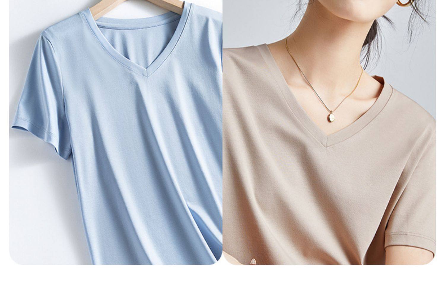 80S高支高密雙面絲光棉透氣液氮冰感涼爽防曬吸汗長絨棉短袖t恤女