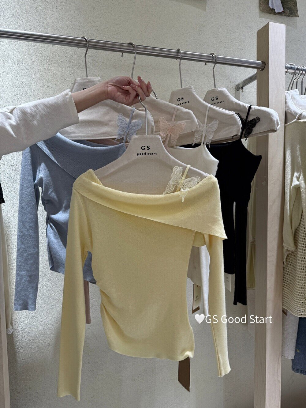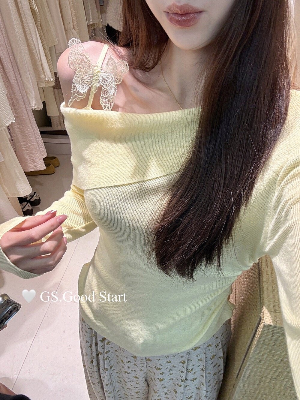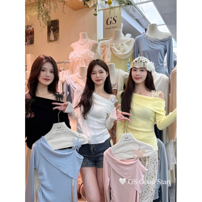廣州十三行高貨獨特上衣超好看法式蝴蝶結針織一字肩斜領打底衫女