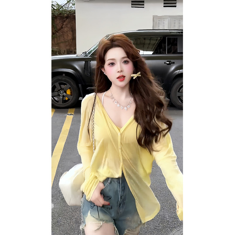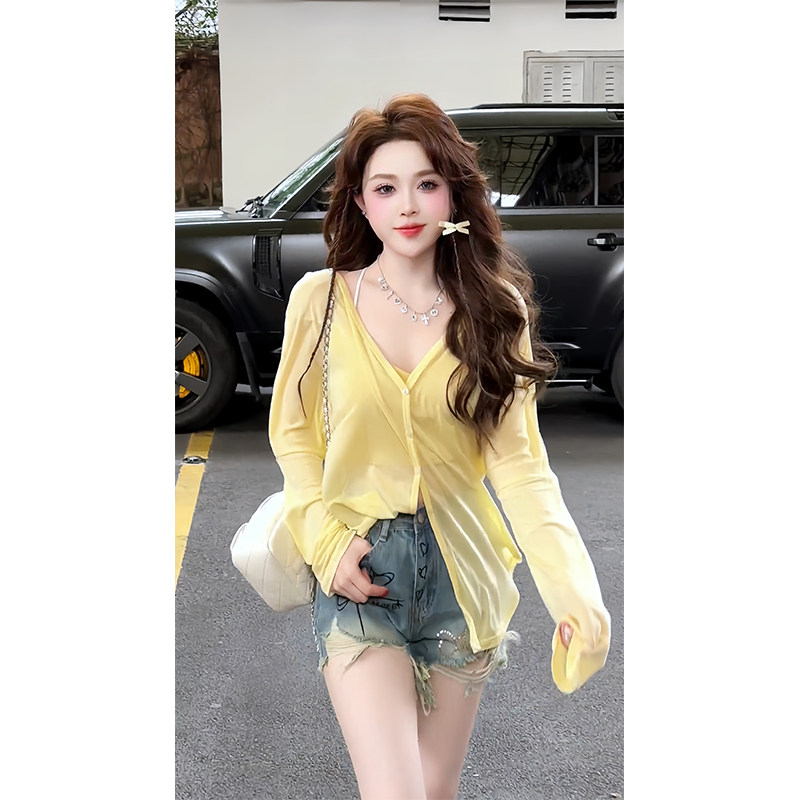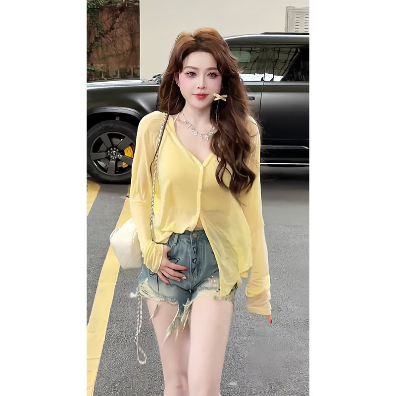 輕薄寬鬆防曬開衫2025夏季新款上衣冰絲黃色透氣時尚短款外套女裝